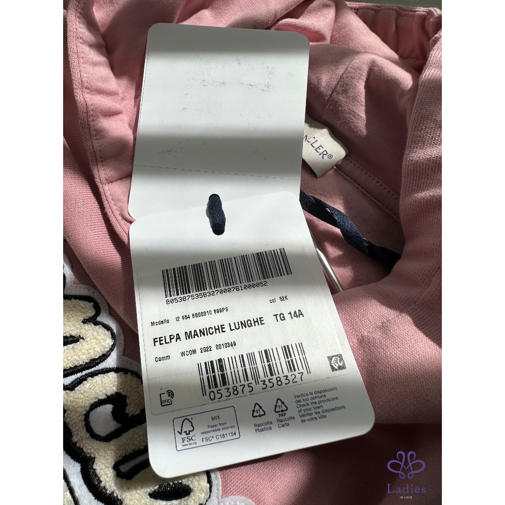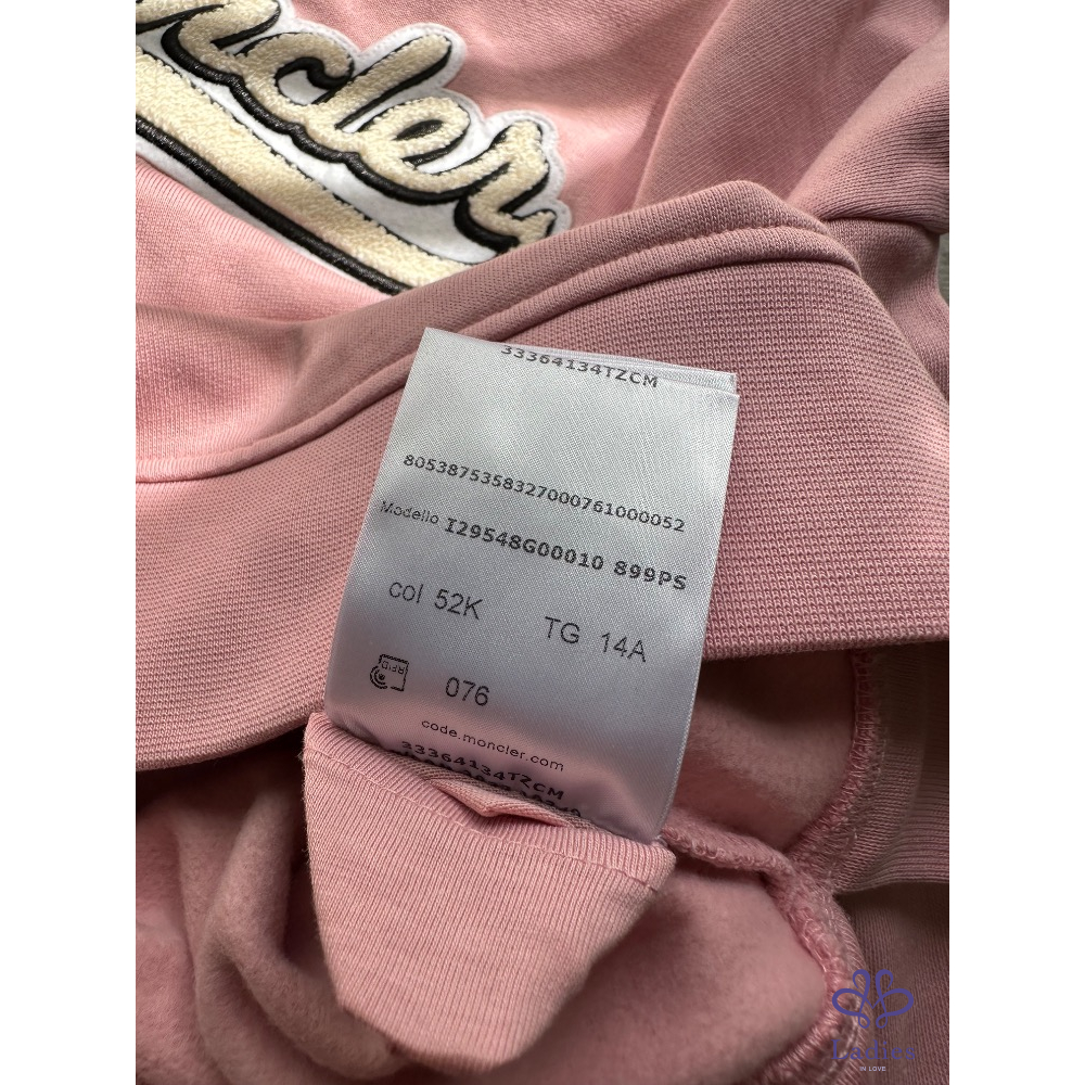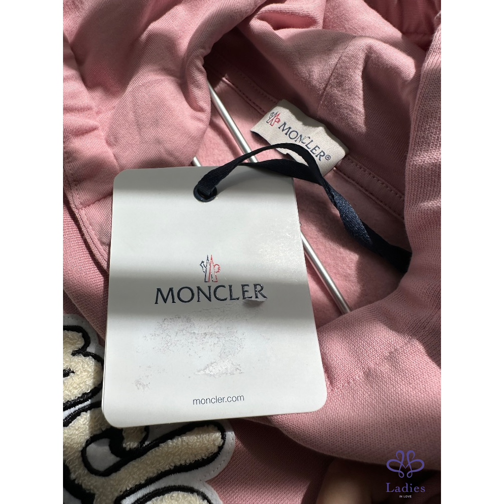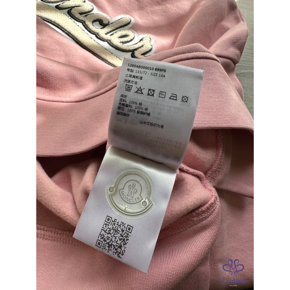 產品信息 認證編號A006576 它團同步 一件$5280含運 全新正品Moncler 刺繡款logo 帽T 粉色 14y (肩寬59胸寬55前衣長53後衣長58) 適合女生60kg以下 原價12500 喜歡可喊我要 匯款後寄出 只有一件