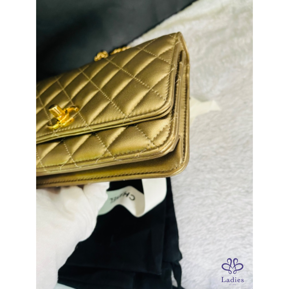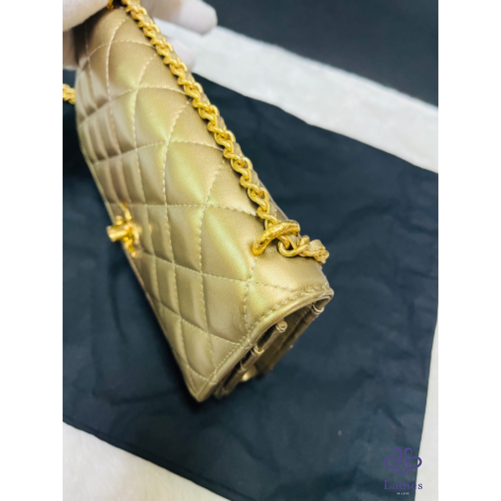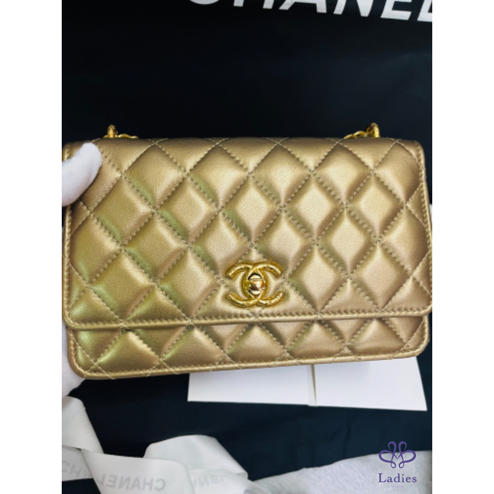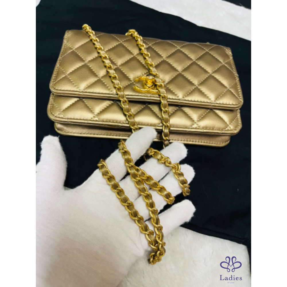 Chanel cf woc金色絎縫皮革鏈條錢包 #斜背包/#晚宴包