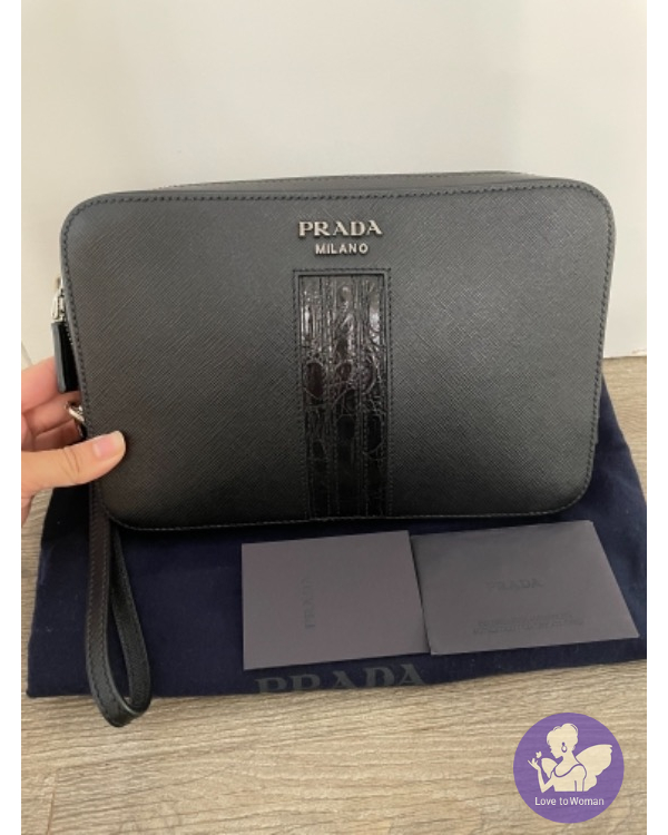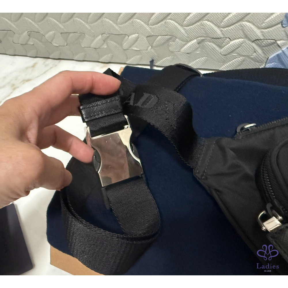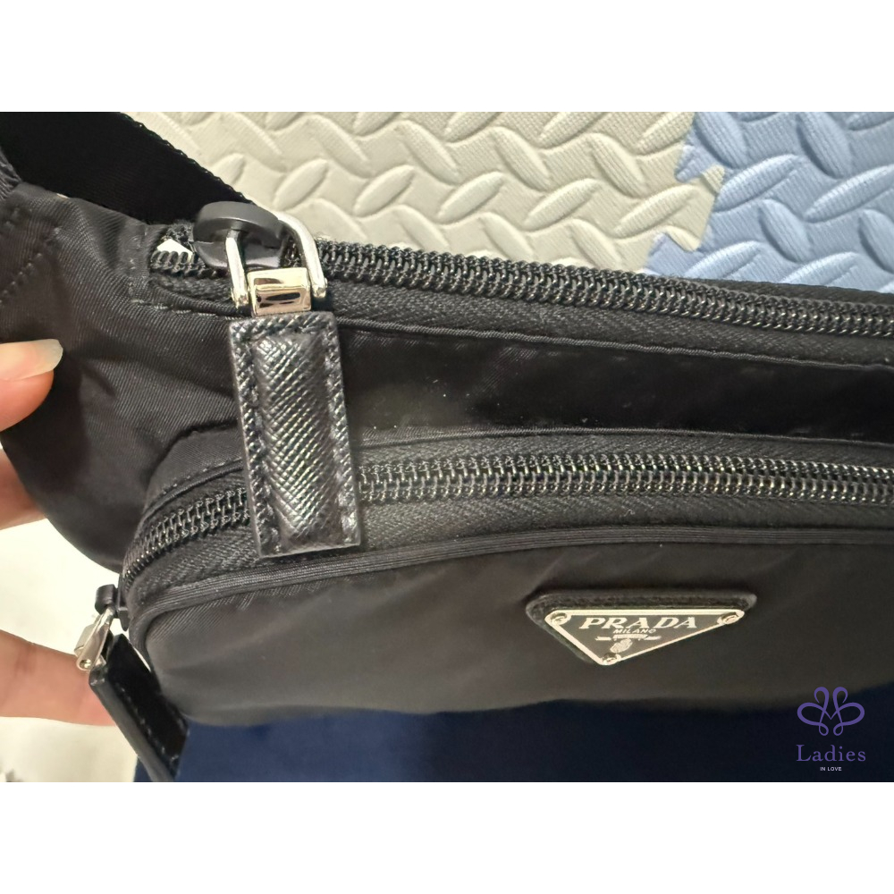 首頁 精品包包 PRADA 鐵牌黑色尼龍斜背包