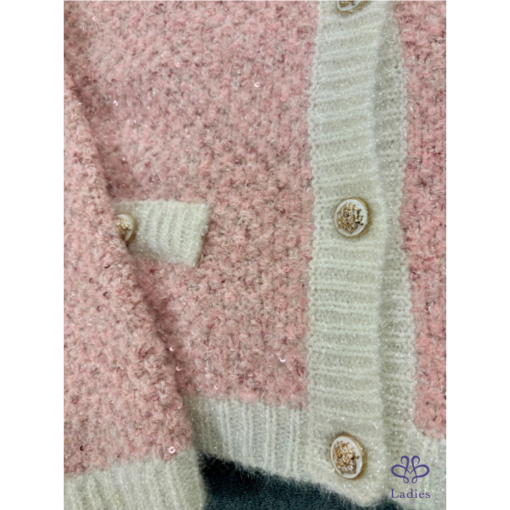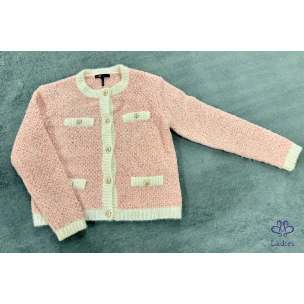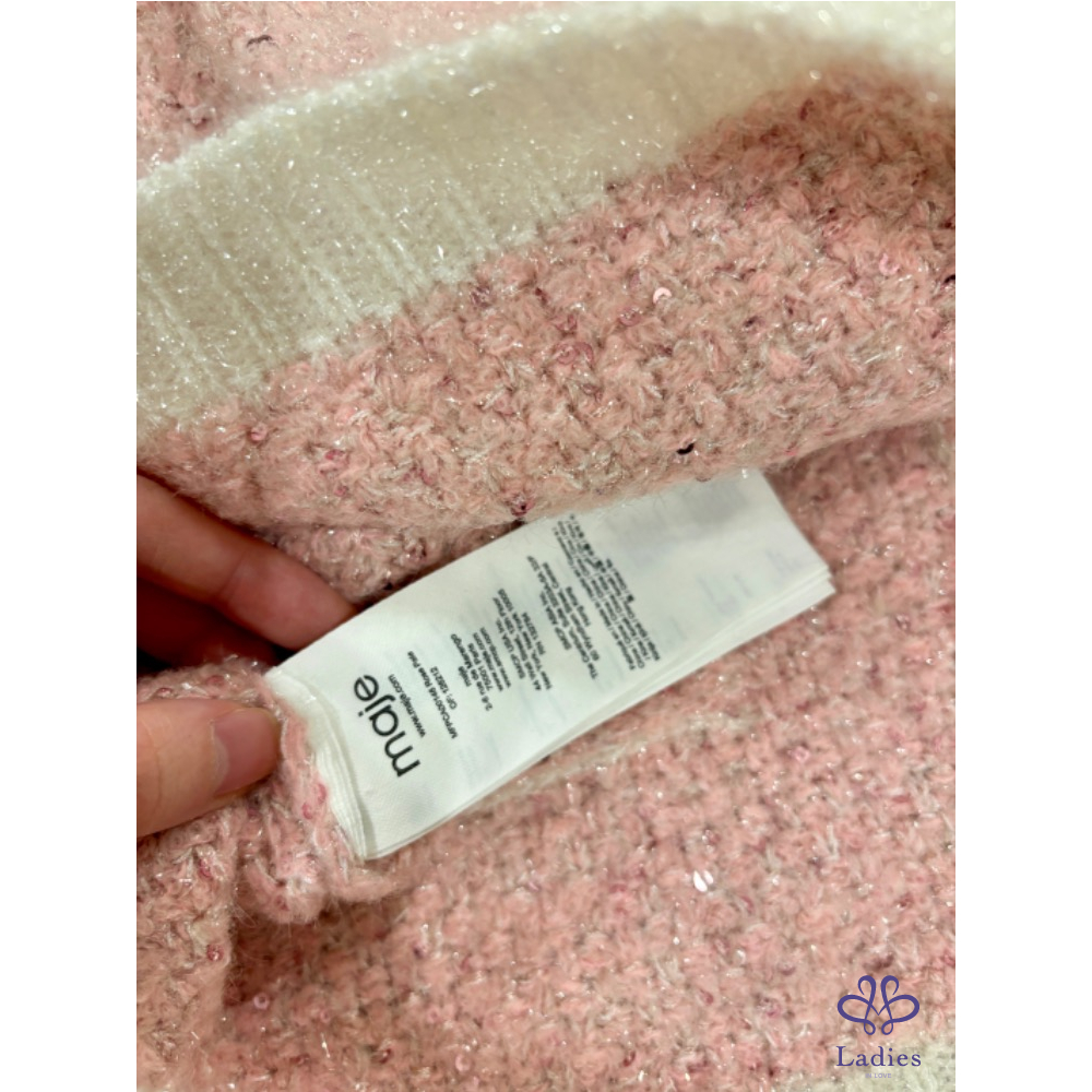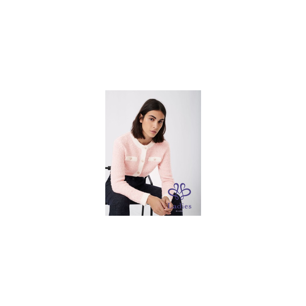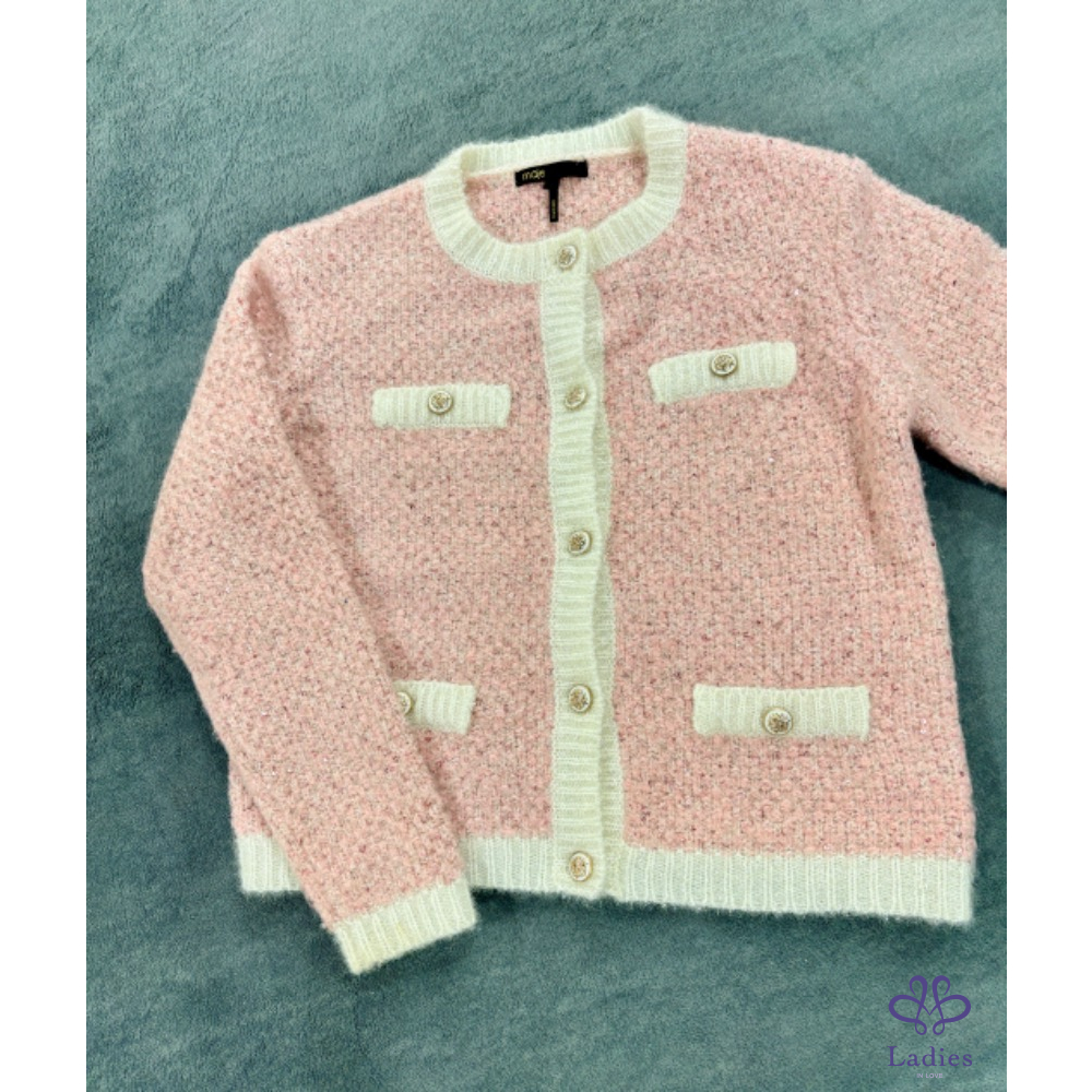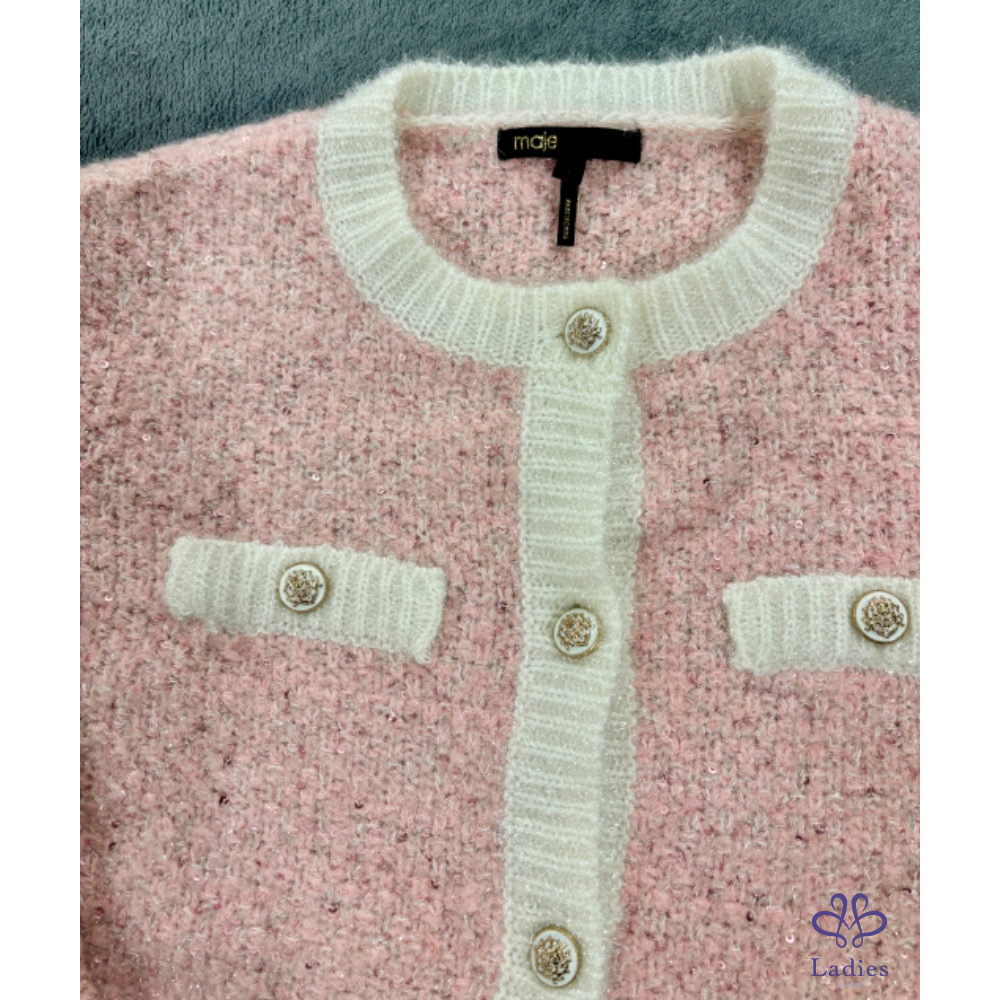 MAJE小香風感爆棚粉色海馬毛亮片針織外套