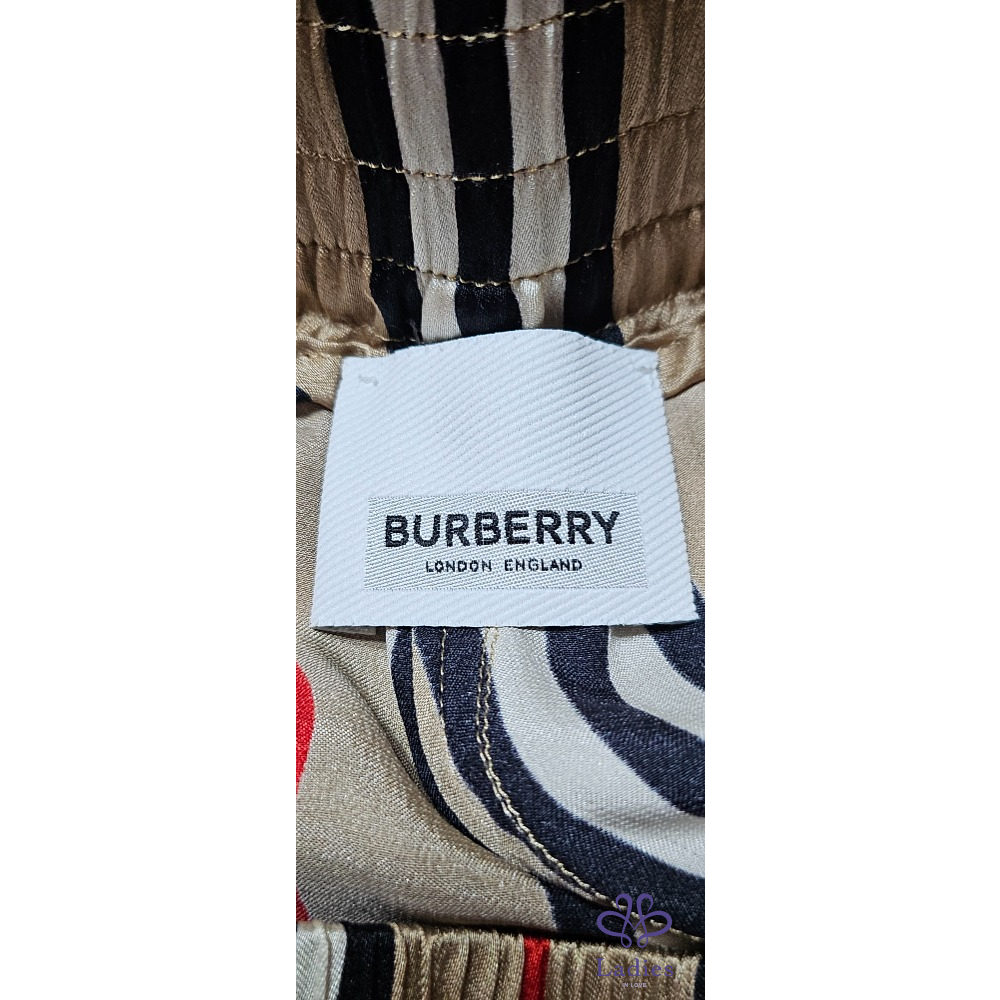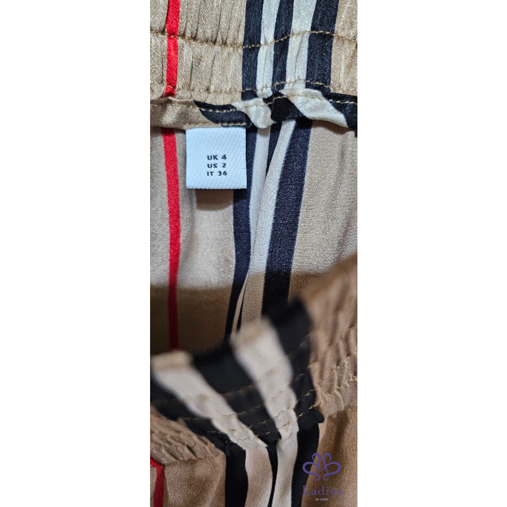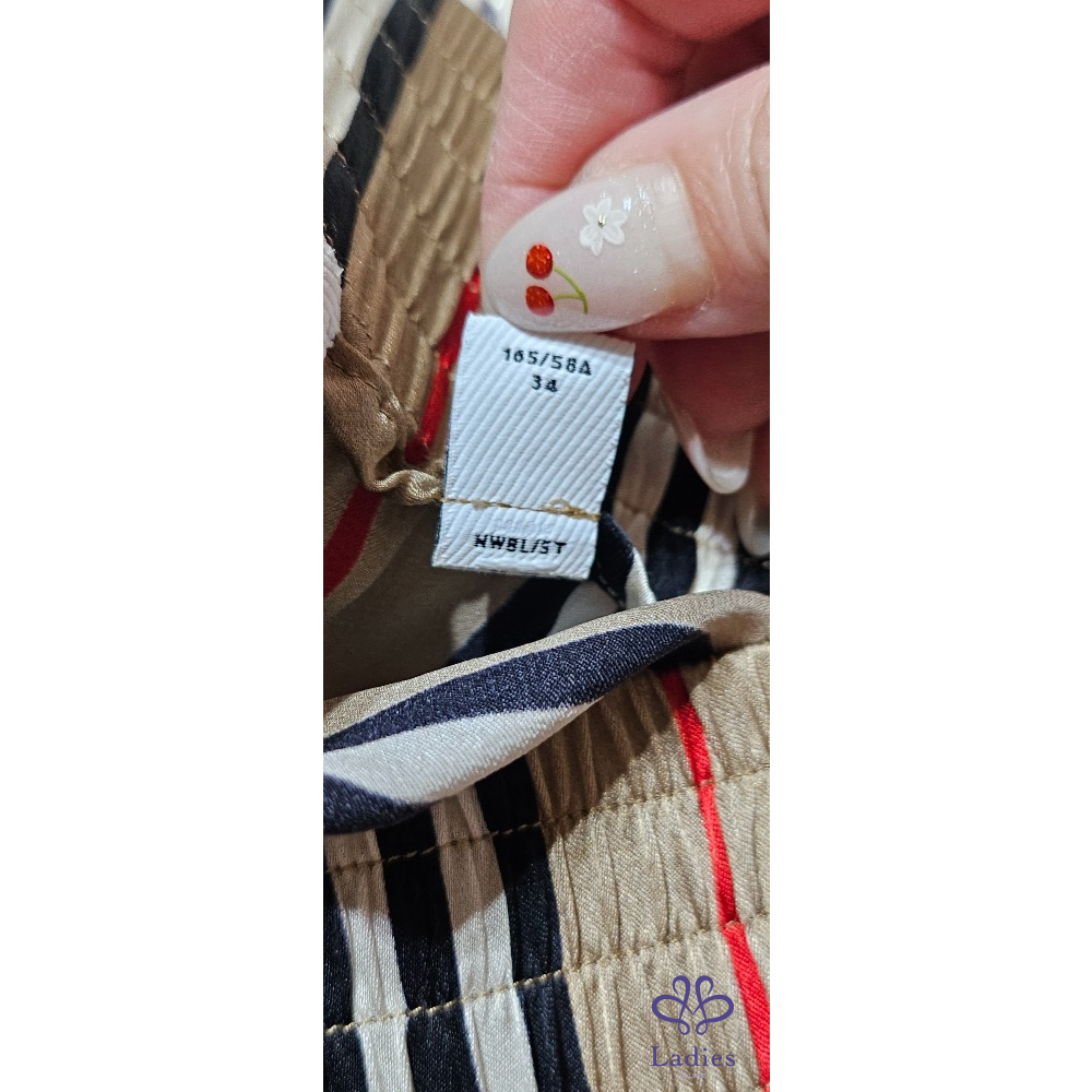 義大利真絲布料,標誌性巴寶莉條紋,,彈性腰帶,側袋設計,拉高款式