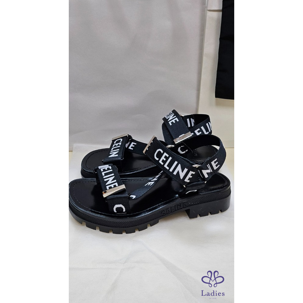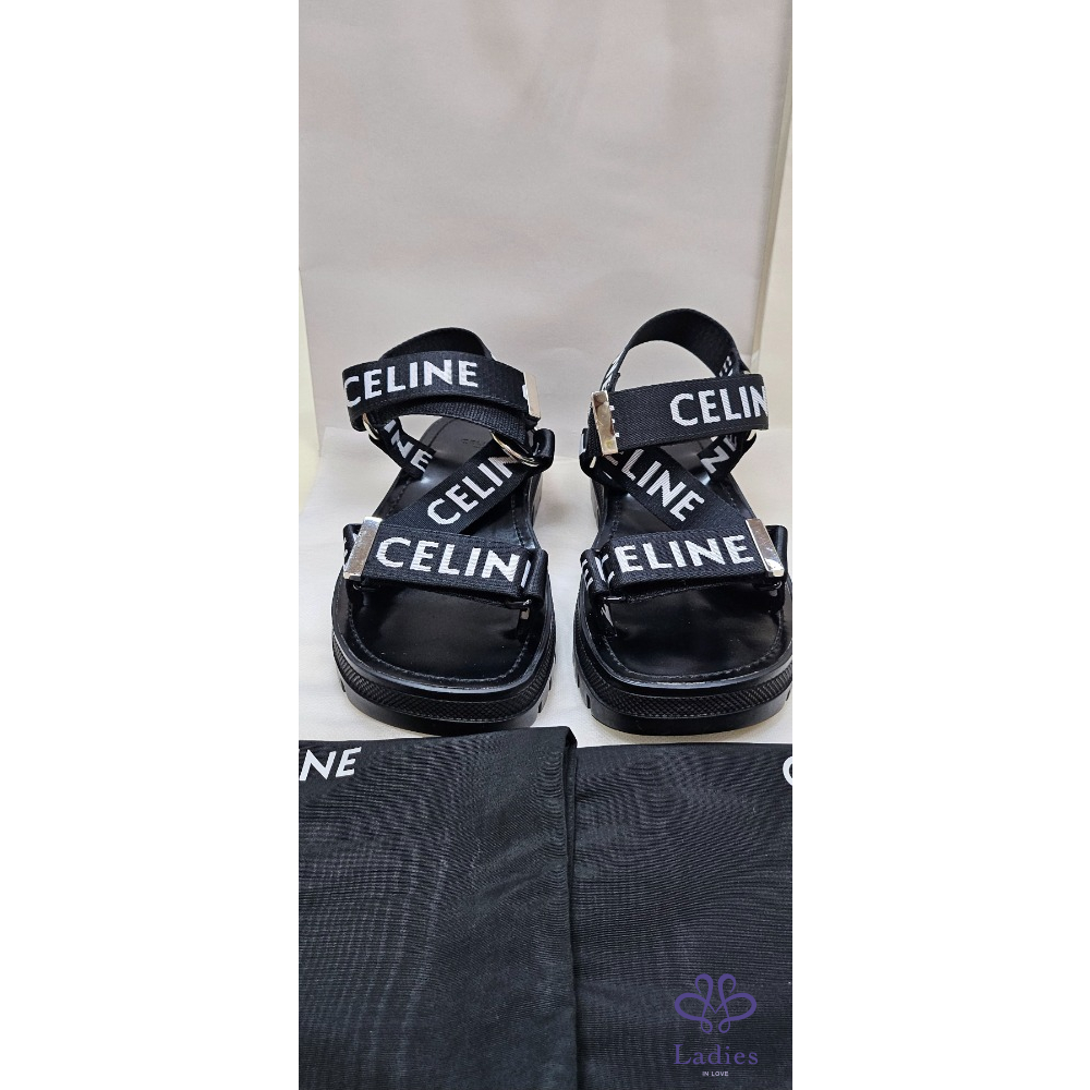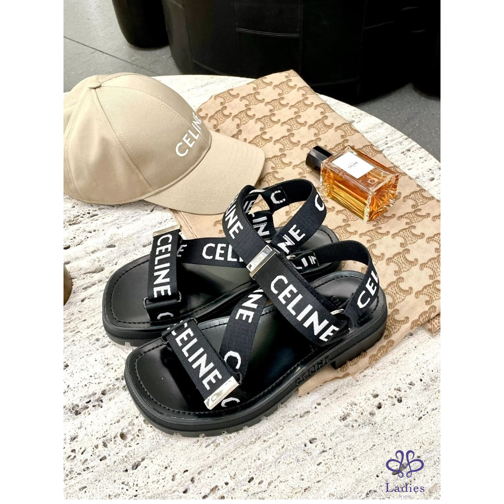 首頁 精品女鞋 Celine緹花繫帶魔鬼氈涼鞋