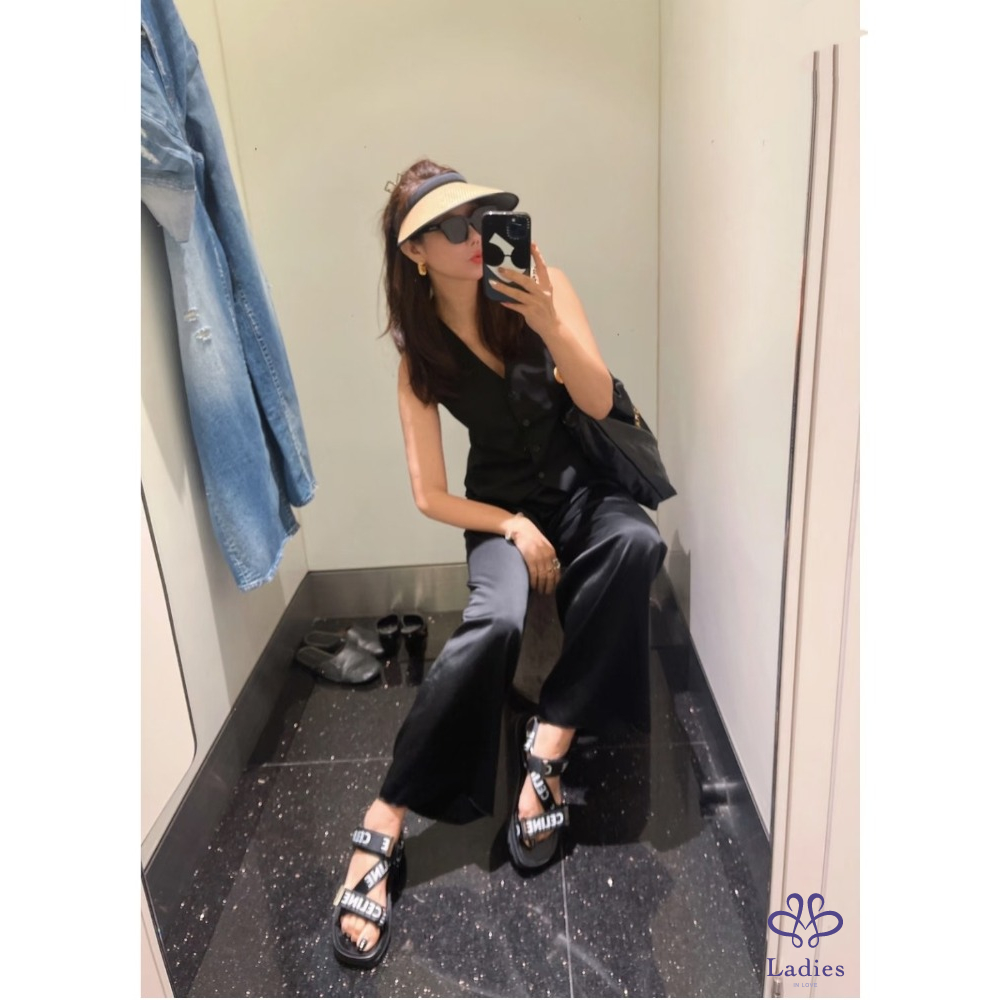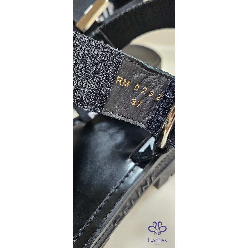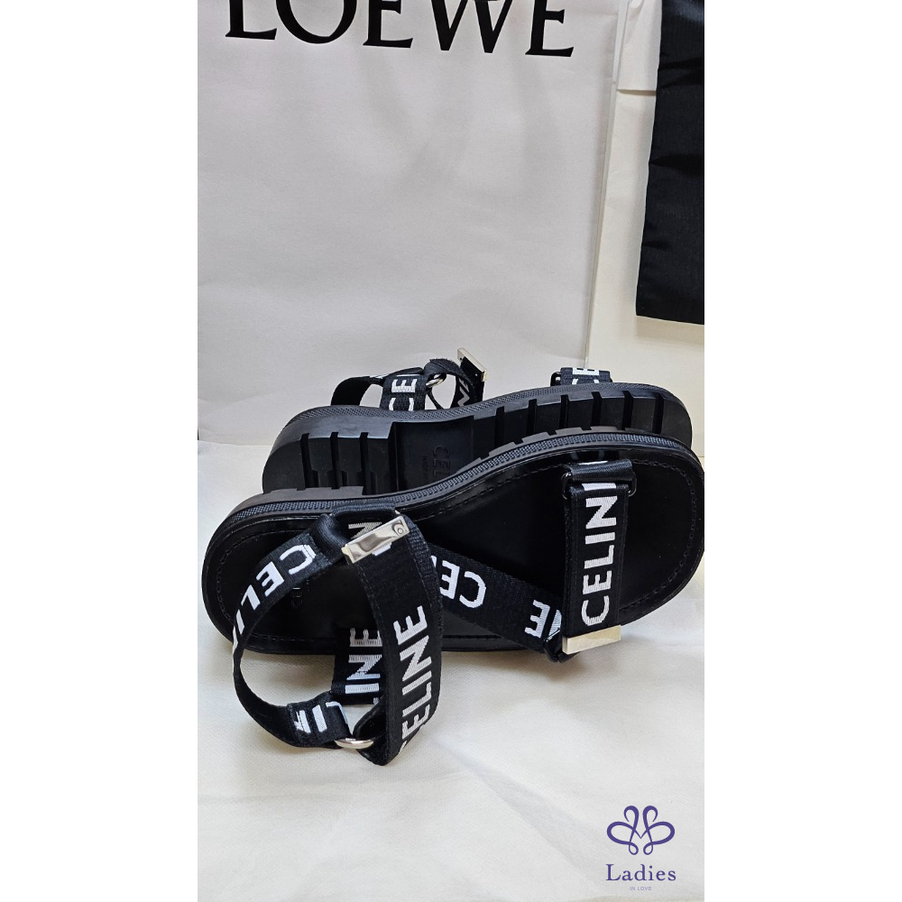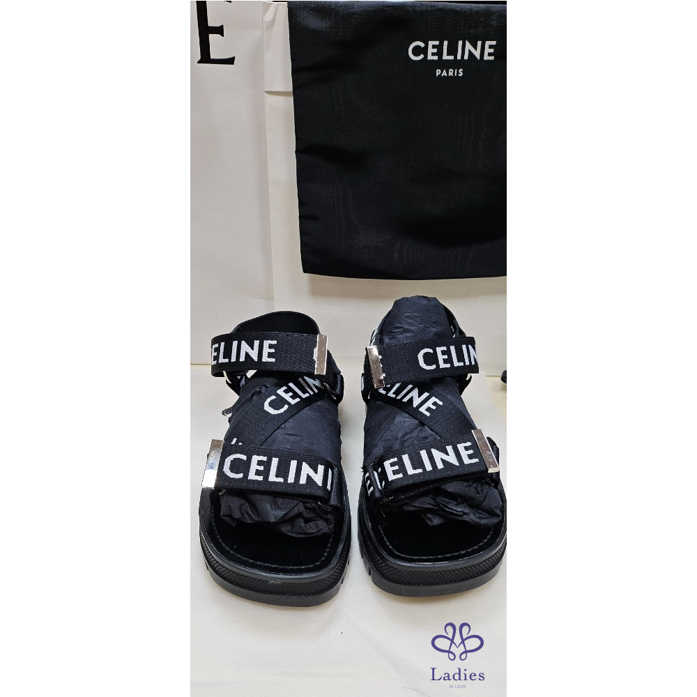 首頁 精品女鞋 Celine緹花繫帶魔鬼氈涼鞋