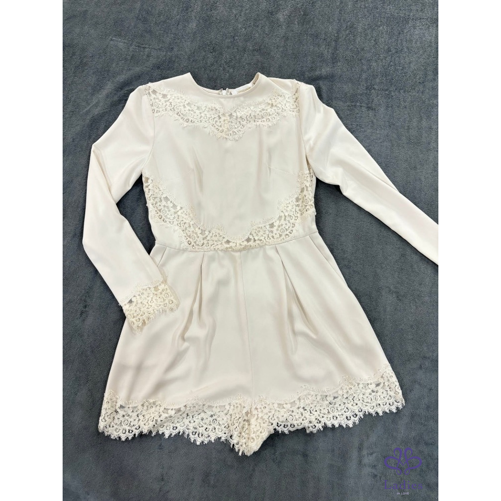 Zimmermann奶油白 圓領領口燒花蕾絲簍空連身褲