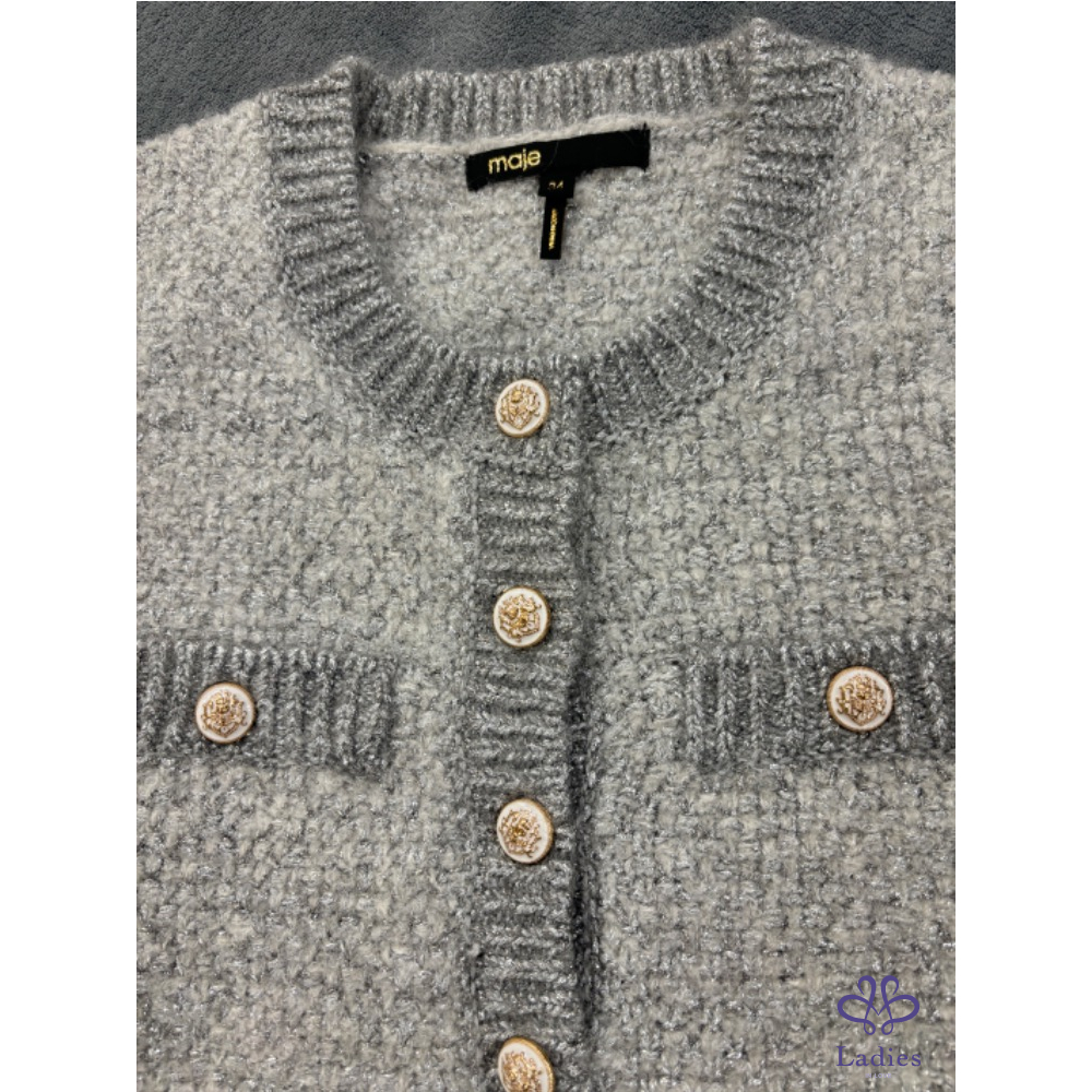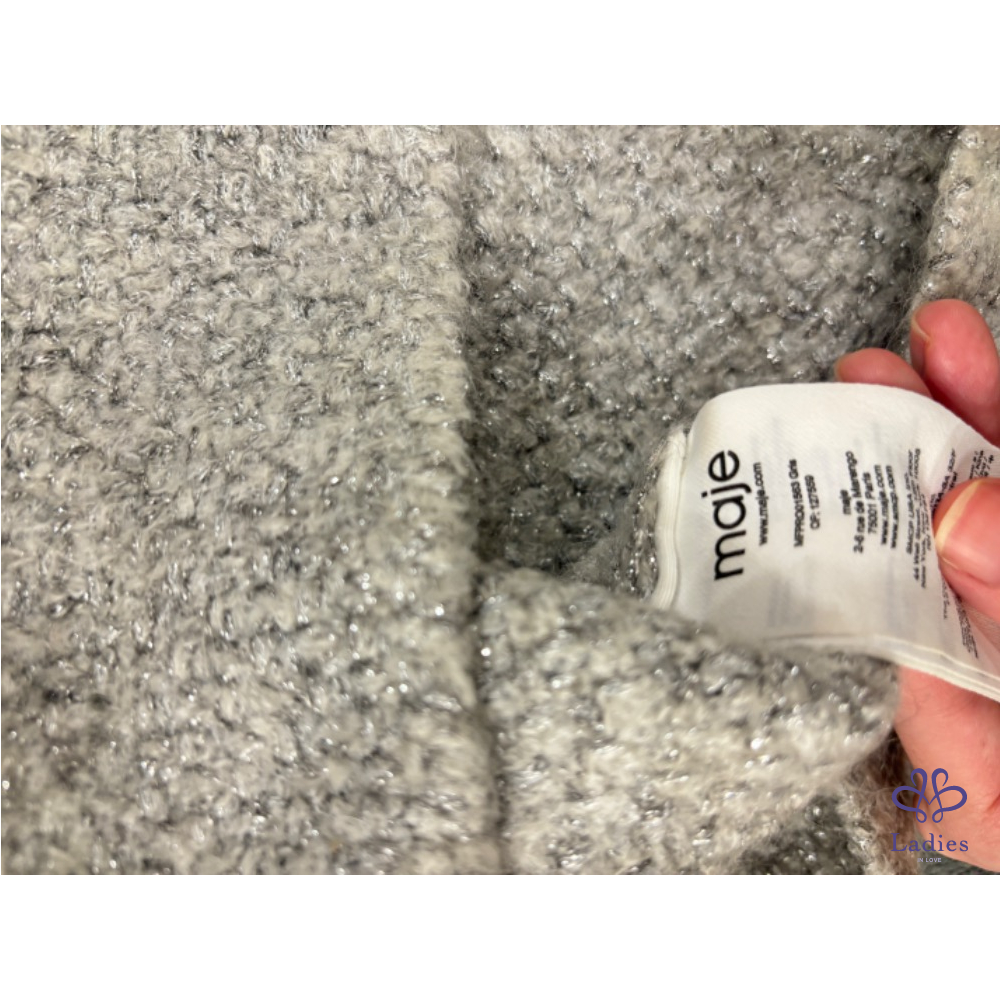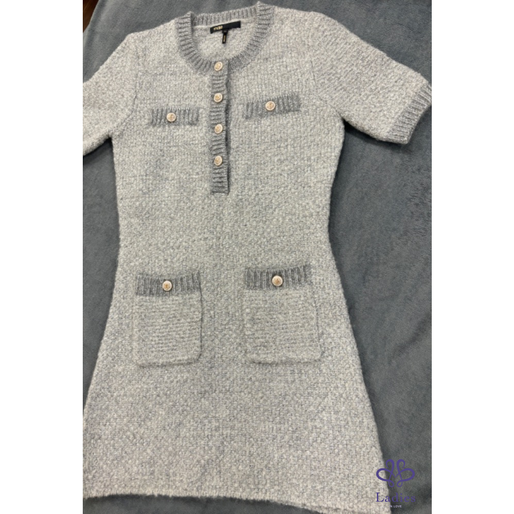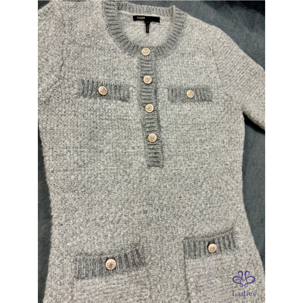 MAJE雲光呢語淡灰金蔥羊毛彈性洋裝