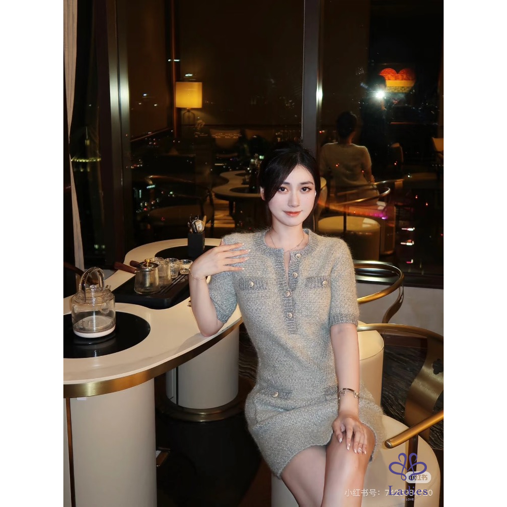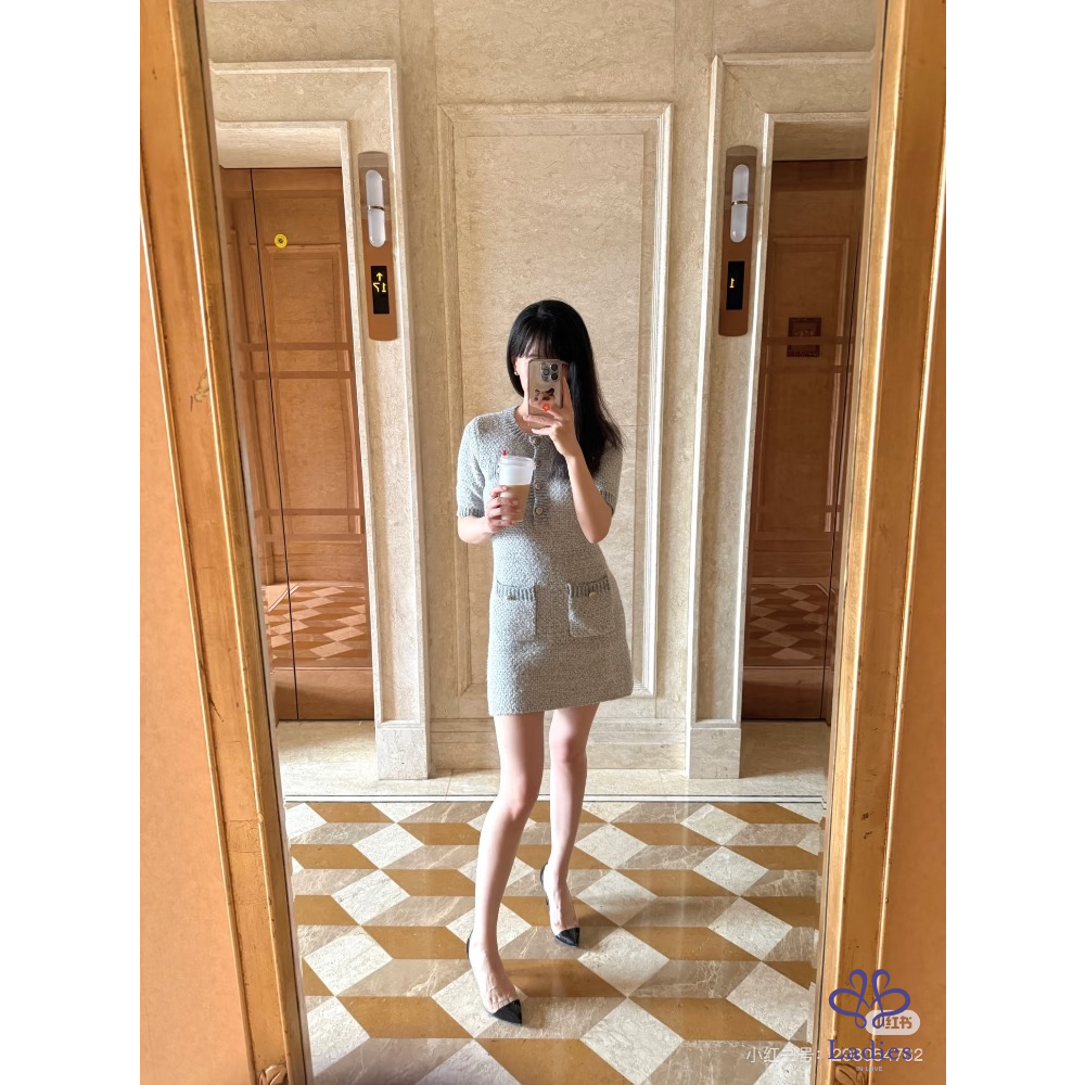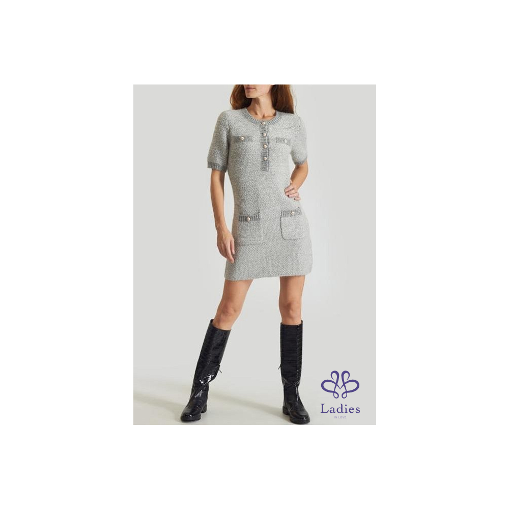 首頁 精品服飾 MAJE雲光呢語淡灰金蔥羊毛彈性洋裝