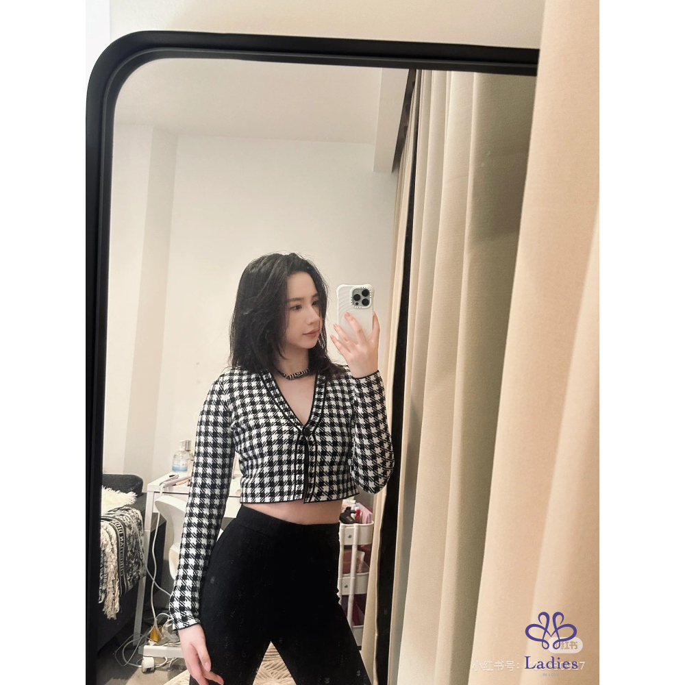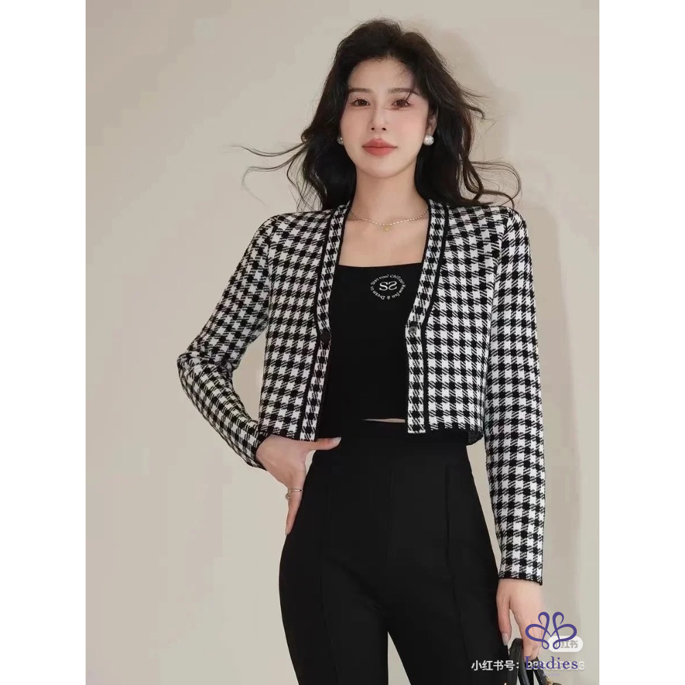 首頁 精品服飾 SANDRO巴黎感千鳥格針織短版上衣/外套