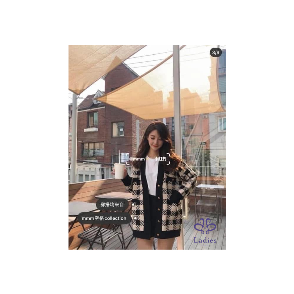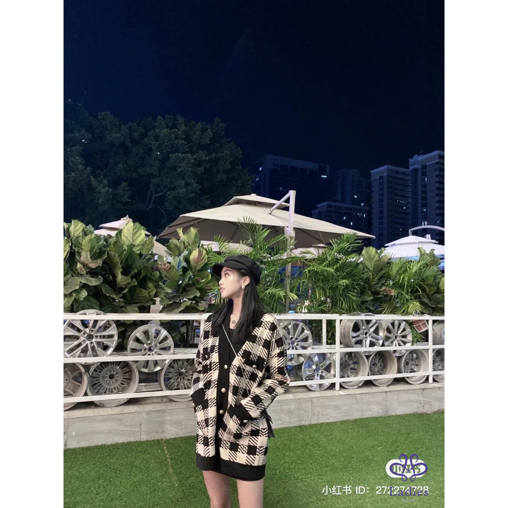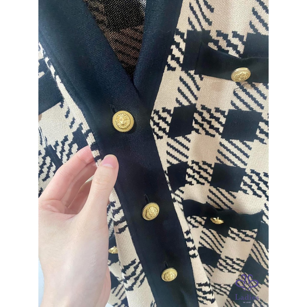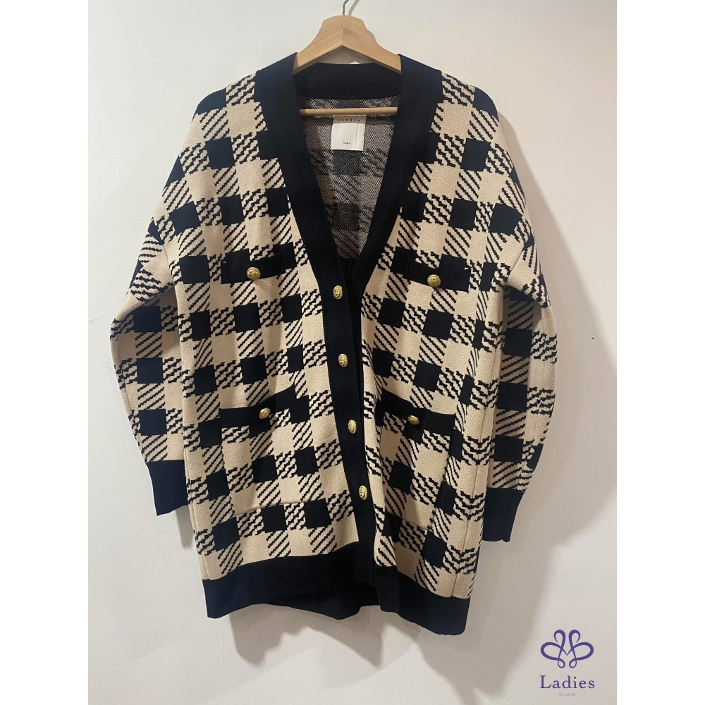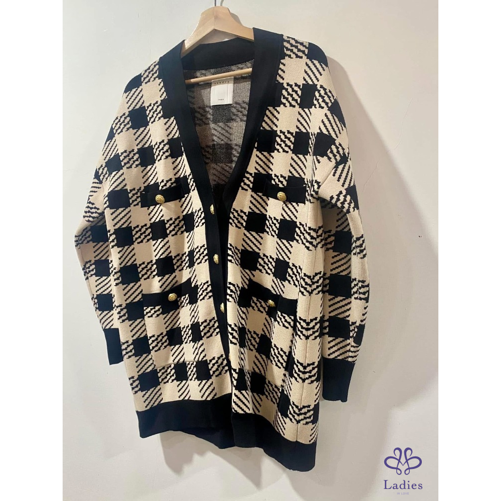 SANDRO 經典爆款 千鳥格金釦針織外套