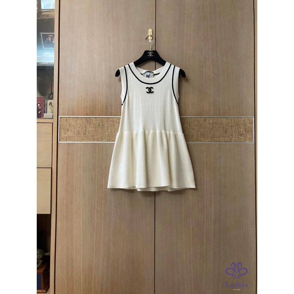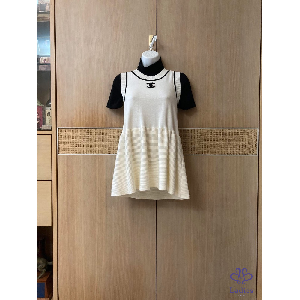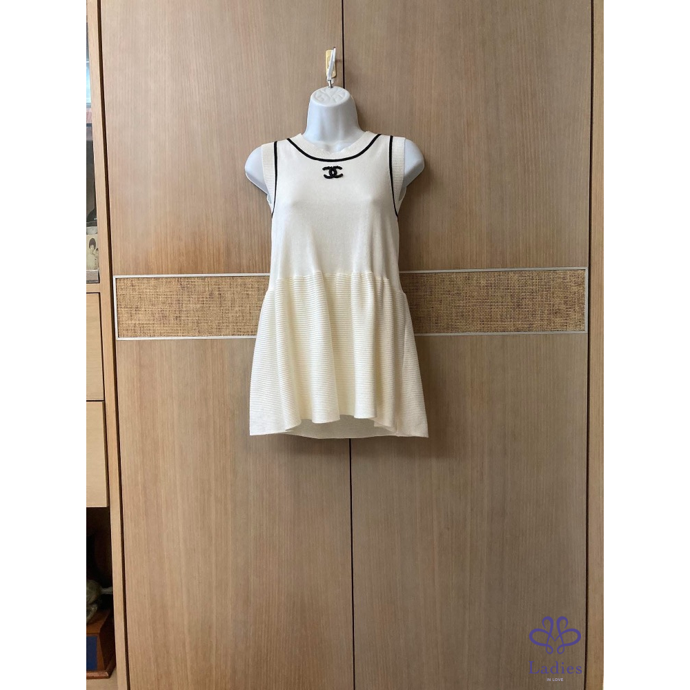CHANEL米色小香針織背心式上衣洋裝購於專櫃穿過幾次送洗回 尺寸S長66.5胸37 整件有彈性伸縮
