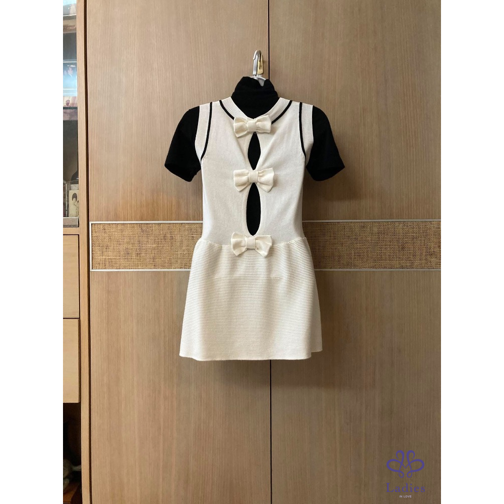 小香針織背心上衣洋裝超美的小個子美女可直接當洋裝怕短的下面搭件短褲短裙皆可 簡單的針織背心上面雙C立體串珠logo跟領子袖口相呼應貴族名媛風格可以單穿搭外套披肩或是裡面搭內搭襯衫都很好看喔cp值那是相當高的喔出清價$23800含運售出不退感謝辛苦管理員謝謝美女們推喔她團
