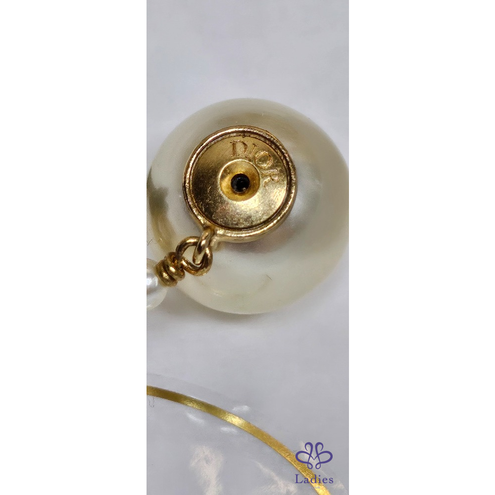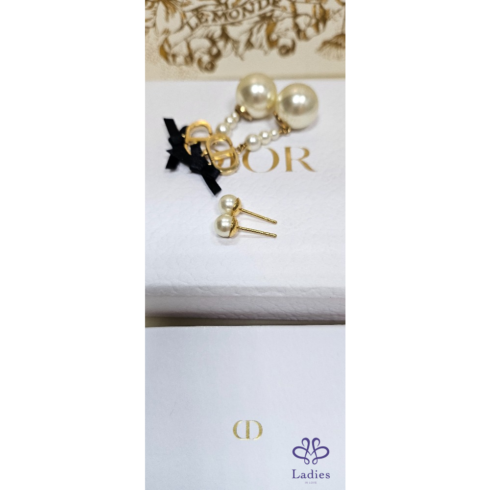 Dior Tribales耳環,金色金屬,白色樹脂珍珠和黑色緞帶