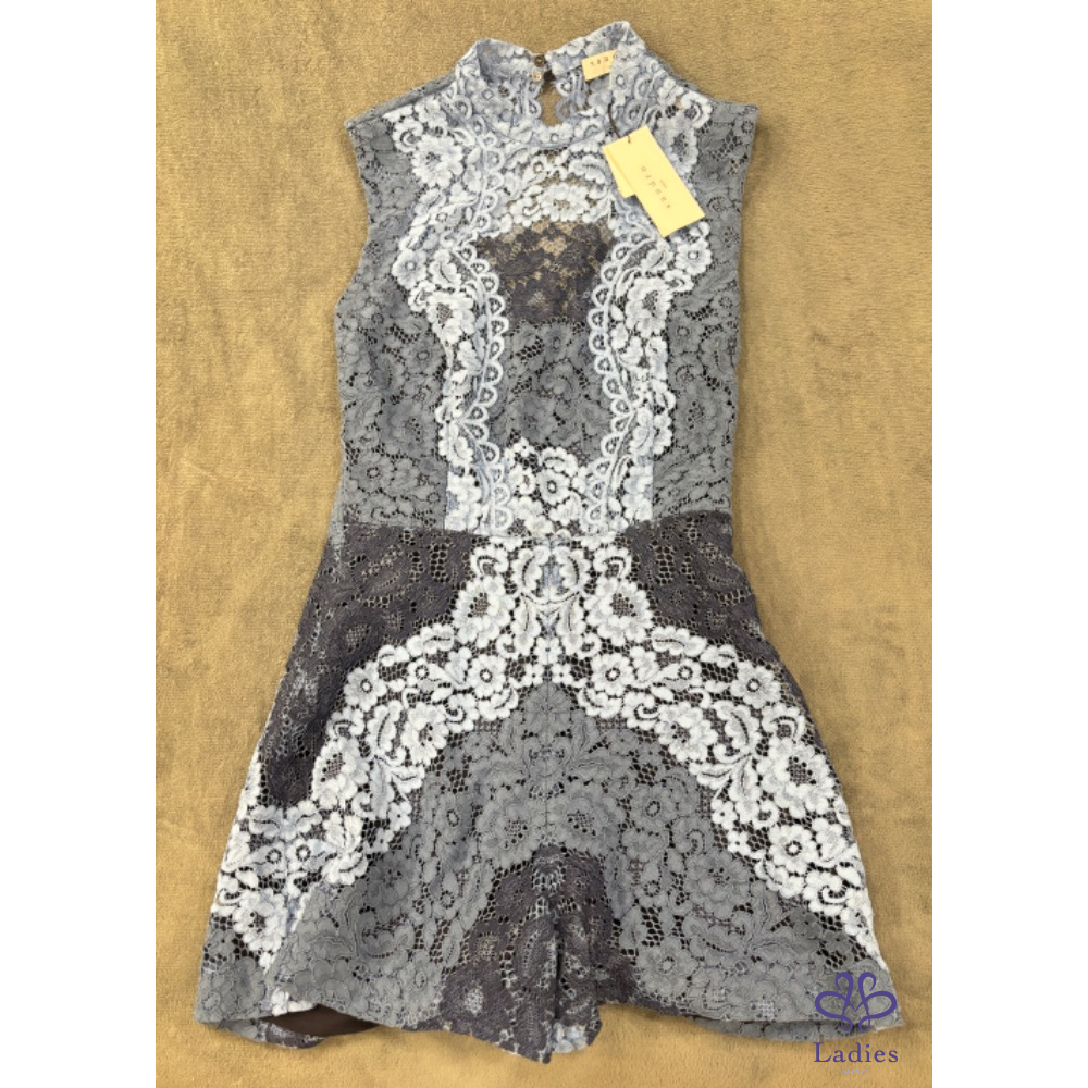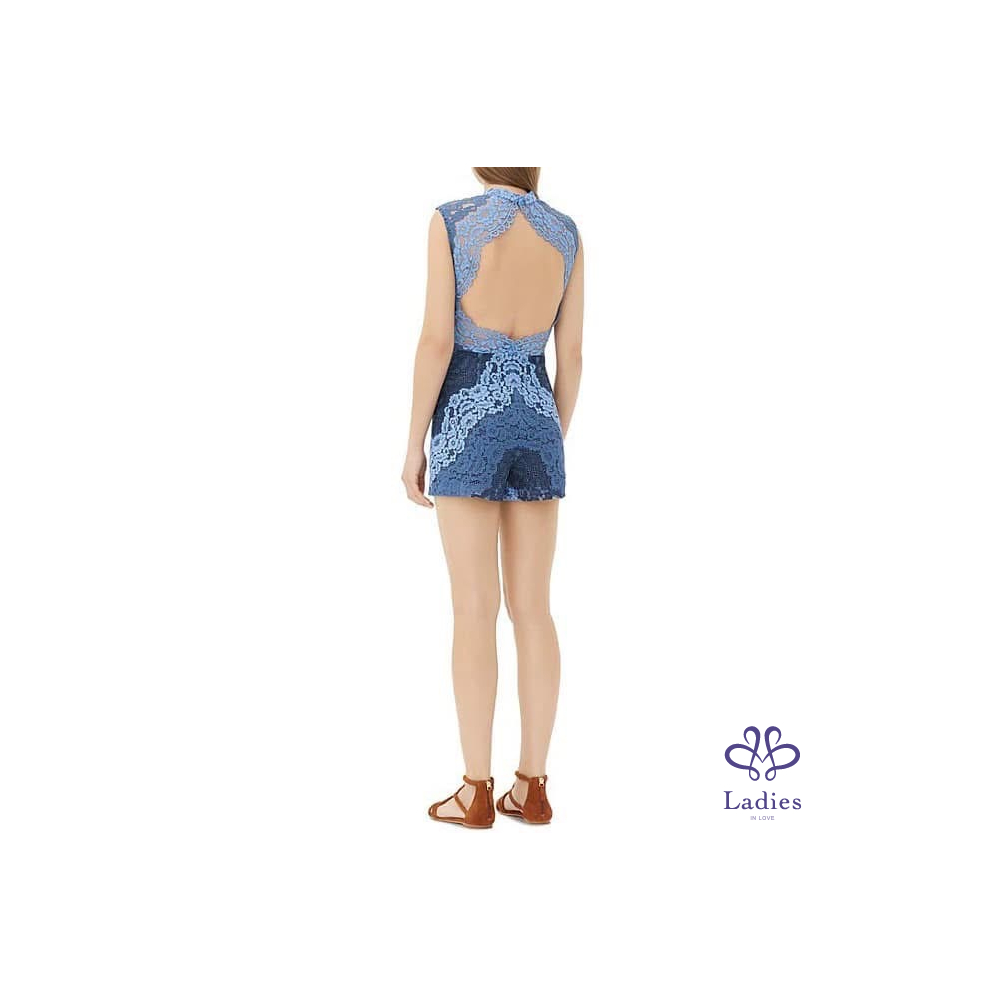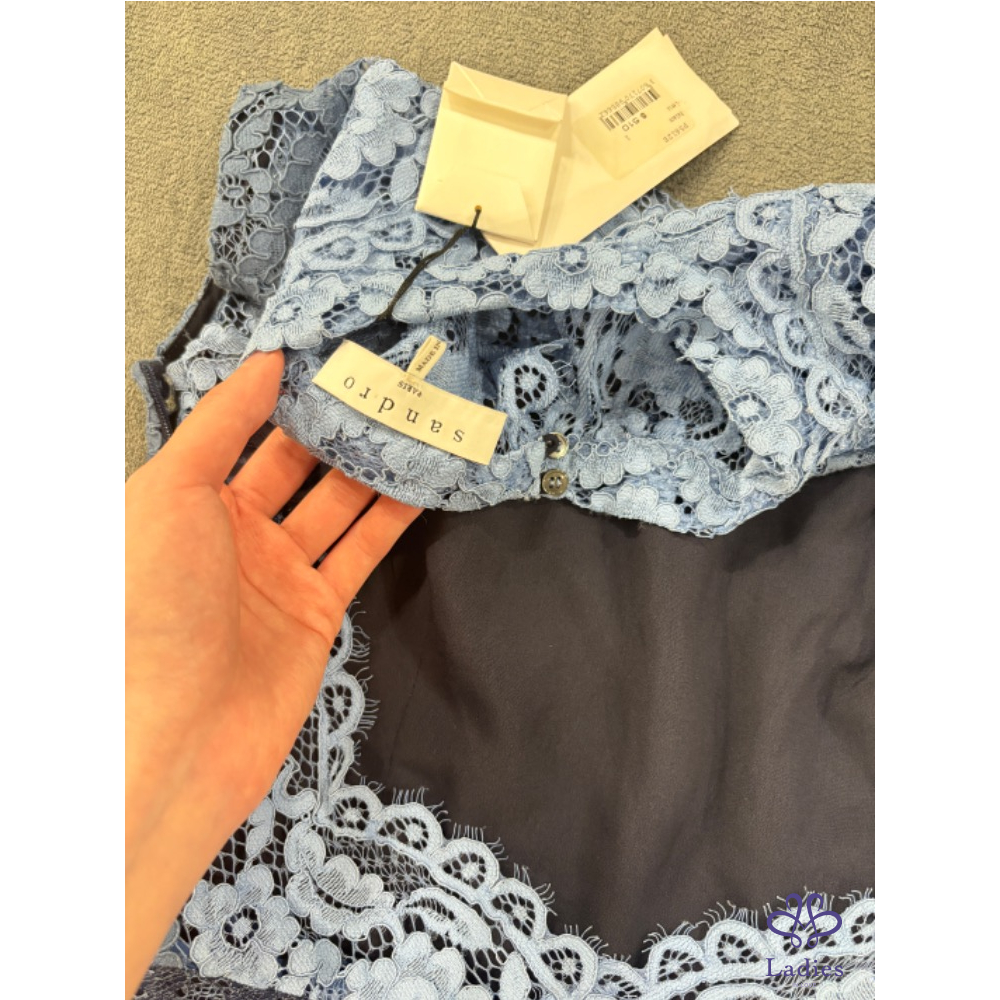 SANDRO 漸層藍睫毛蕾絲美背連身褲