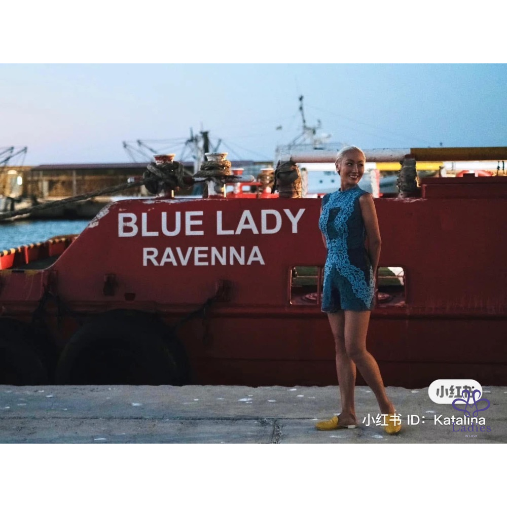 首頁 精品服飾 SANDRO 漸層藍睫毛蕾絲美背連身褲