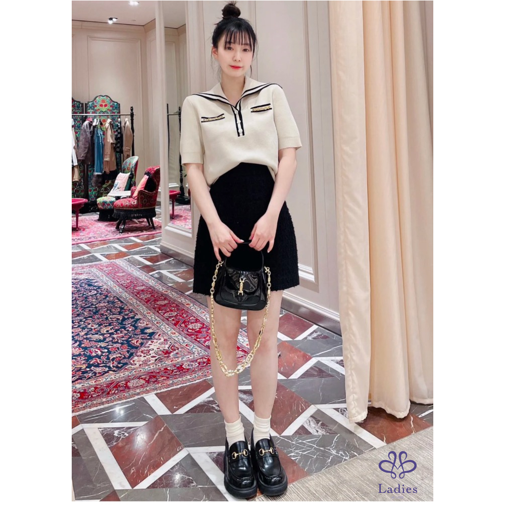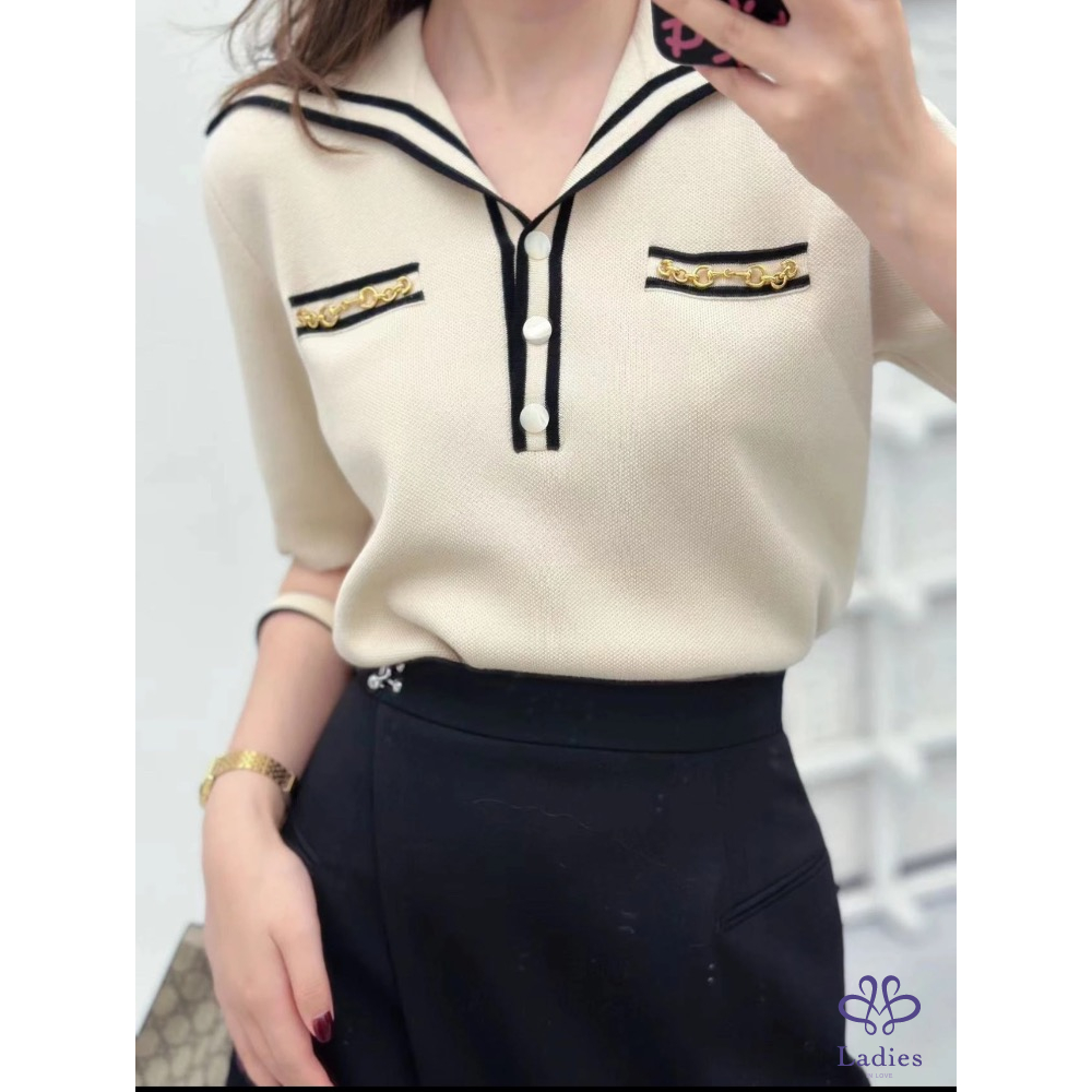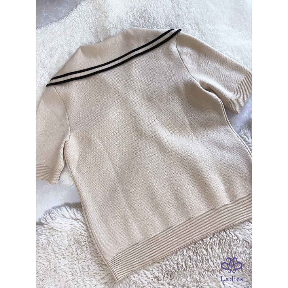 GG➰超好看!奶油色海軍風短袖針織毛衣