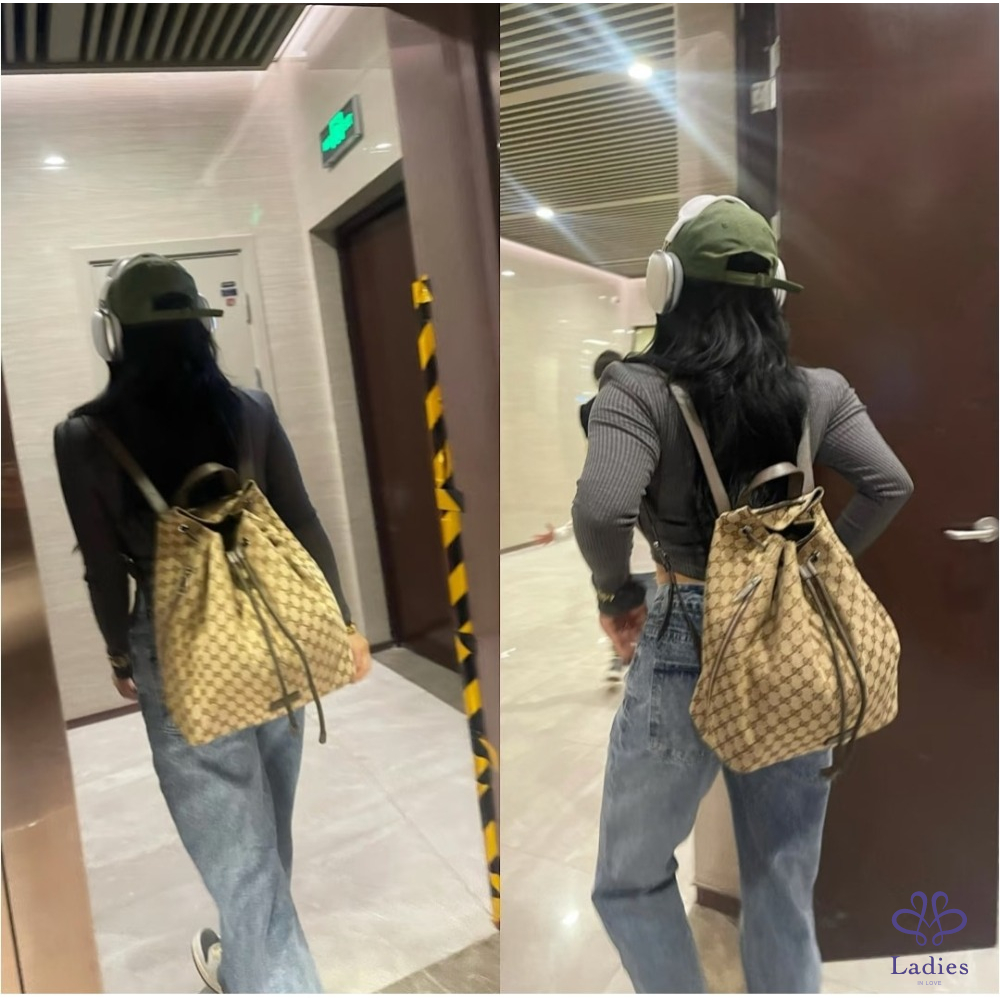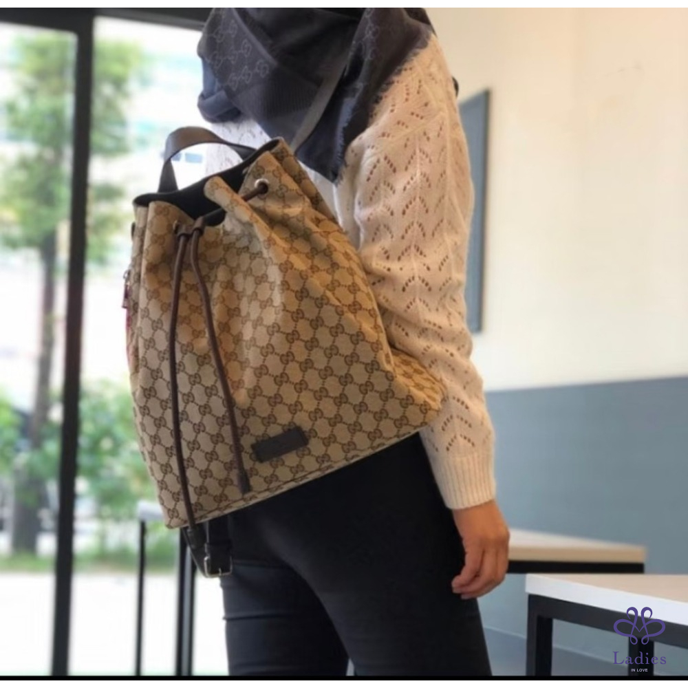 Gucci老花束口後背包