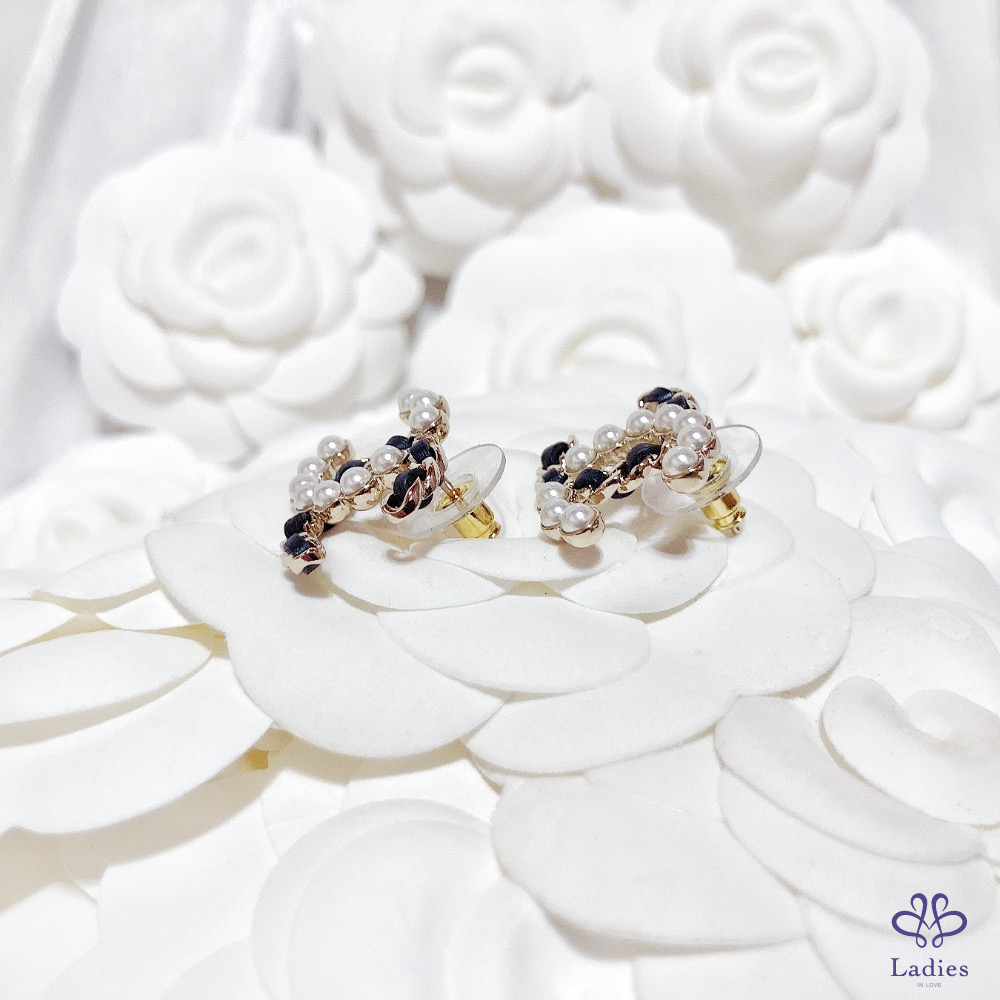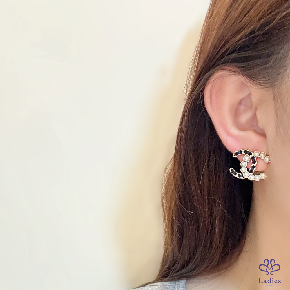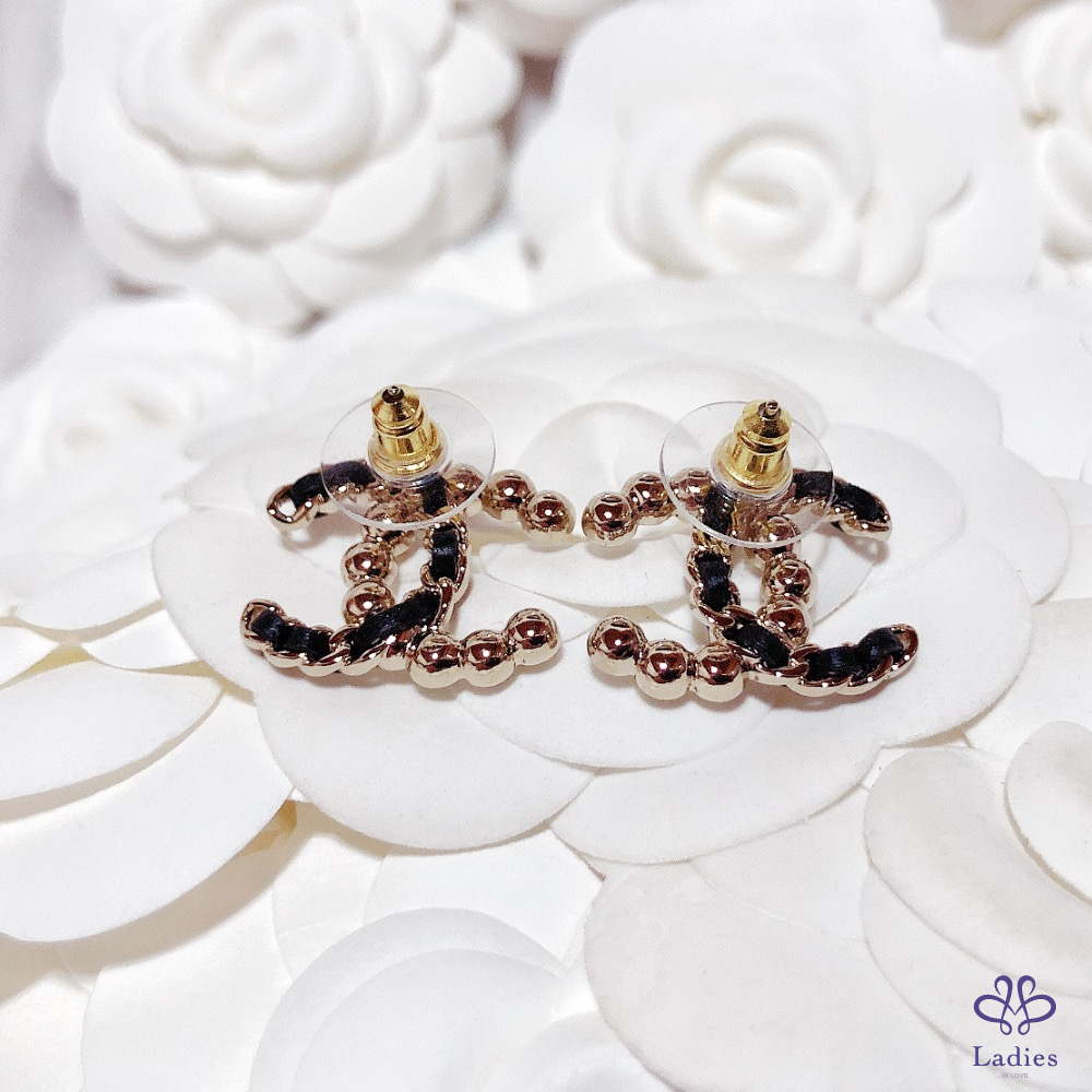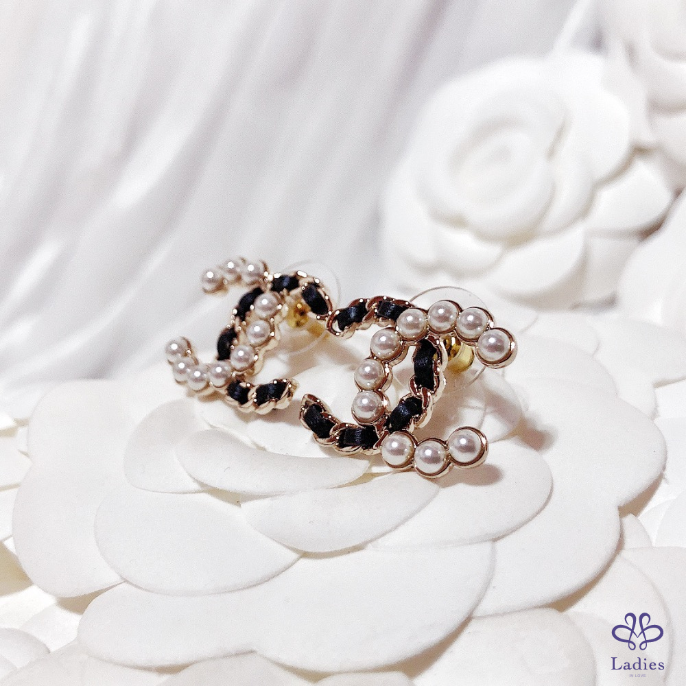 首頁 精品配件 CHANEL 25K 雙C logo 黑色皮穿鍊配珍珠 金色 針式 耳環 全新✨