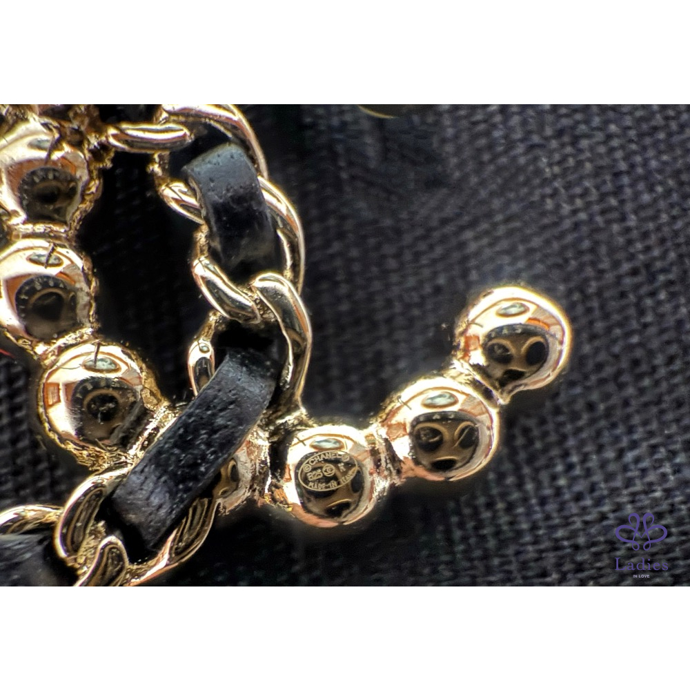 CHANEL 25K 雙C logo 黑色皮穿鍊配珍珠 金色 針式 耳環 全新✨