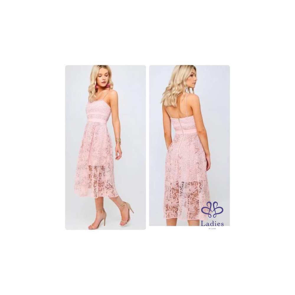 首頁 精品服飾 Self portrait Blush淡粉細肩雕花水溶蕾絲長洋裝