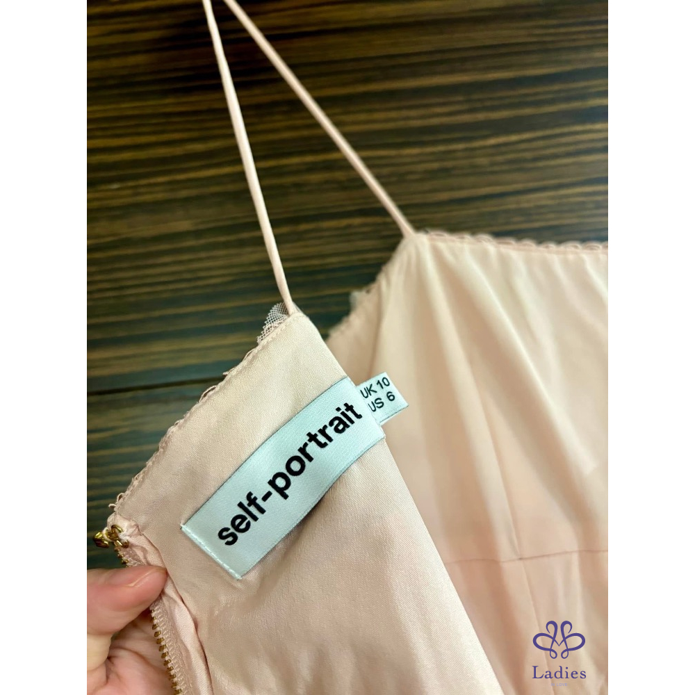 Self portrait Blush淡粉細肩雕花水溶蕾絲長洋裝