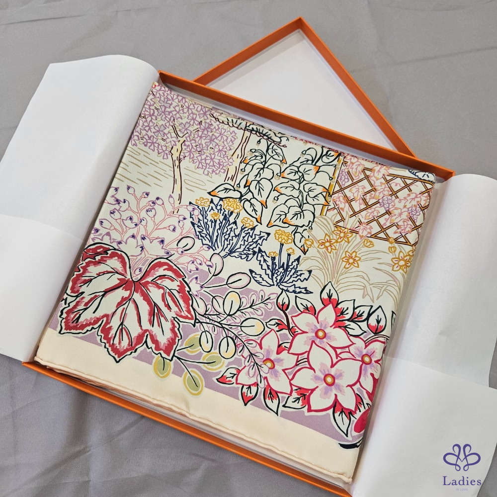 Hermes 90x90 絲巾系列: Mille Feuilles de Soie 一千片絲綢葉子 (雙面)