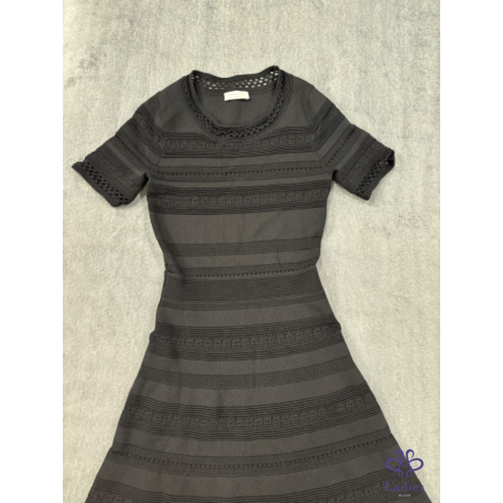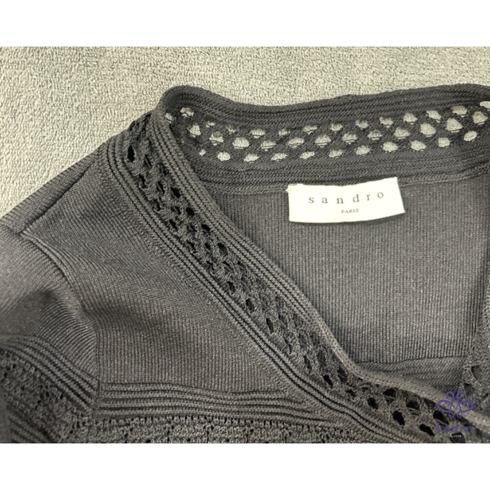 SANDRO黑色法式圓領瘦瘦鏤空針織洋裝
