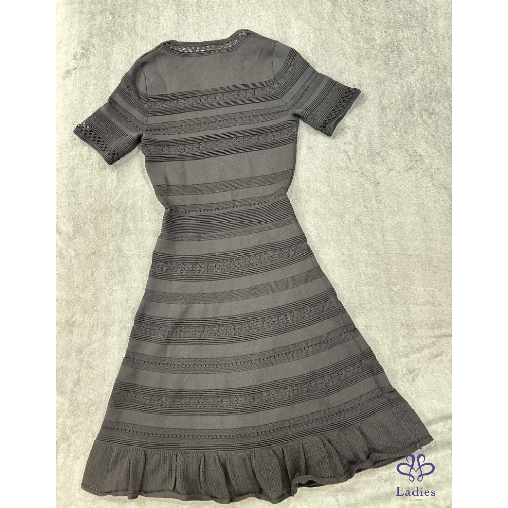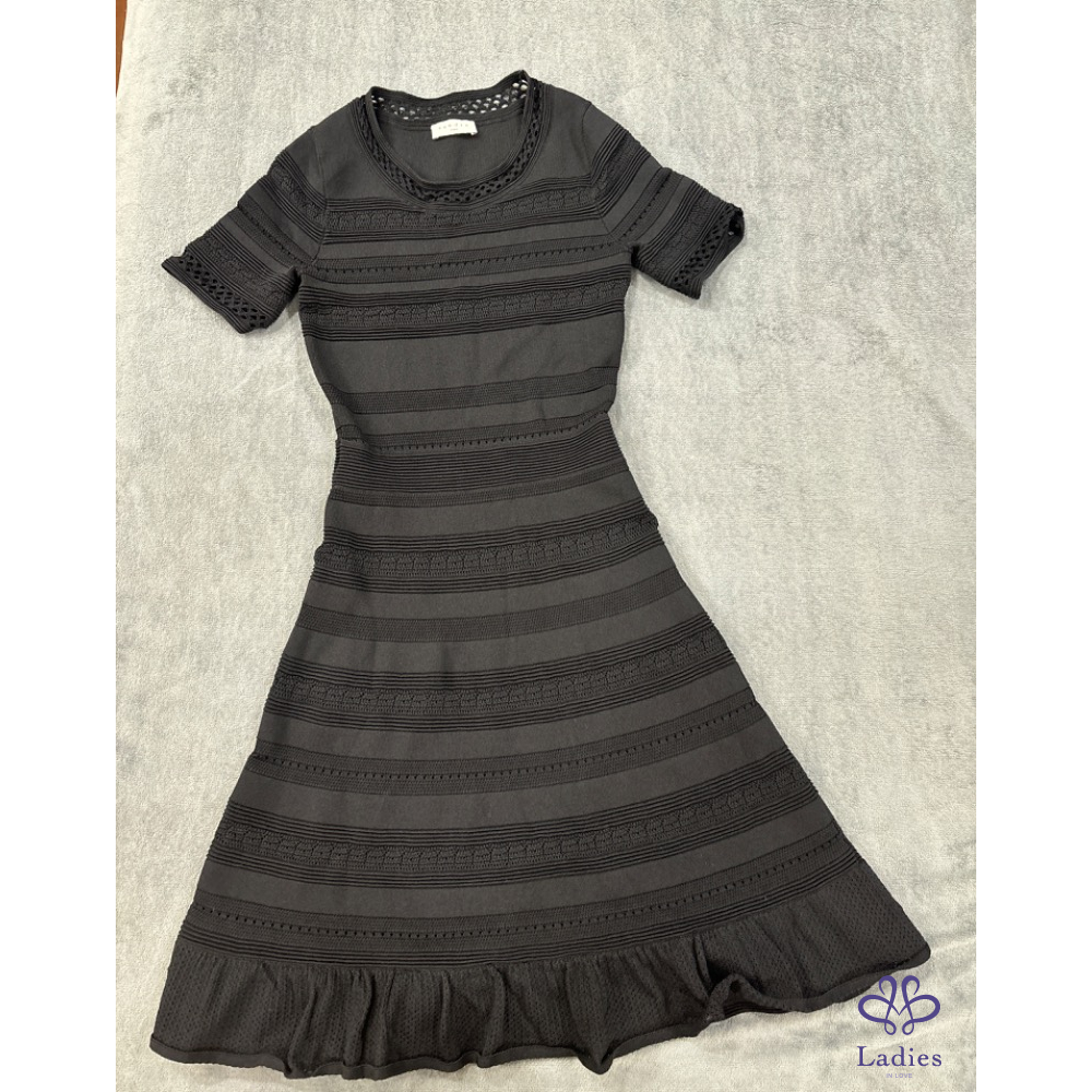 首頁 精品服飾 SANDRO黑色法式圓領瘦瘦鏤空針織洋裝