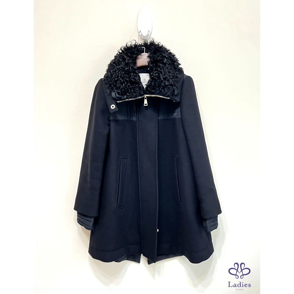 大衣布料75% wool, 領子是小羔羊皮草領, 秋冬厚款