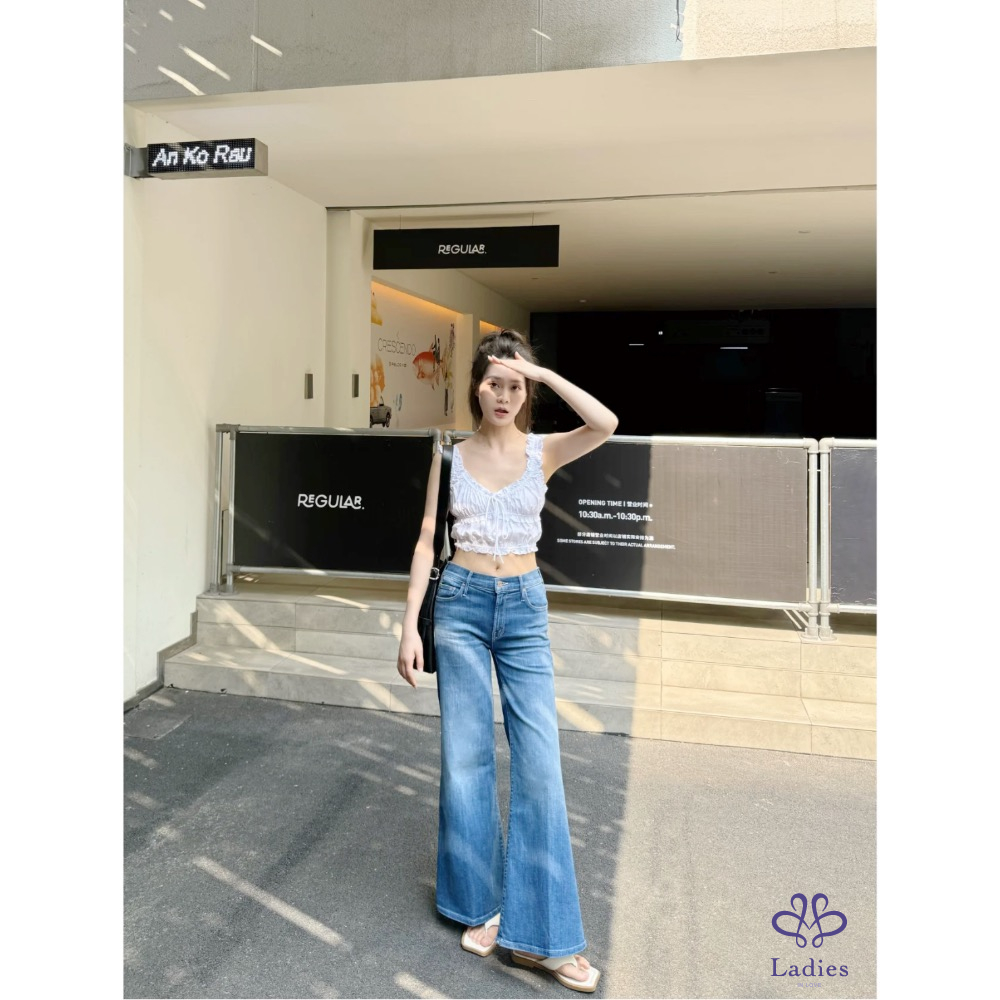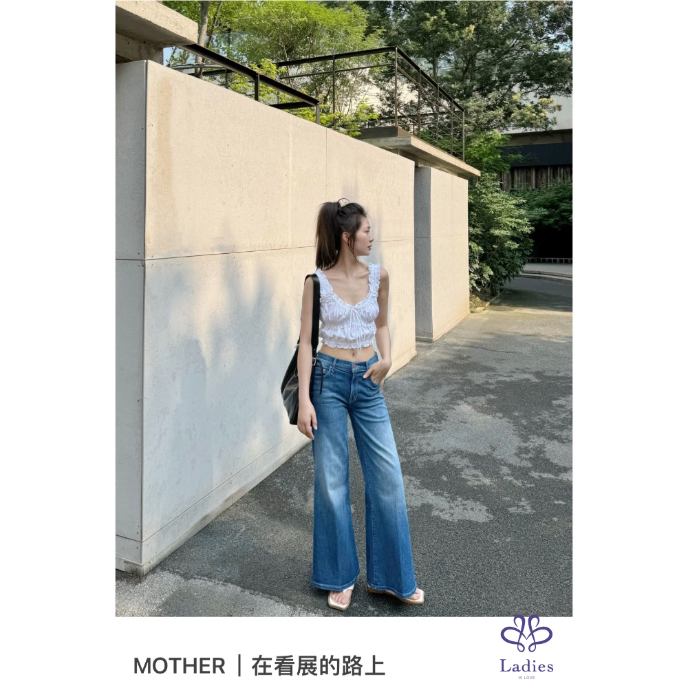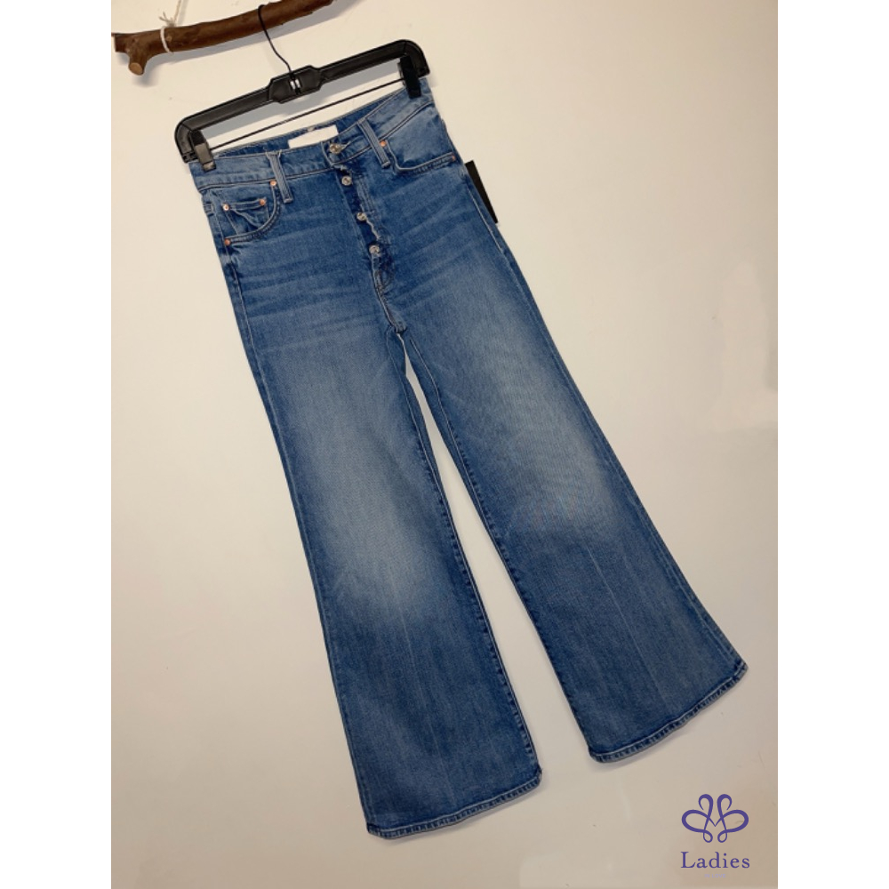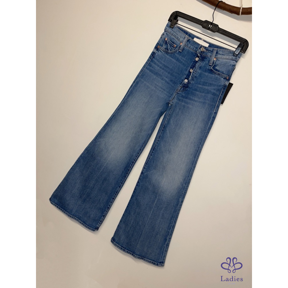 全新Mother 丹寧率性排釦拼接闊腿牛仔褲