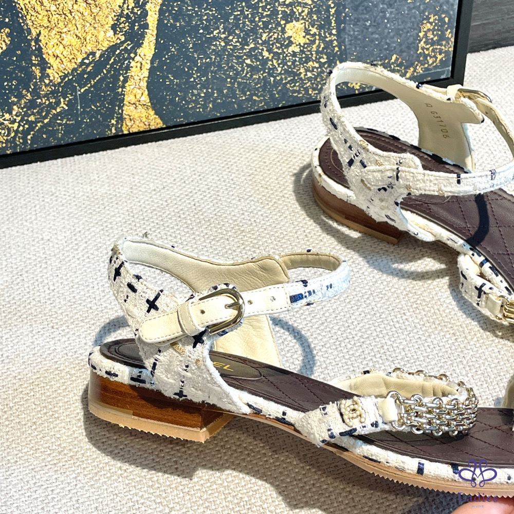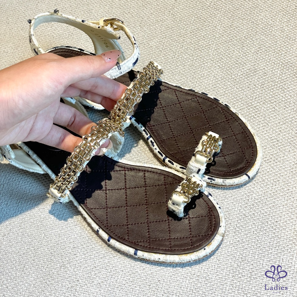 💖香香 鏈條白藍色織涼鞋