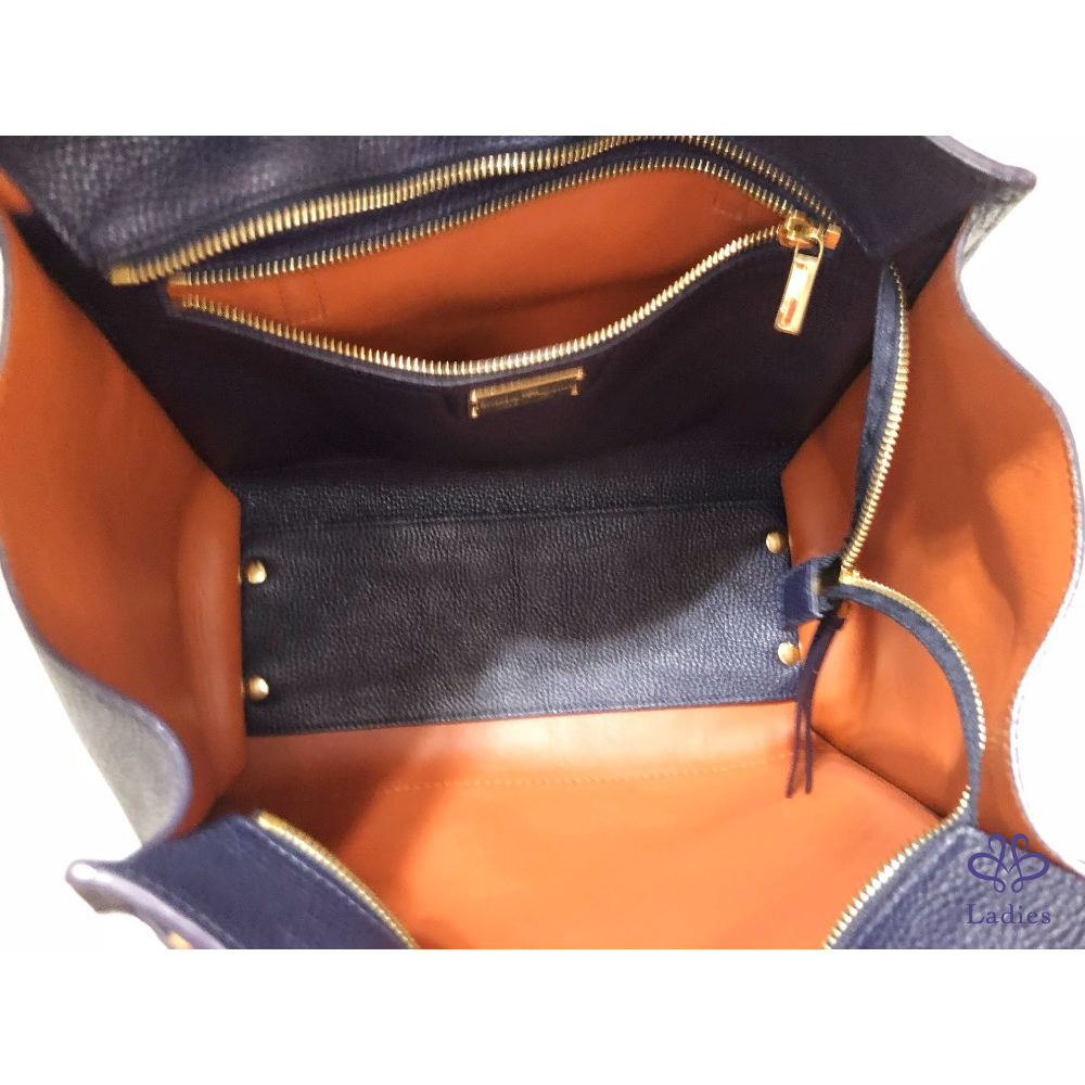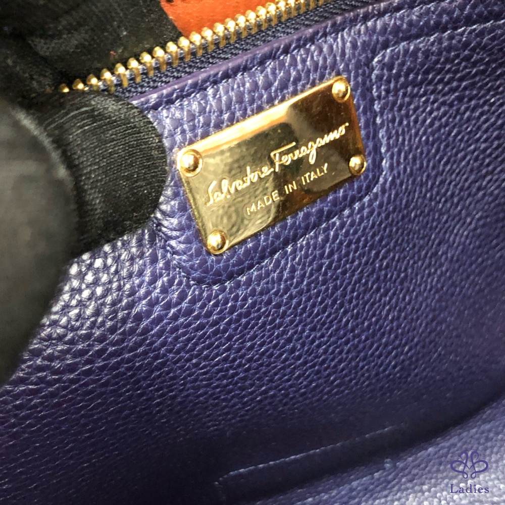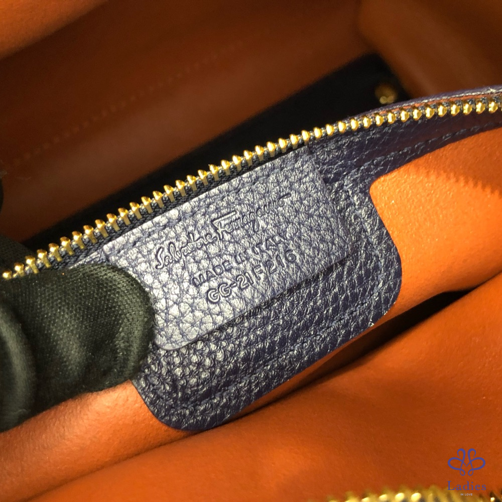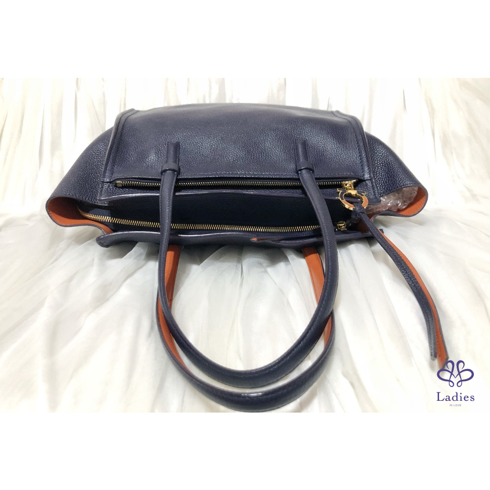 首頁 精品包包 SALVATORE FERRAGAMO菲拉格慕 深藍色 拼色 牛皮 肩背 托特包✨