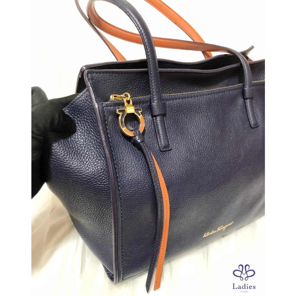 SALVATORE FERRAGAMO菲拉格慕 深藍色 拼色 牛皮 肩背 托特包✨