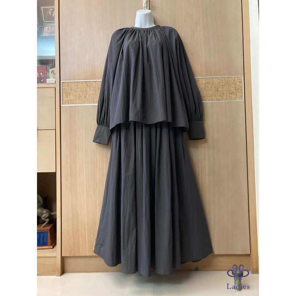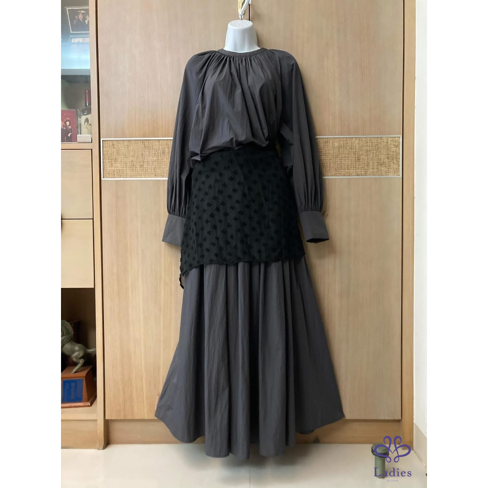 灰色長裙套裝 非常細緻的材質舒適有挺度上衣裙子都有抽細折呈現女生優雅的感覺成套穿著分開搭配繫要帶或是綁條今年流行的絲巾都是不同味道春秋冬或是夏天冷氣房都很適合穿著喔 出清價$3980ㄏㄢˊ售出不退感謝辛苦管理員謝謝美女們推喔她團