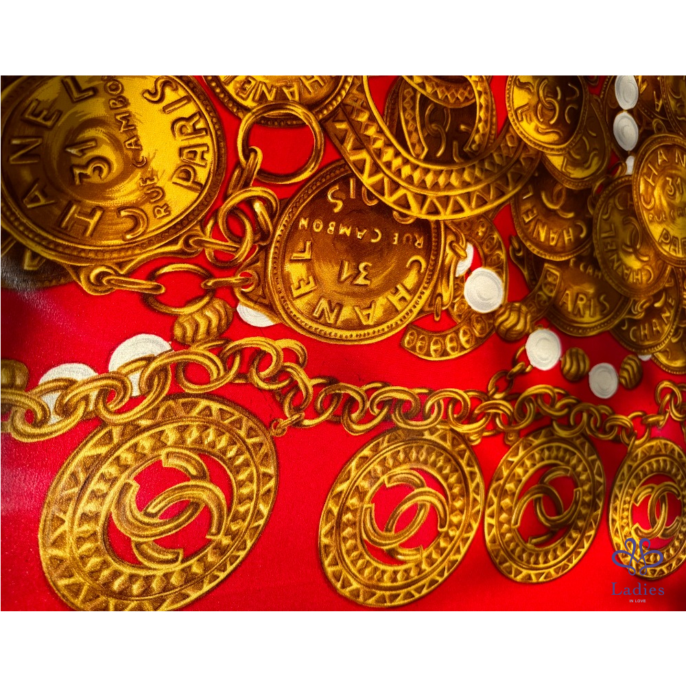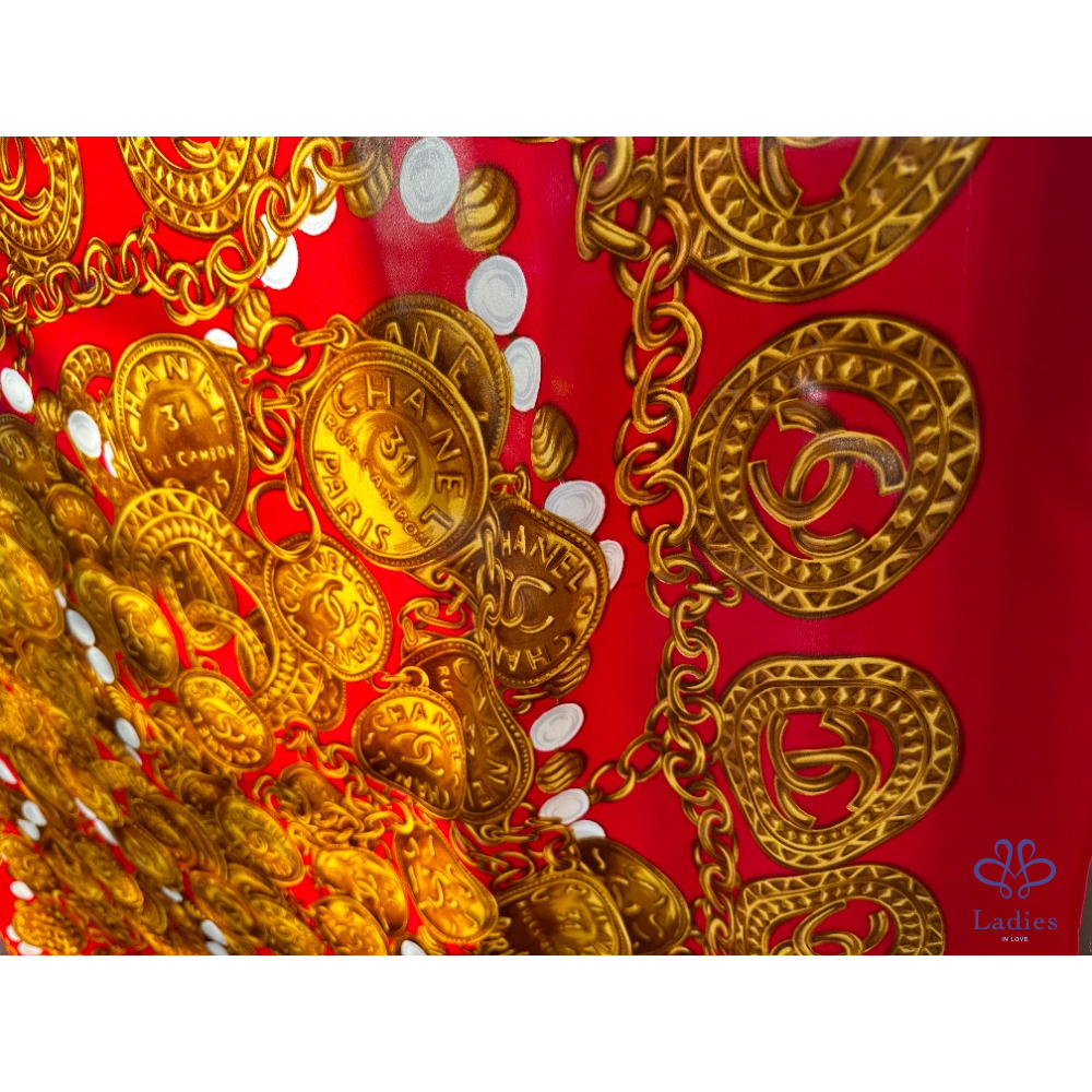 產品信息 A004070 ❤️小香鏈條金幣圍巾是小香一款經典的復古絲巾,以其印有鏈條、金幣圖案的設計而聞名,這款圍巾的設計融合了多個經典元素,展現其典雅奢華的風格~ 🌷材質:100%真絲製成,觸感奢華且柔滑 🪻尺寸:135×135cm 🌼商品新舊:9.8成新 🎁附件:裸裝 🚛運費:$60 #售出不退 #實品拍攝 #得標後24小時內完成匯款