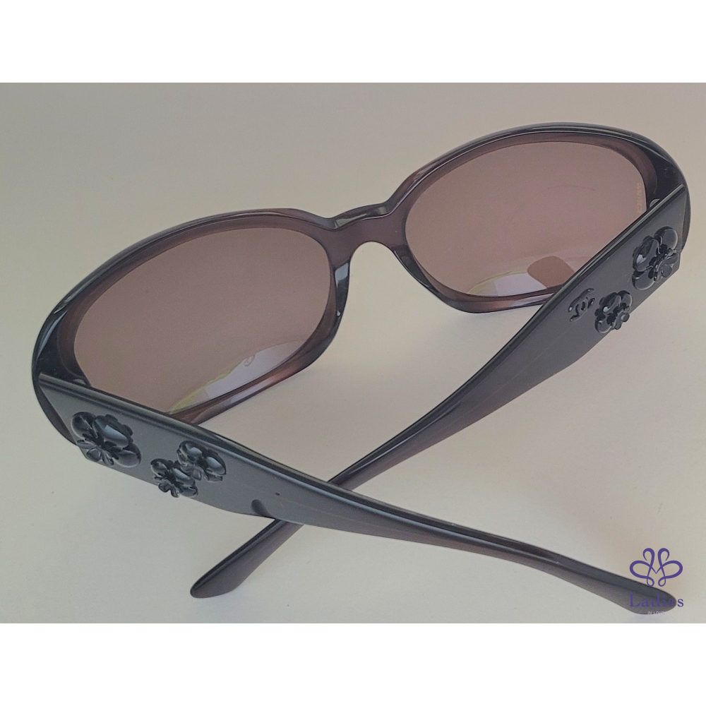 ~小香家 咖啡色框架側架山茶花雙C太陽眼鏡