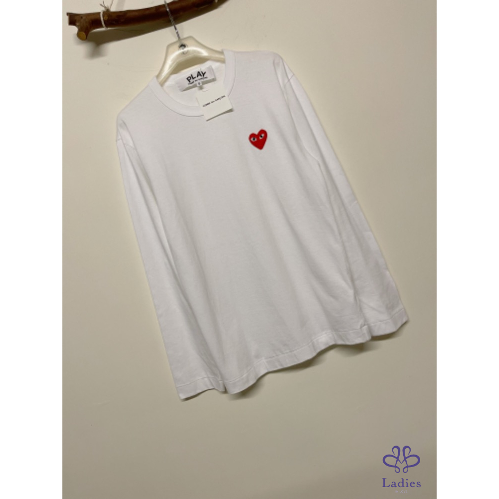 首頁 精品服飾 全新 川久保玲 COMME Des GARÇONS PLAY經典愛心❤️白色長袖T