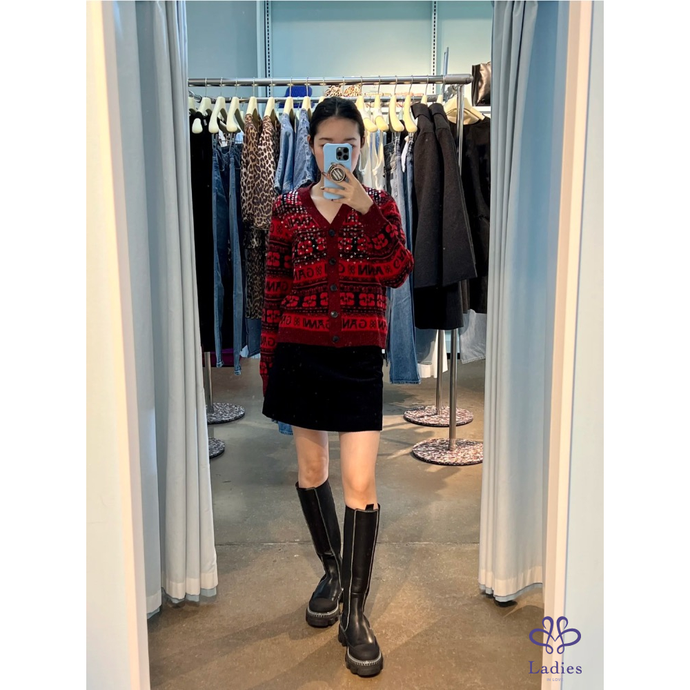 首頁 精品服飾 全新GANNI黑+紅滿版Logo緹花亮片羊毛針織外套