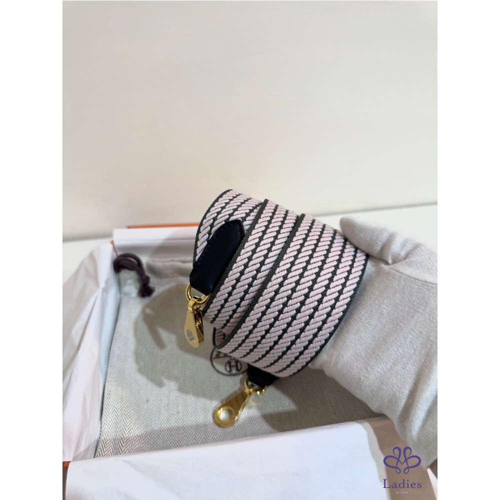 深綠與玫瑰粉的高級撞色,加上黑邊收尾與金扣點綴,展現沉穩又明亮的層次。這款全新 Sangle Cordage,不只是配件,是讓包款「更懂穿搭」的靈魂配角👜