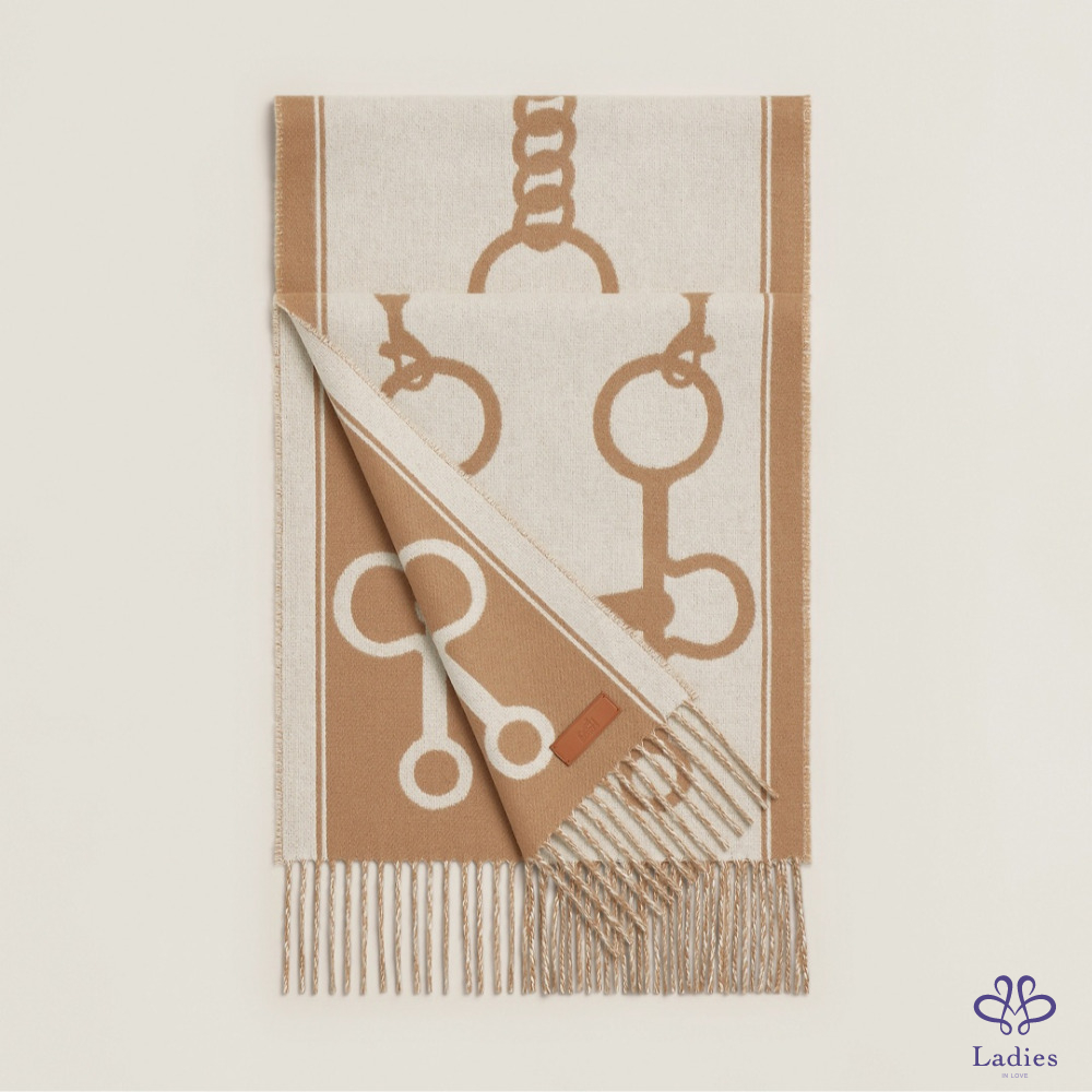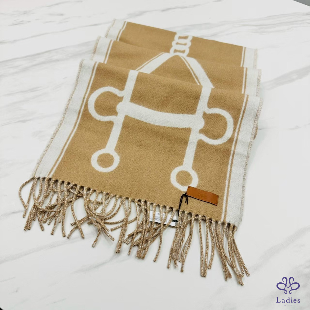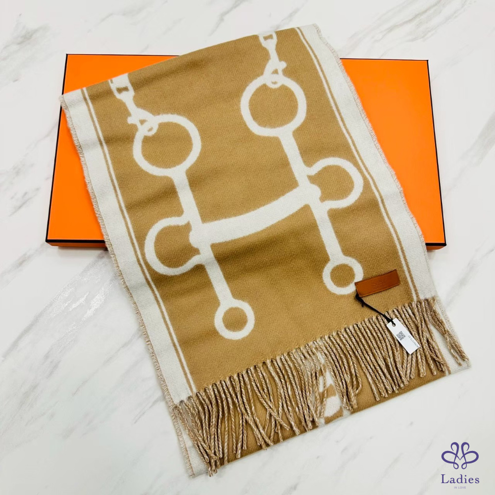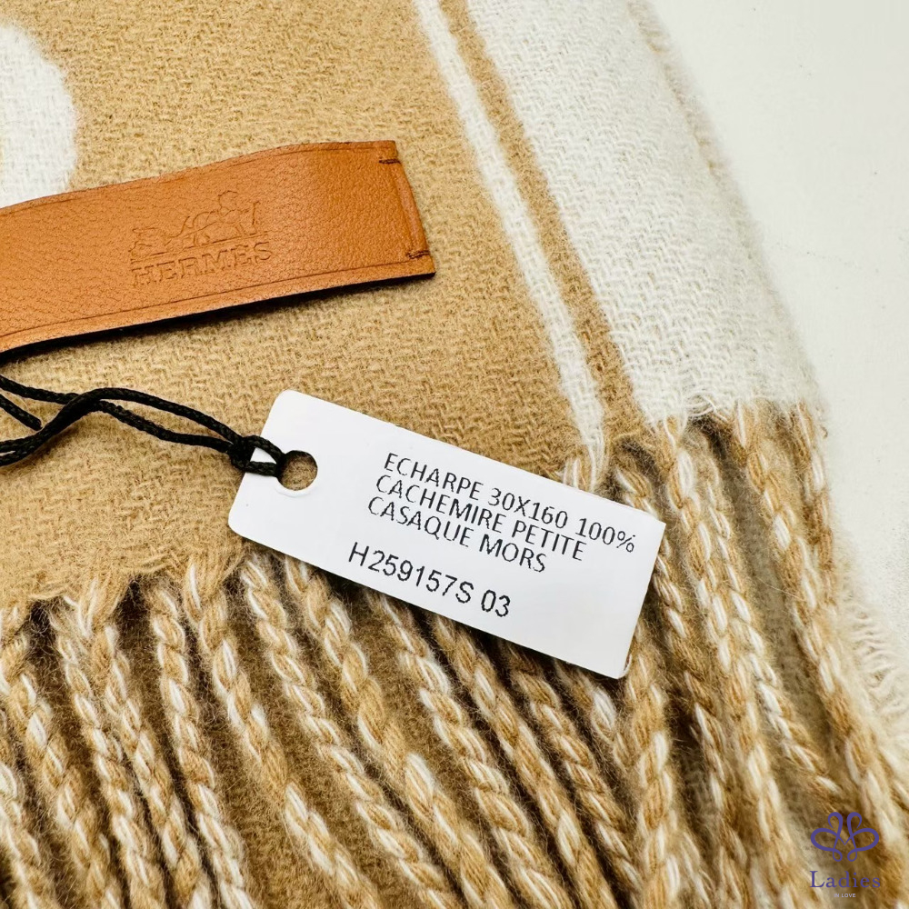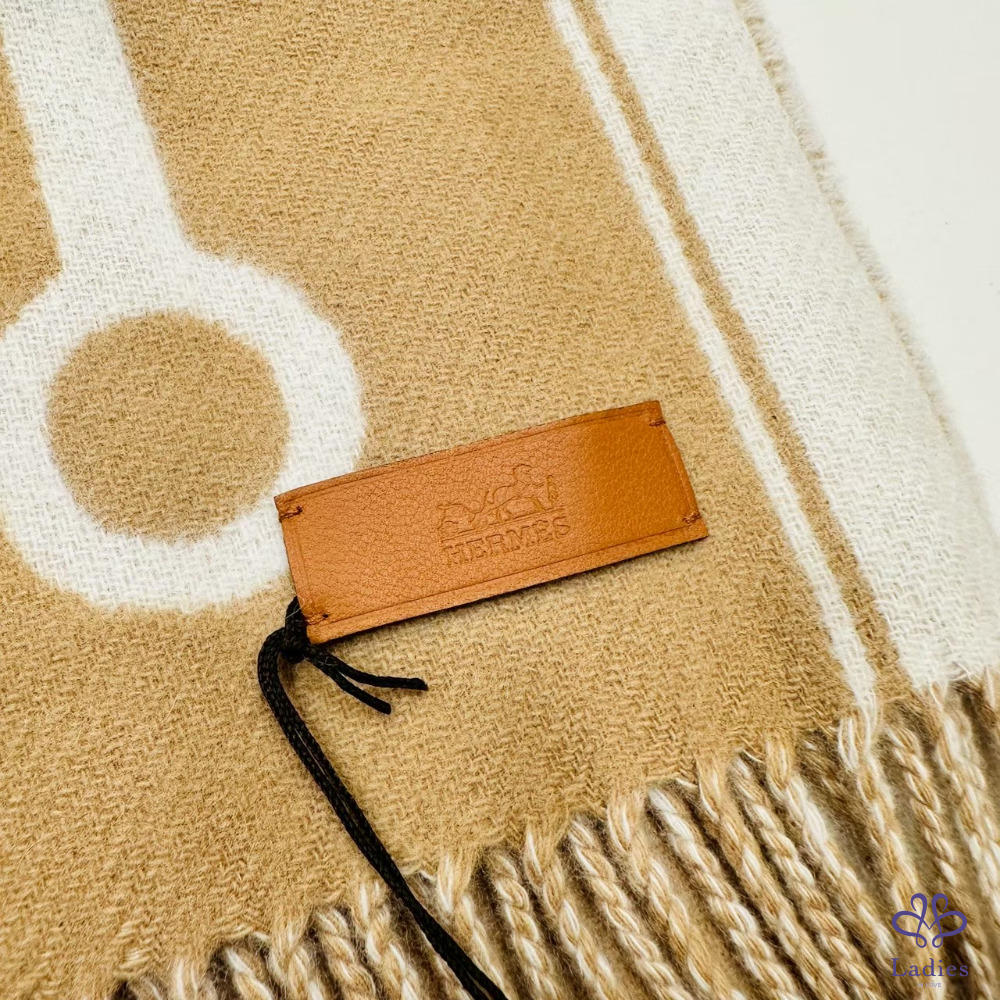 Casaque Mors Scarf 100% Cashmere x camel/ivoire 喀什米爾駝色象牙白撞色圍巾