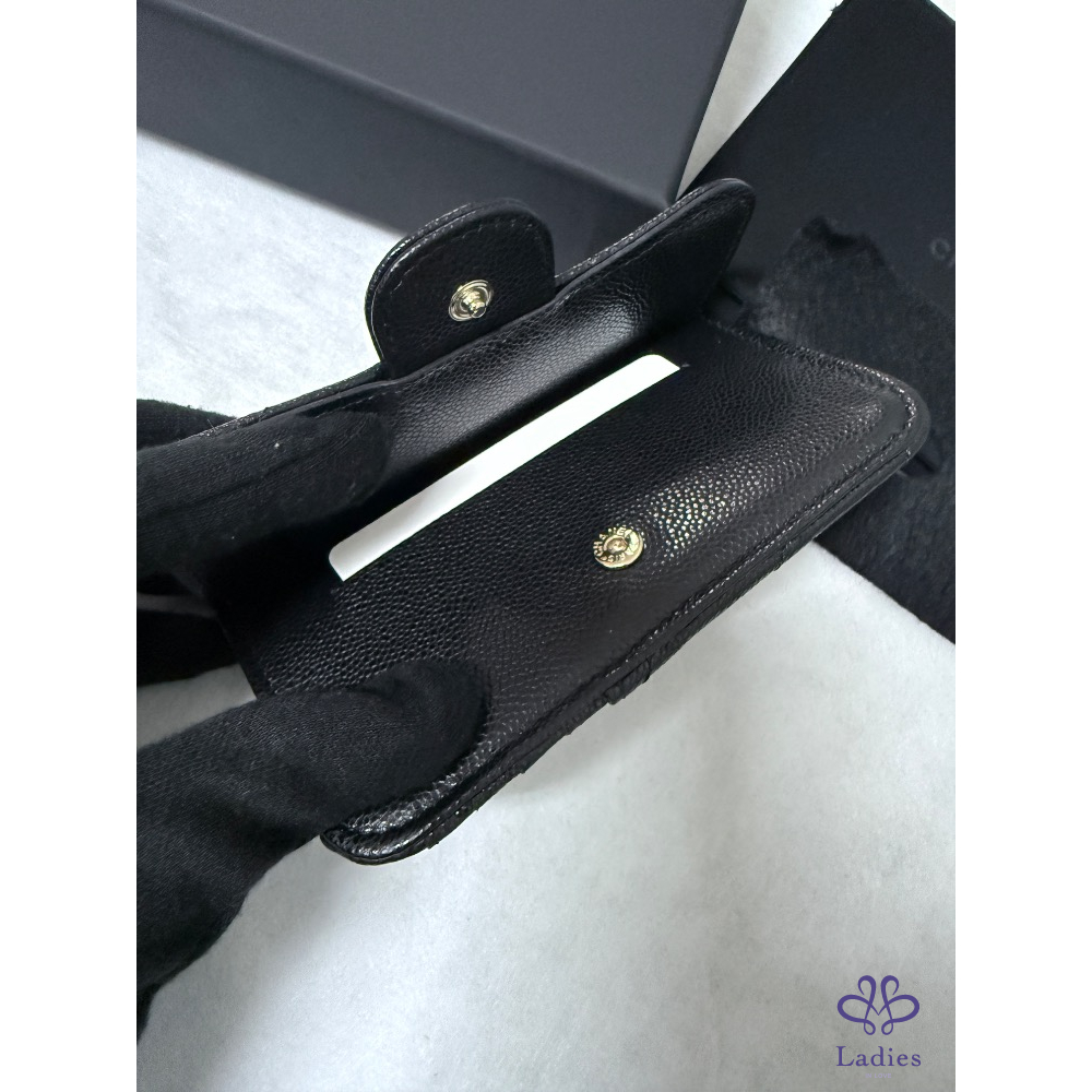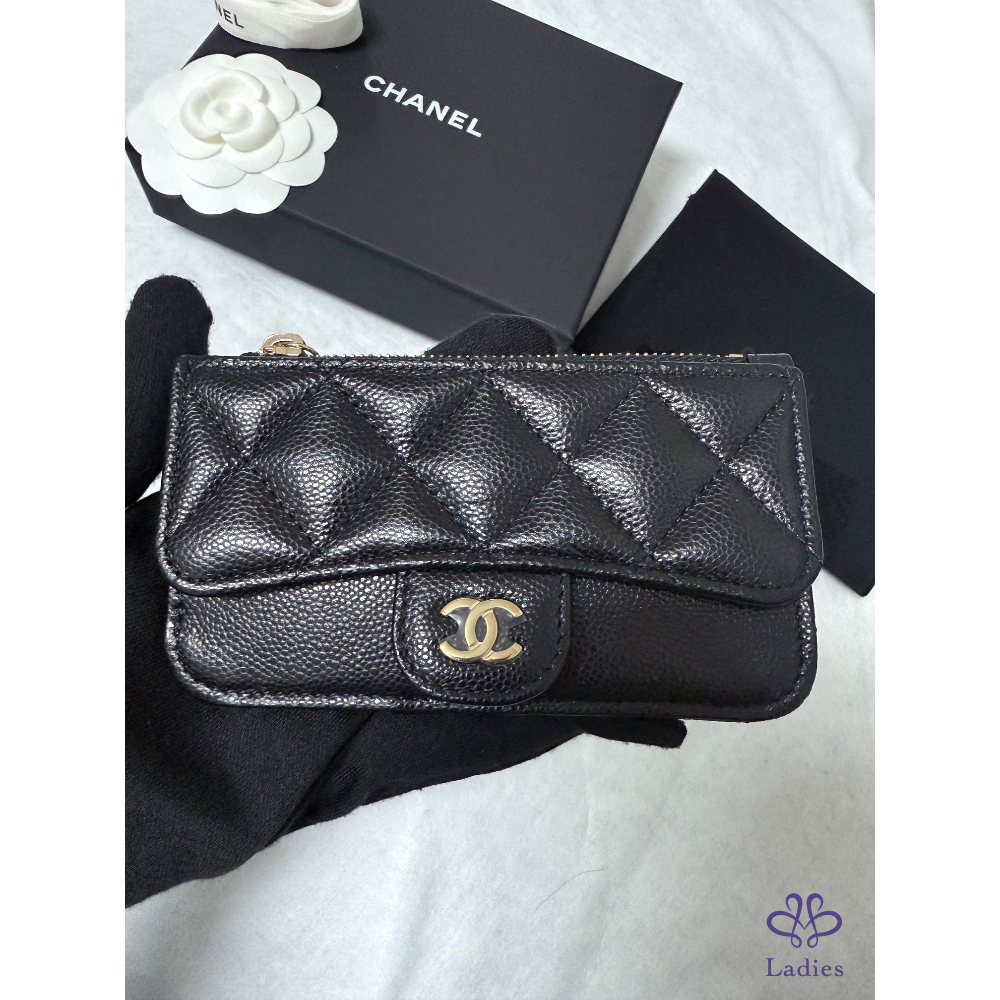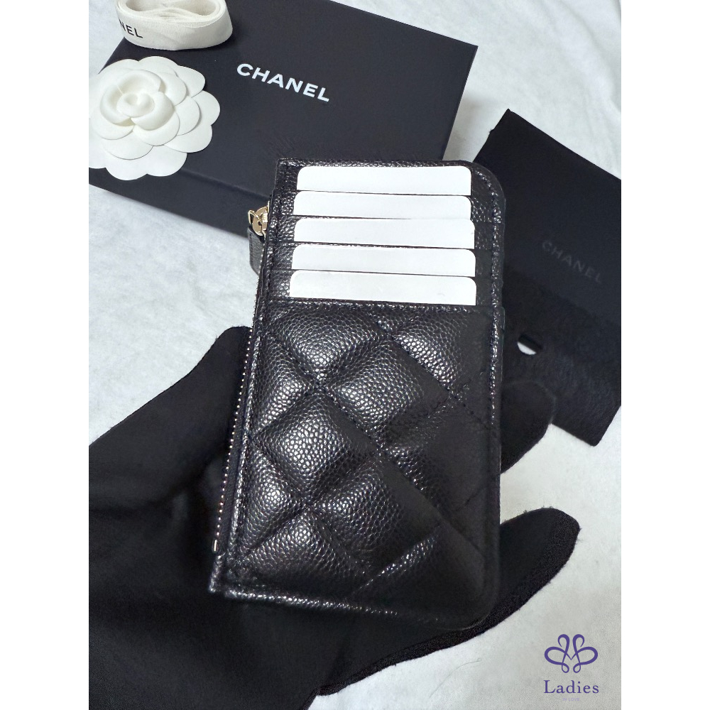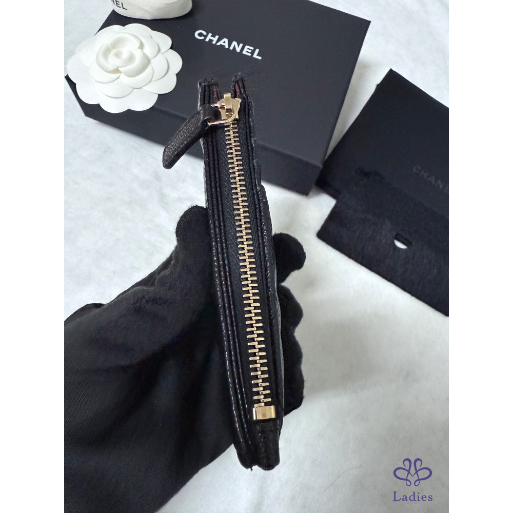 Chanel 荔枝牛皮淺金釦 卡片零錢夾