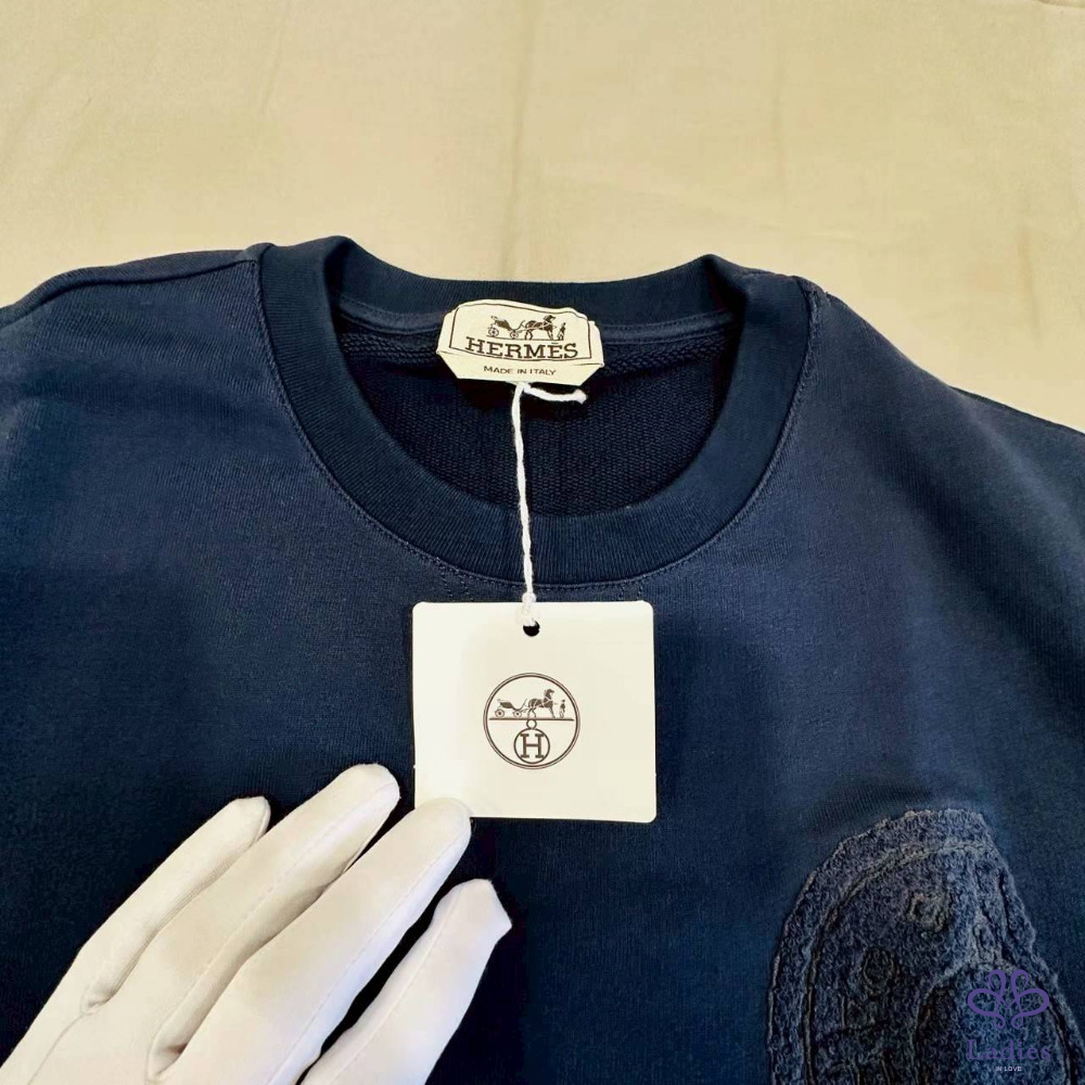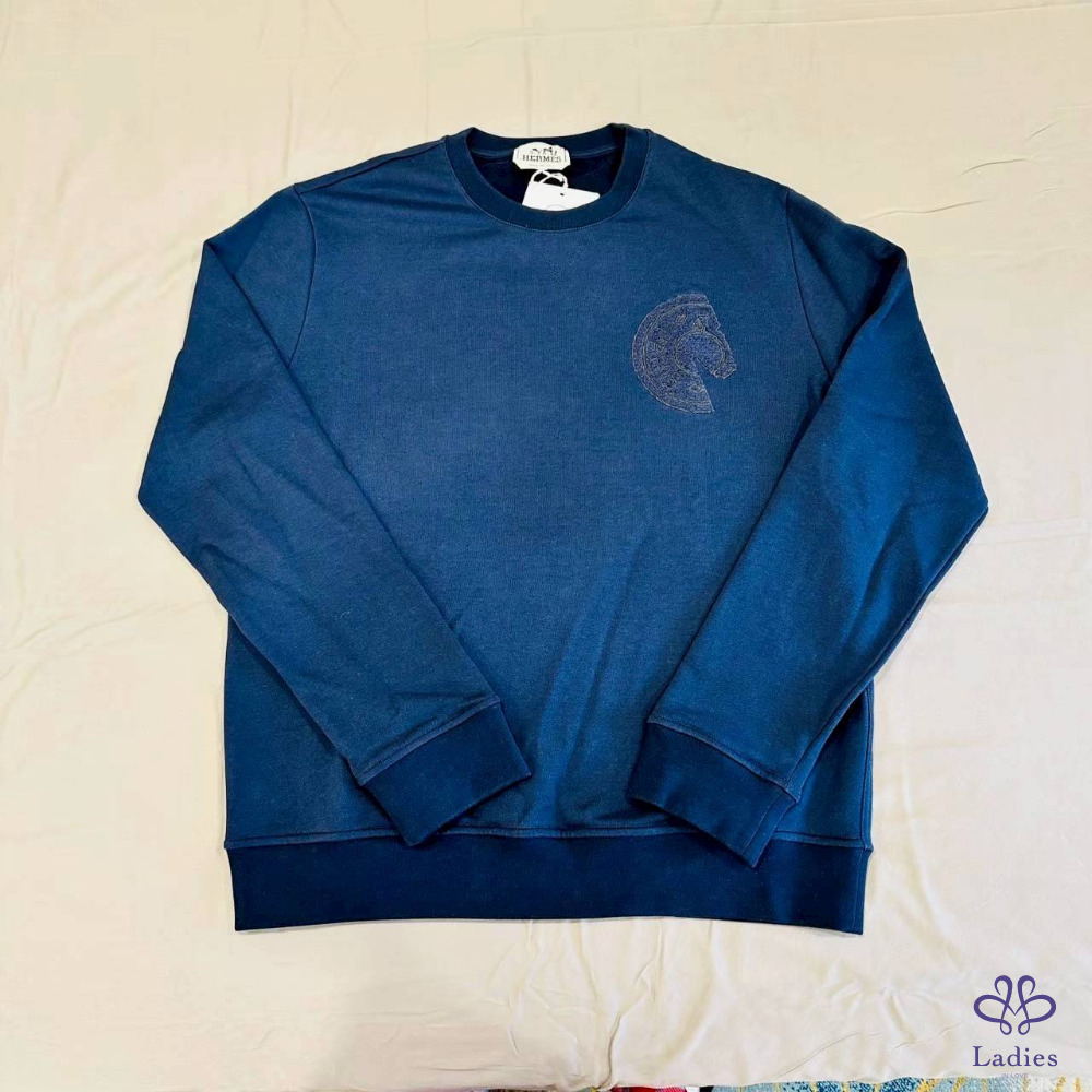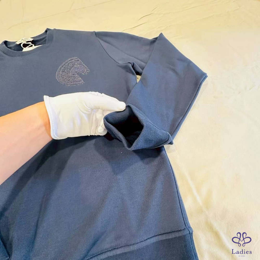 crewneck sweater with clou de selle detail x ocean 深海藍海洋藍馬鞍釘釦圓領套頭衫/長袖上衣/衣服/T 恤