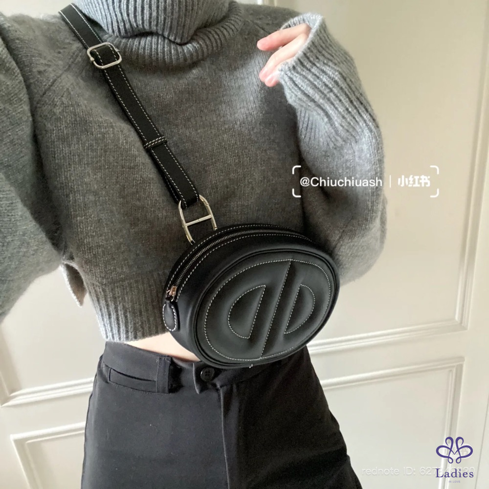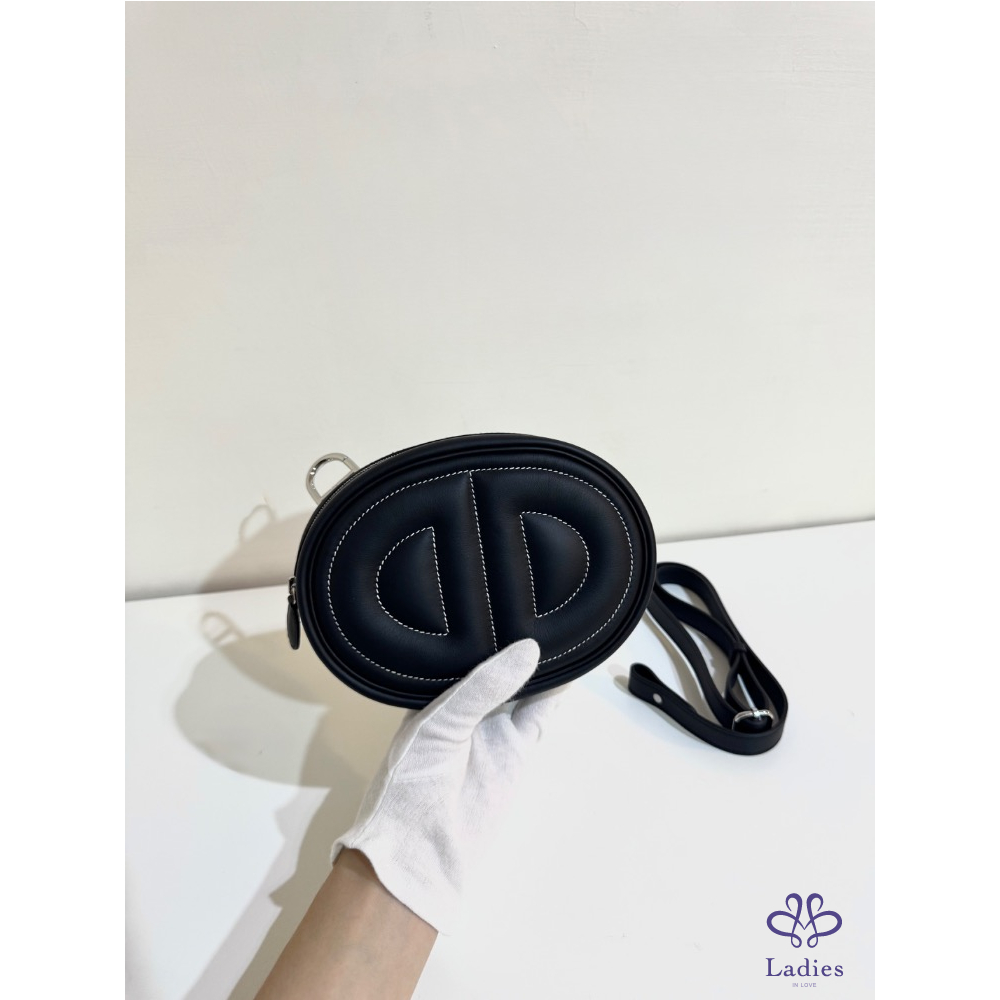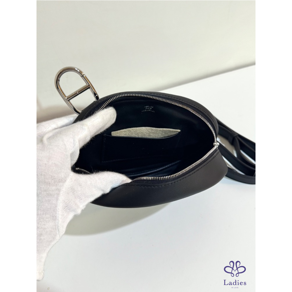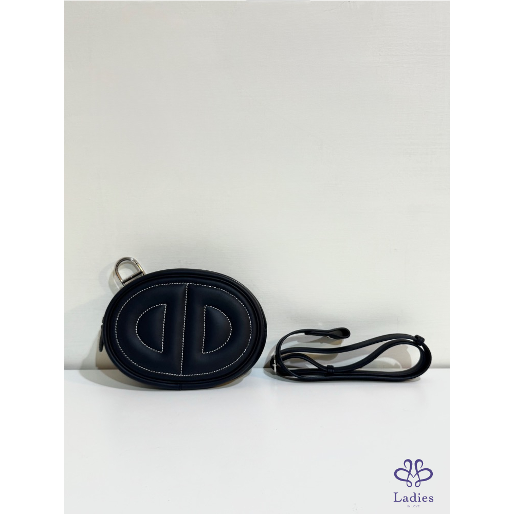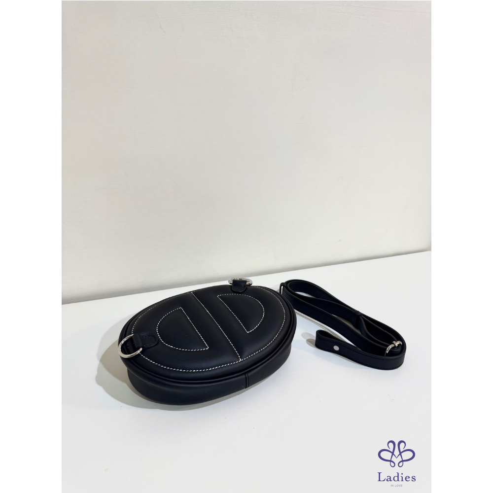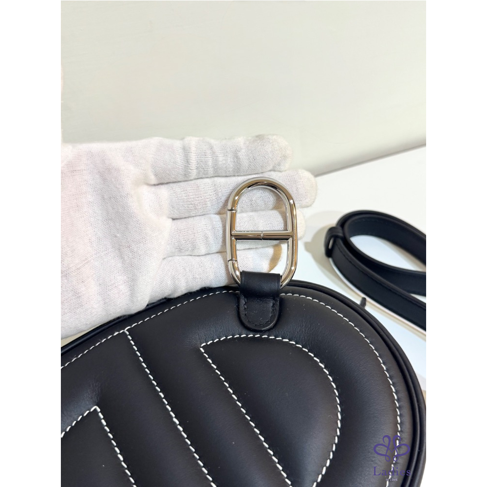 🖤✨ Hermès In The Loop 豬鼻斜背包|黑銀配白線