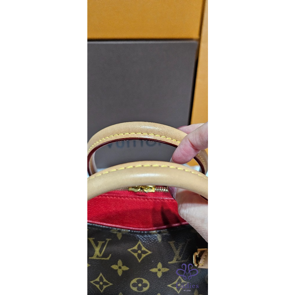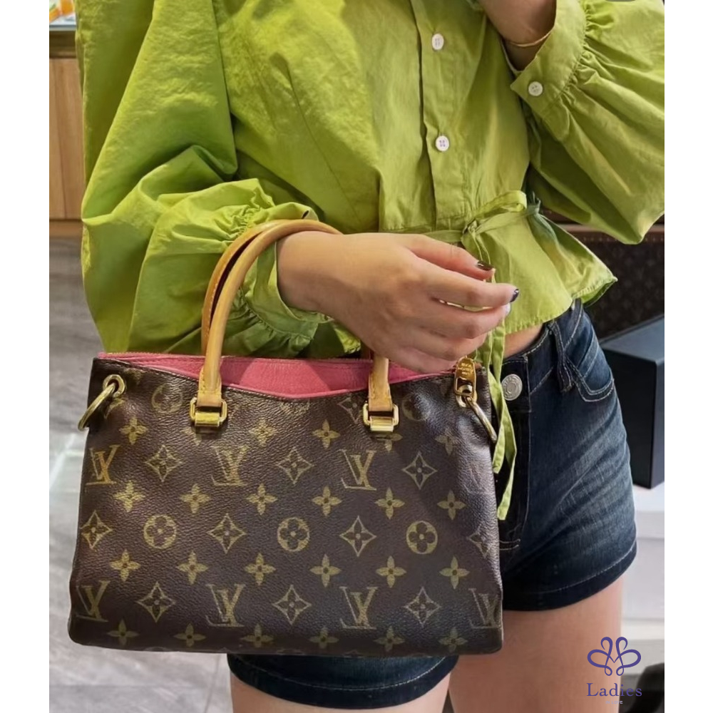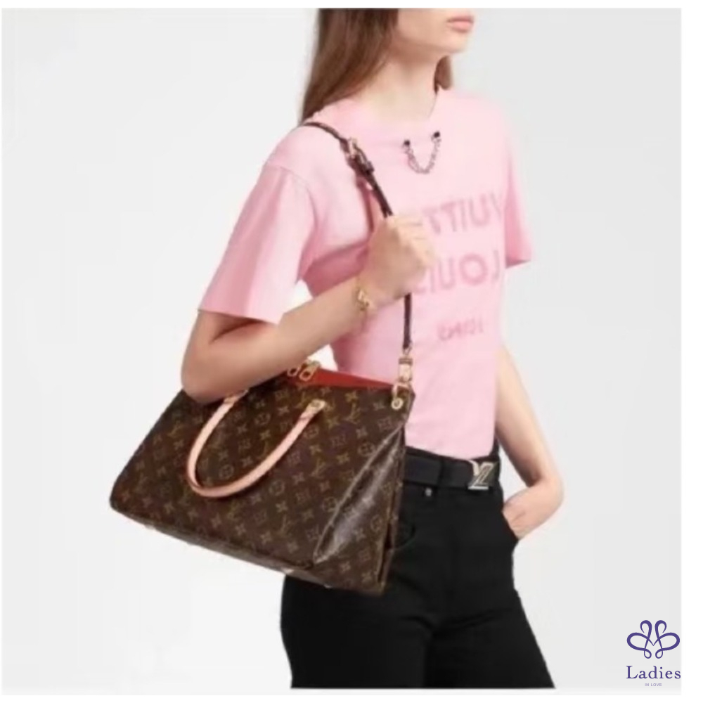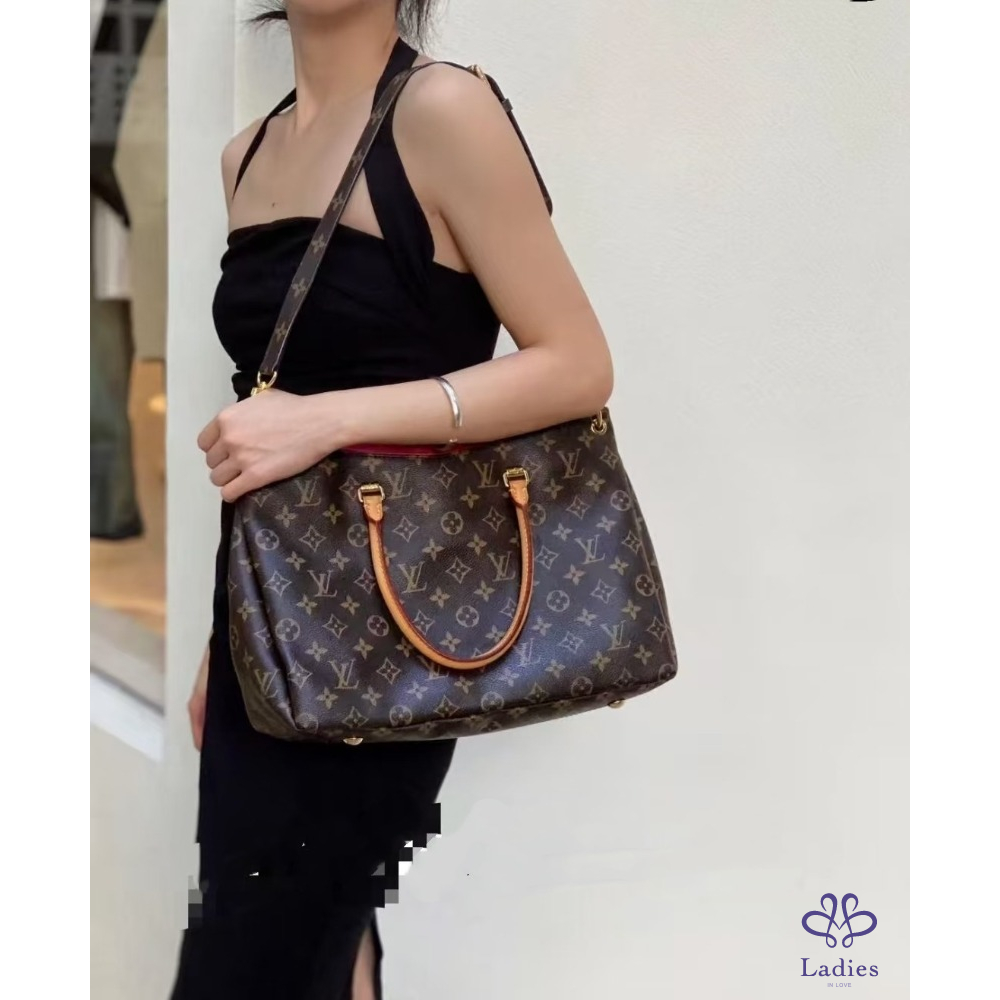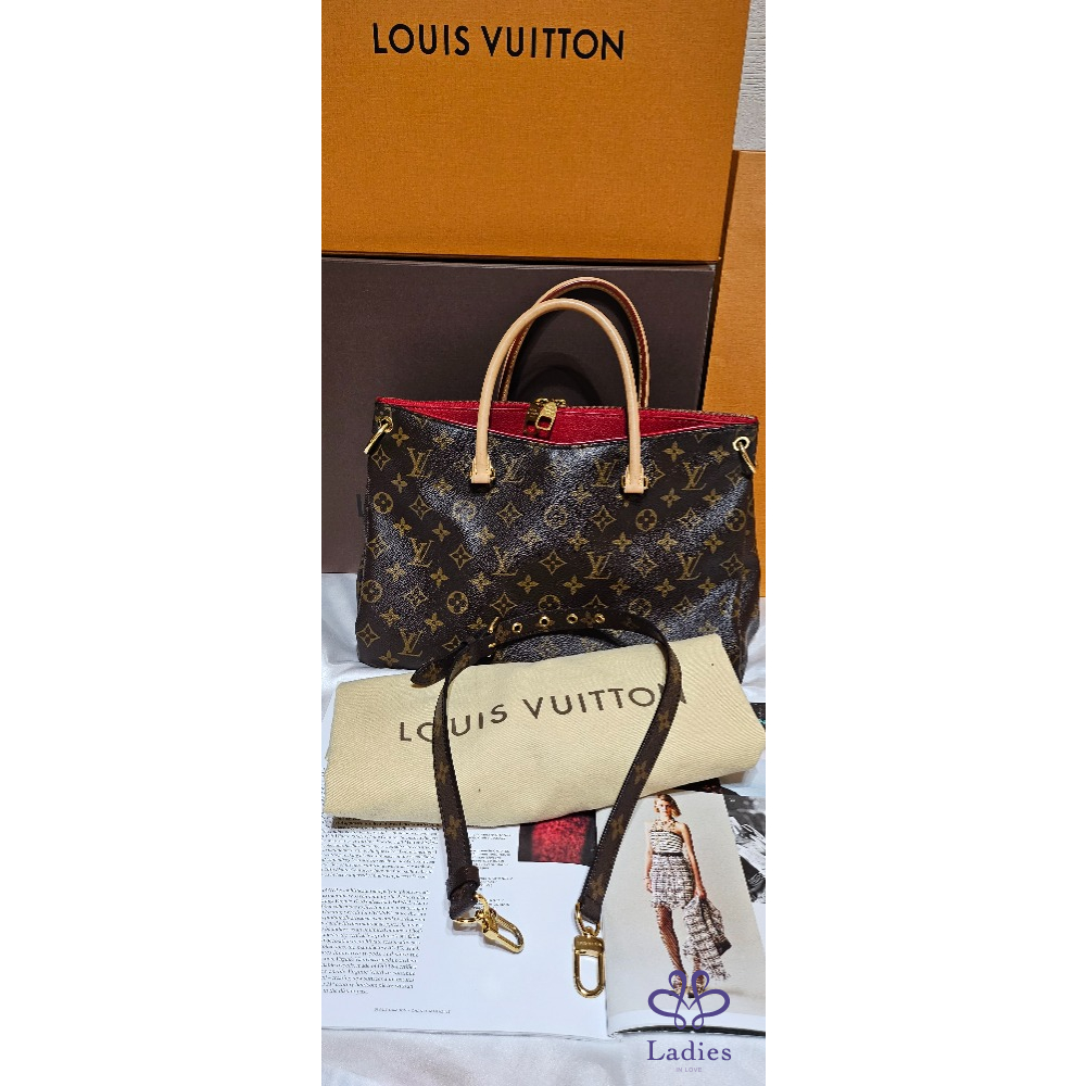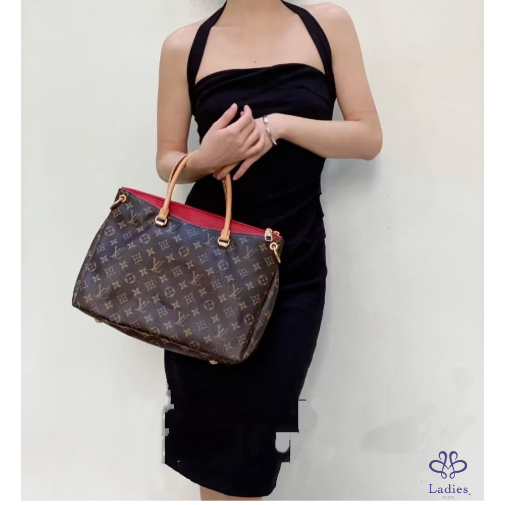 產品信息 顏色:咖啡色系×櫻桃紅系 外層材質:帆布x牛皮 內層材質:麂皮 配件:原廠紙盒x防塵袋×背帶 尺寸:約長34cmx寬26cmx厚12cm 背帶可調長65-75cm可拆式 內層格式:拉鏈開口,包身吸釦外貼袋×2,內貼袋×3 pallas系列 品牌經典底部護釘保護高貴包身