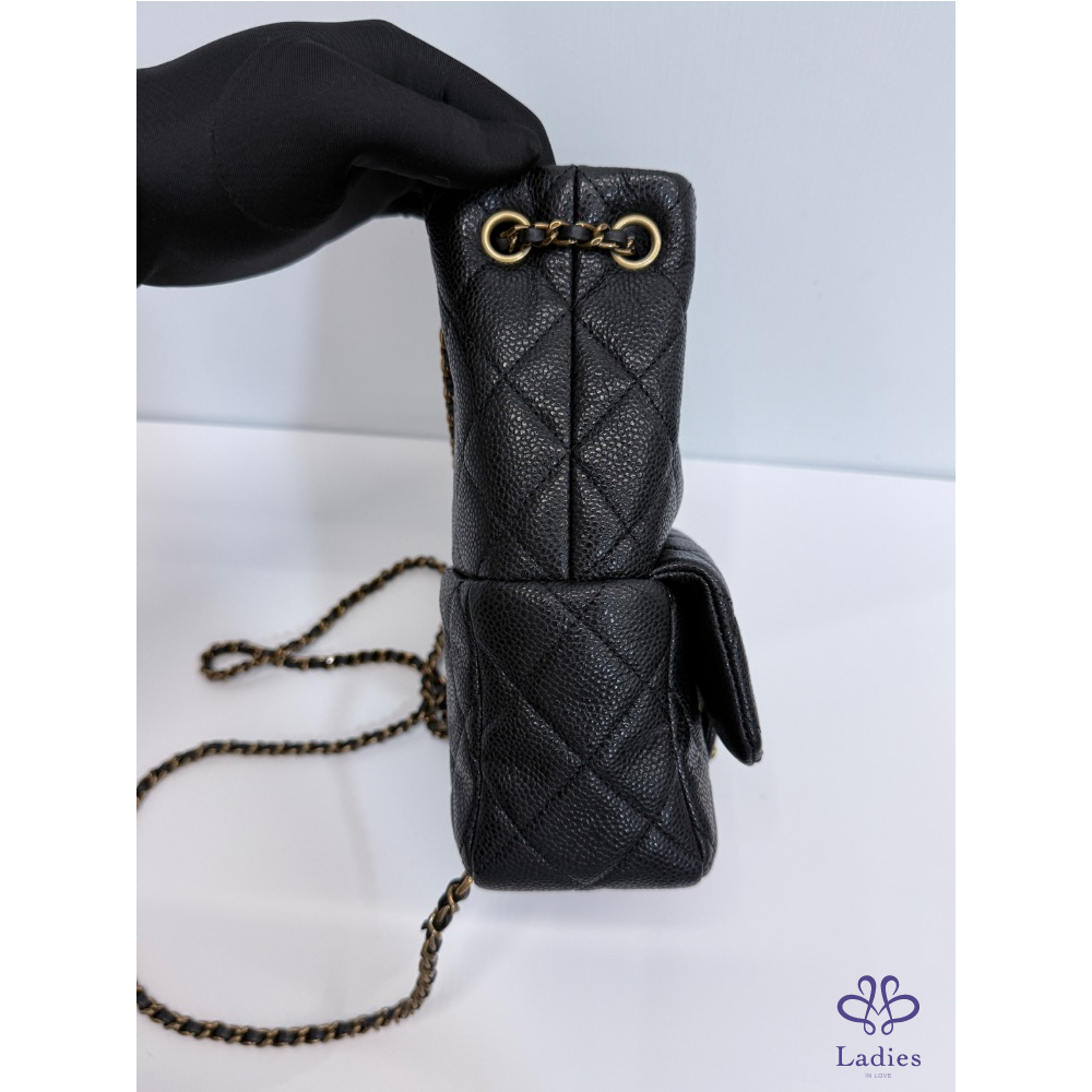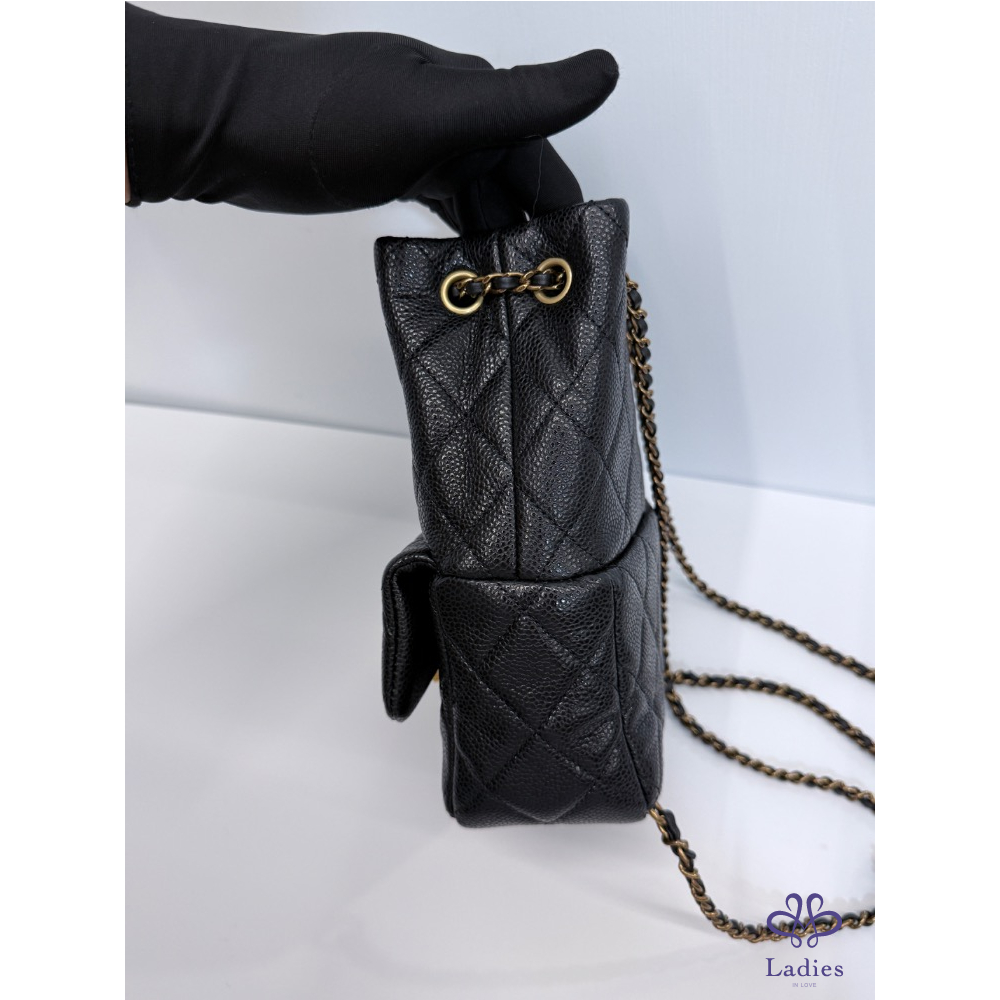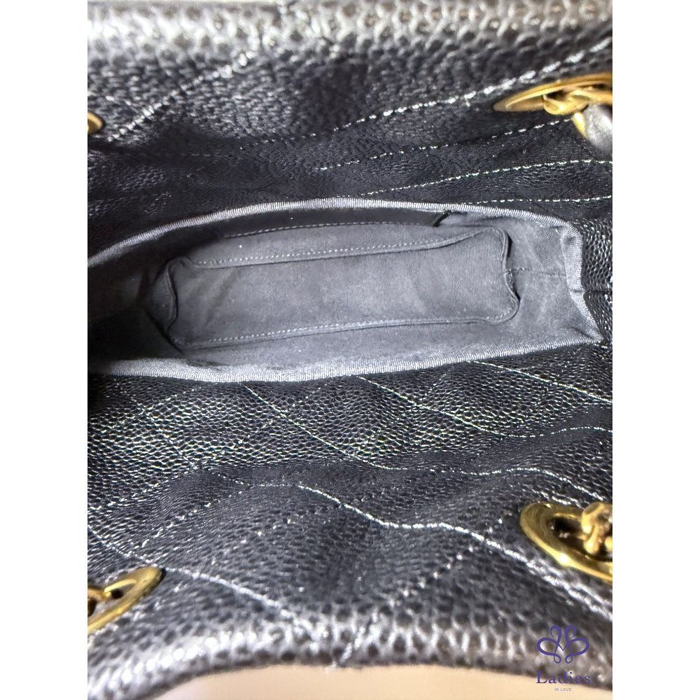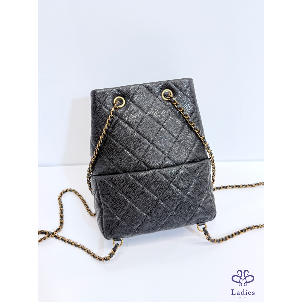Chanel 24B 後背包 黑金 荔枝牛 晶片款 99新全配 臺灣離櫃