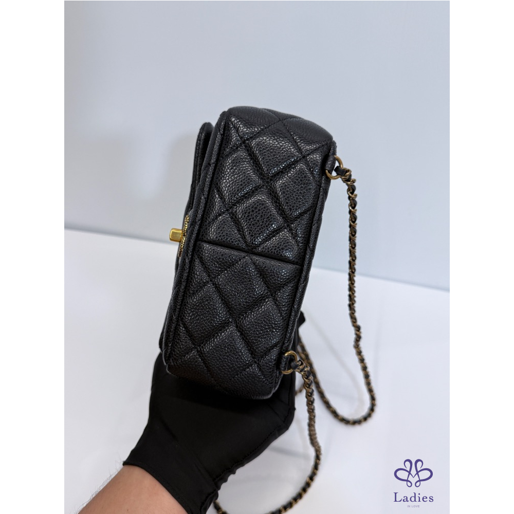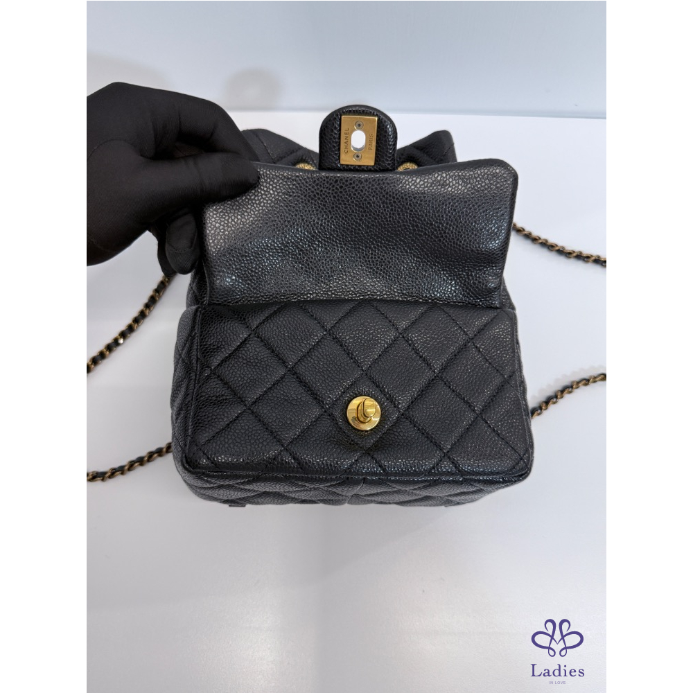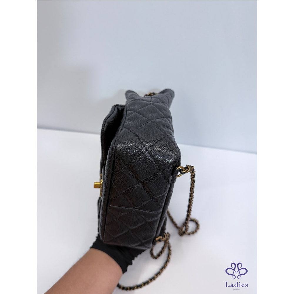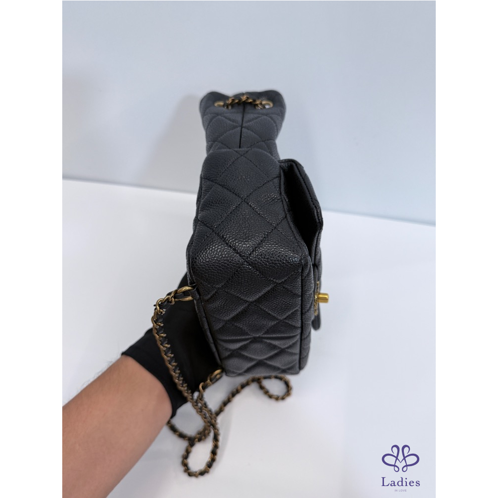 Chanel 24B 後背包 黑金 荔枝牛 晶片款 99新全配 臺灣離櫃
