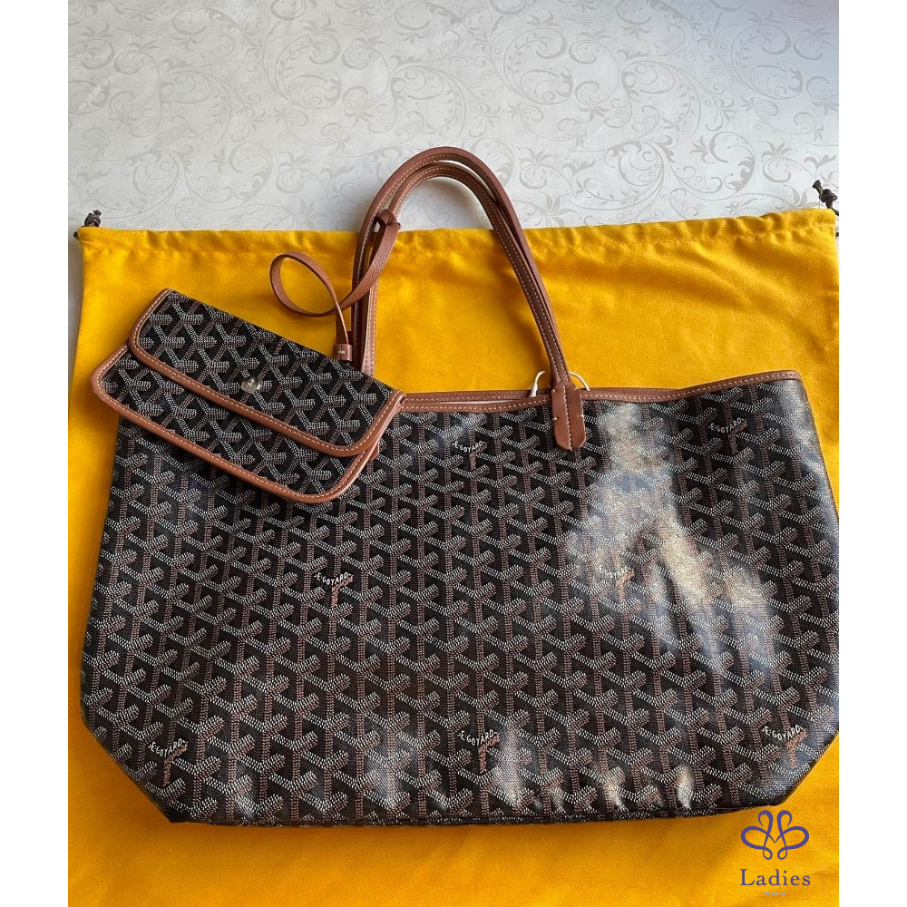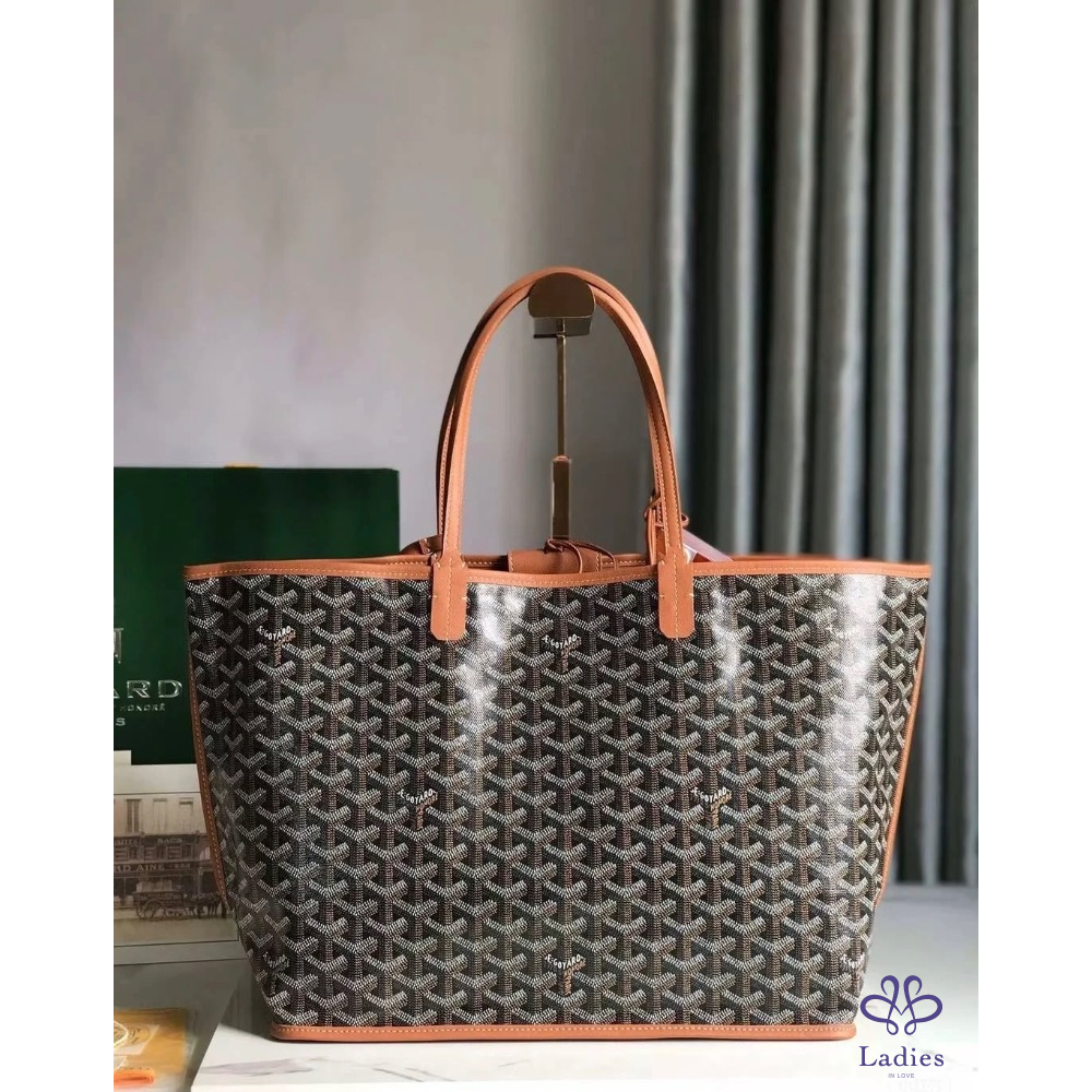 戈雅Artois Y字老花🈵印皮革包角 棕褐色 帆布拼皮 托特包購物包小號(大全配)
