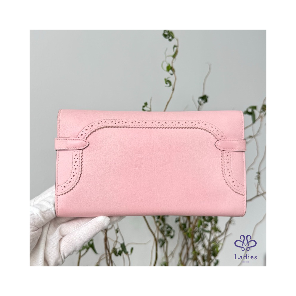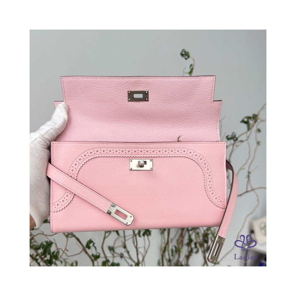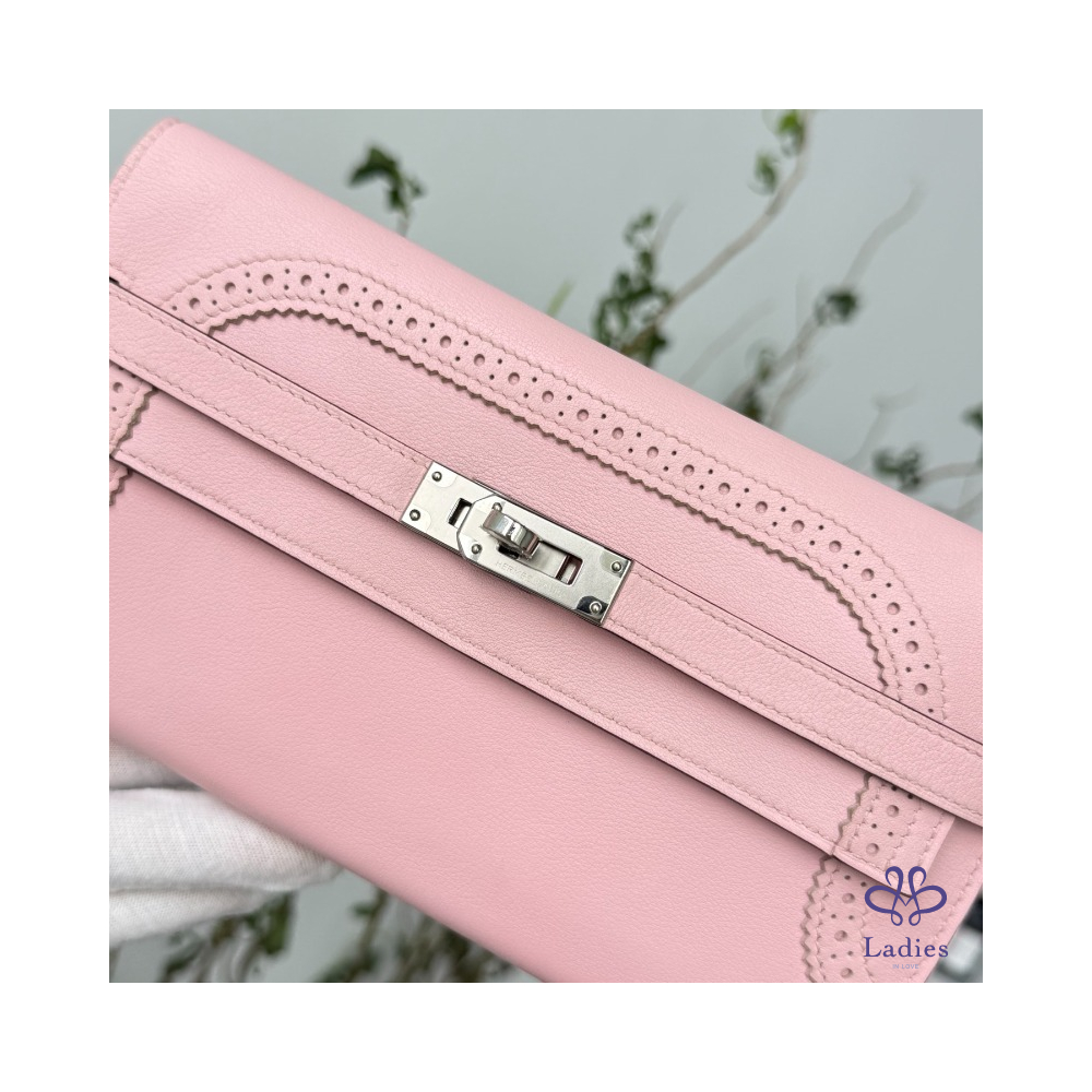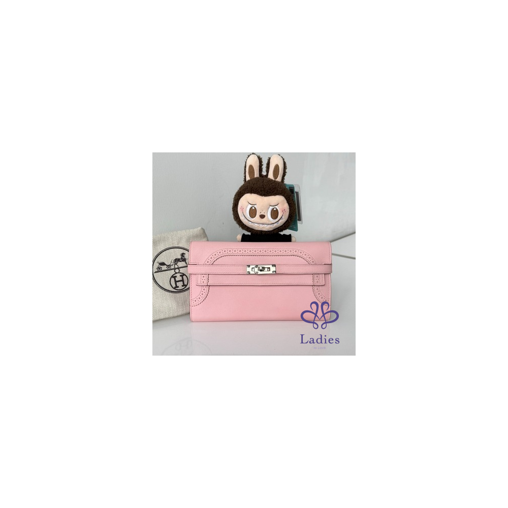 愛馬仕 kelly long長夾限量蕾絲櫻花粉銀扣 X 刻