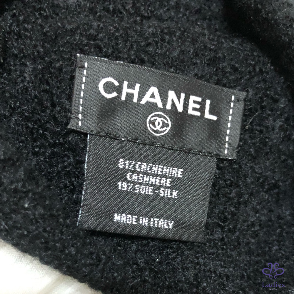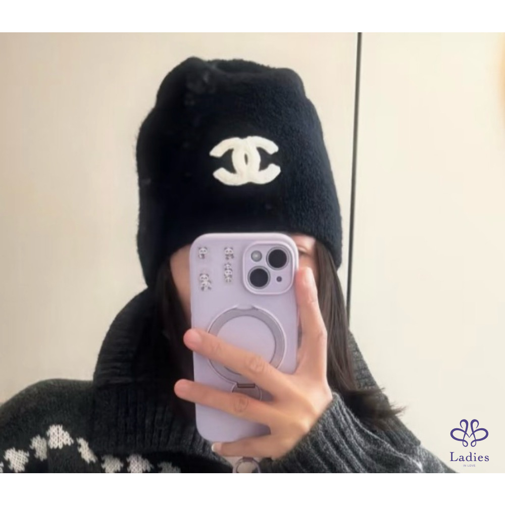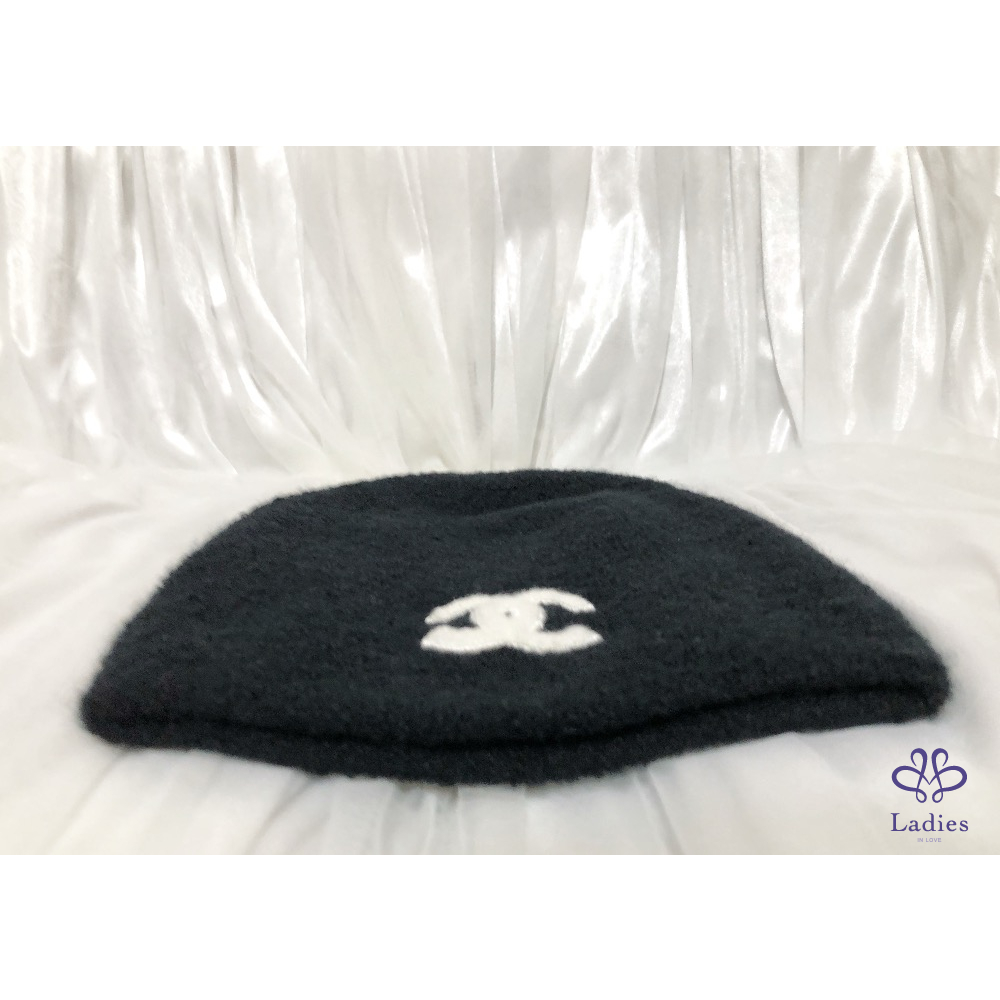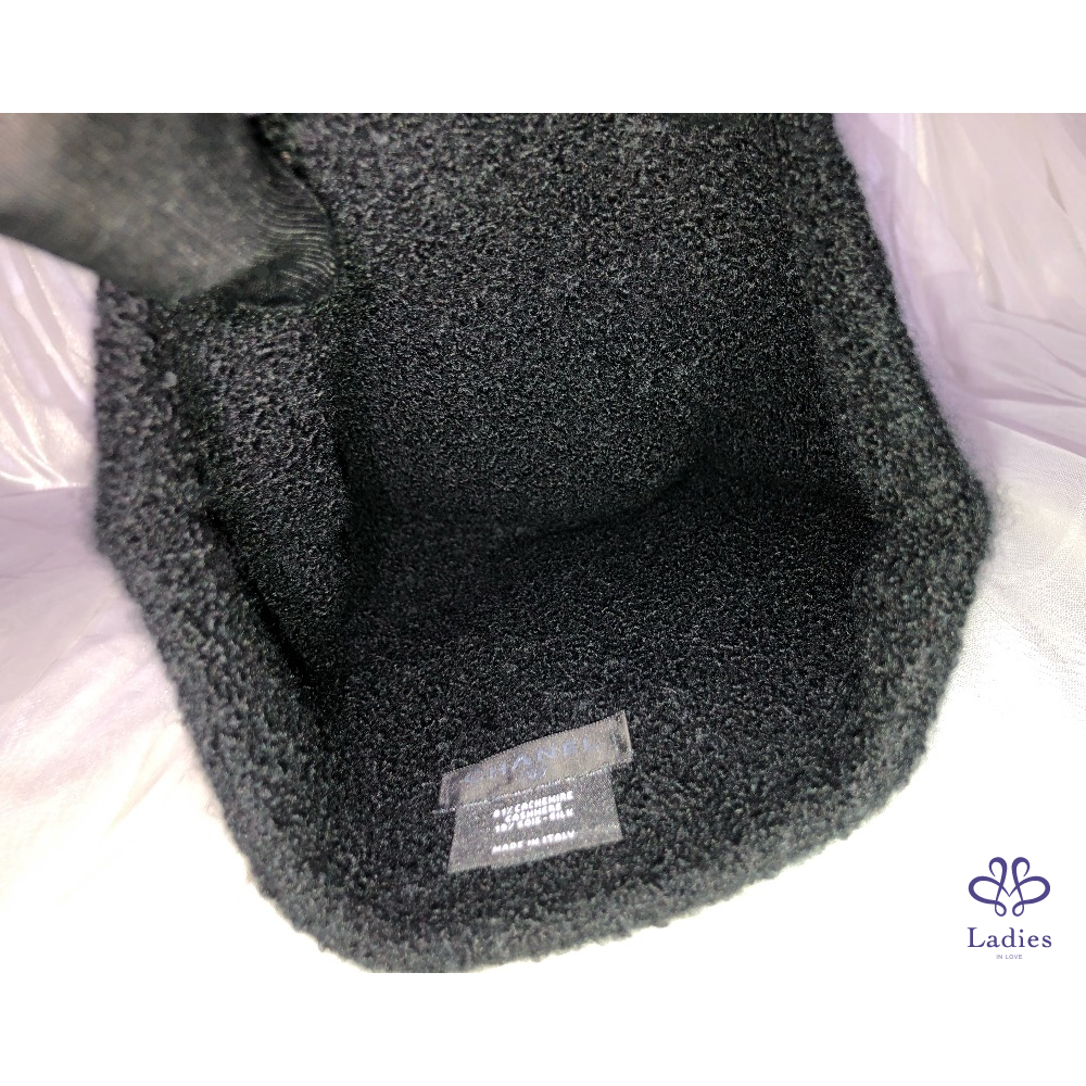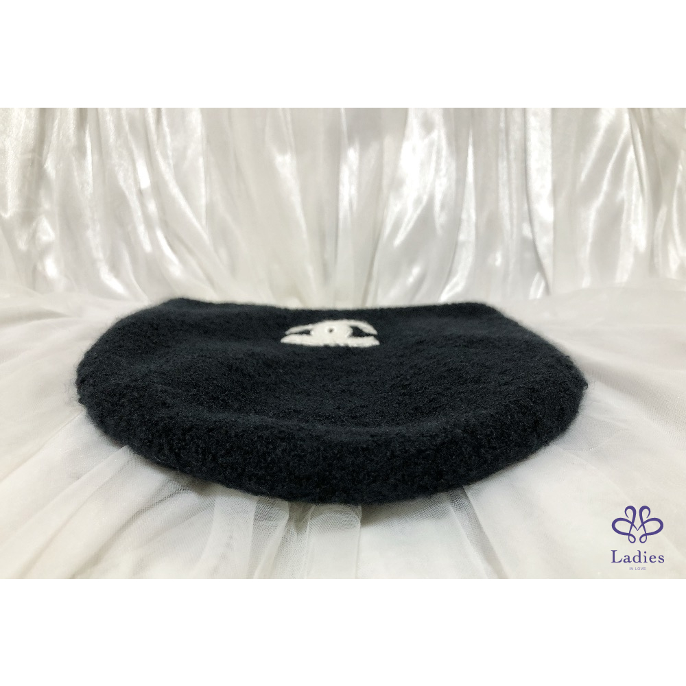CHANEL 香奈兒 26C 黑色羊絨 白色 logo 毛帽 全新✨