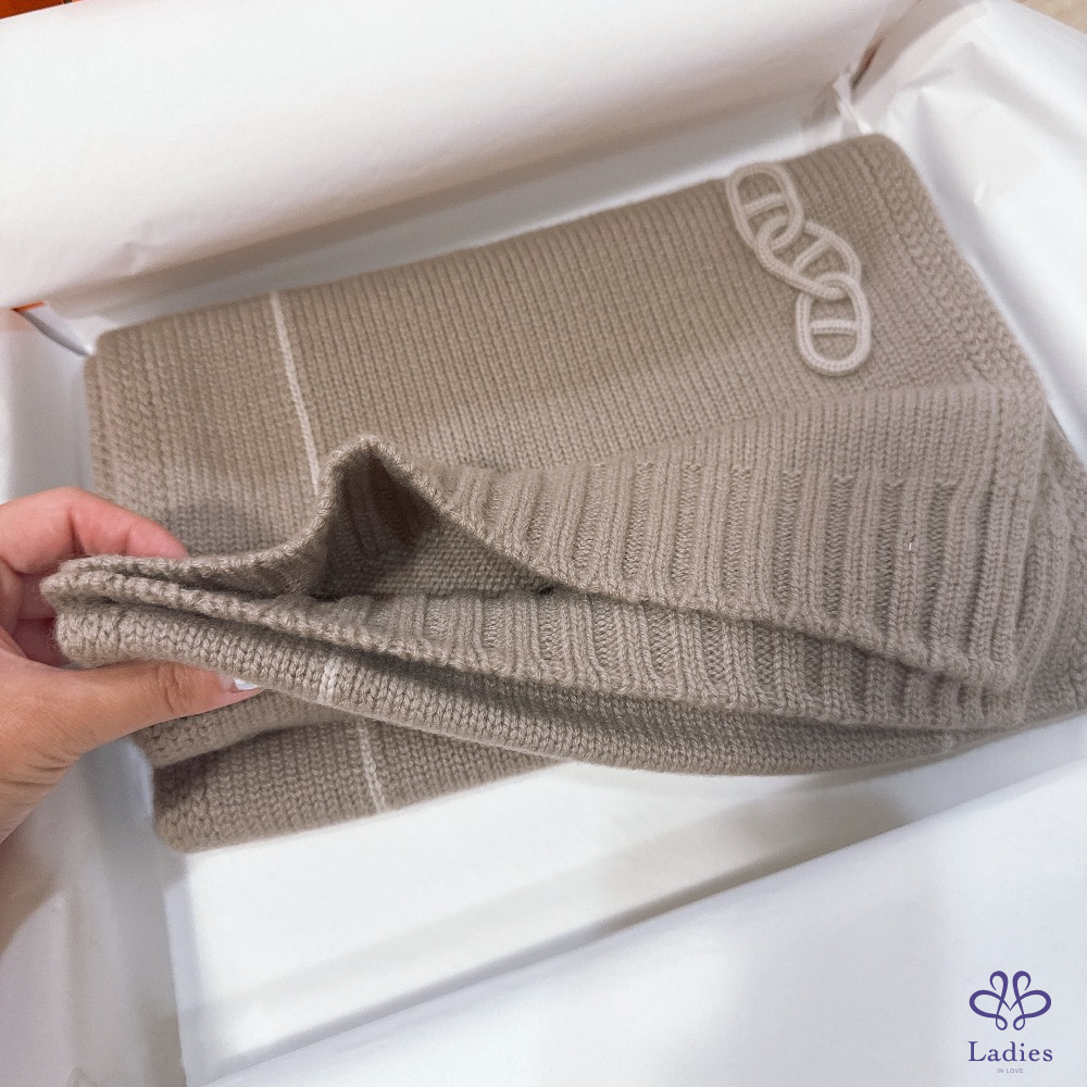 產品信息 Hermes Maillons Traces 圍巾 - 米ㄊㄨㄛˊ色 全新 - 100% cashmere - 豬鼻 新款 - 尺寸:30x180 cm 這款很柔軟 也不扎皮膚 厚實度也足夠 附:橘盒、購證影本去個資 實穿照為網路抓圖,不妥可告知