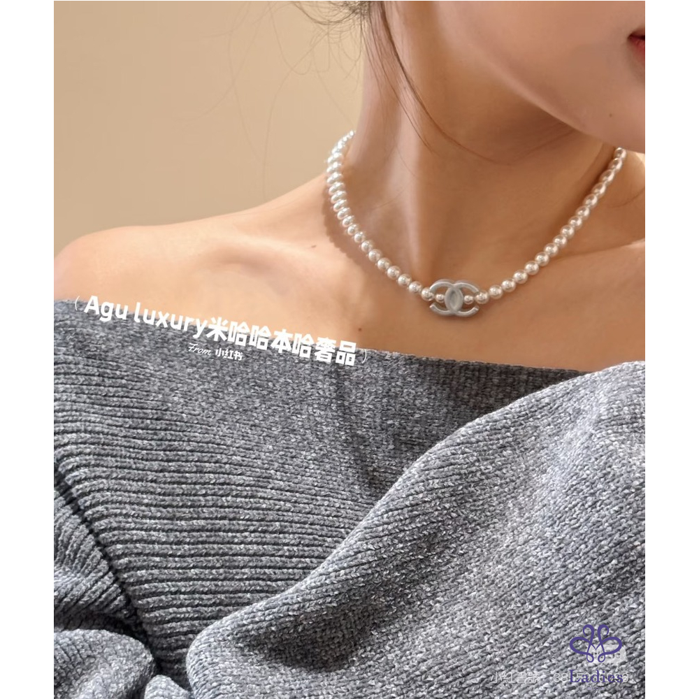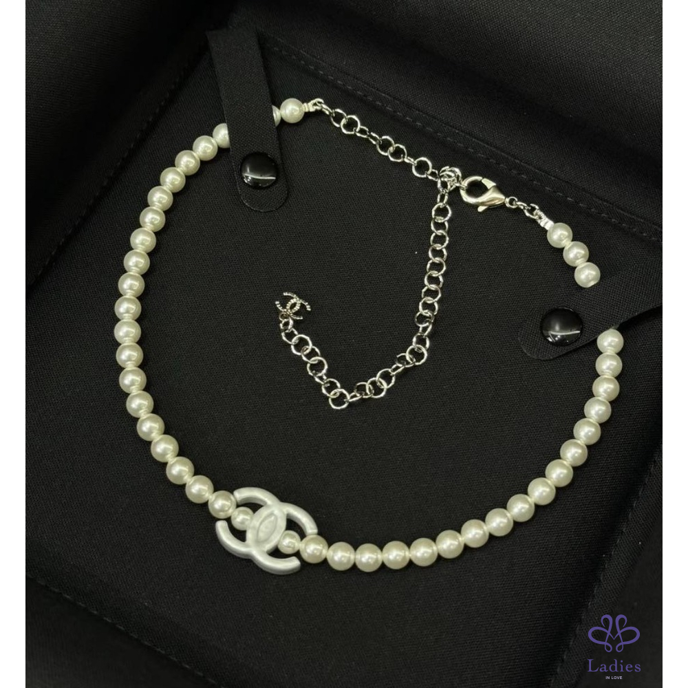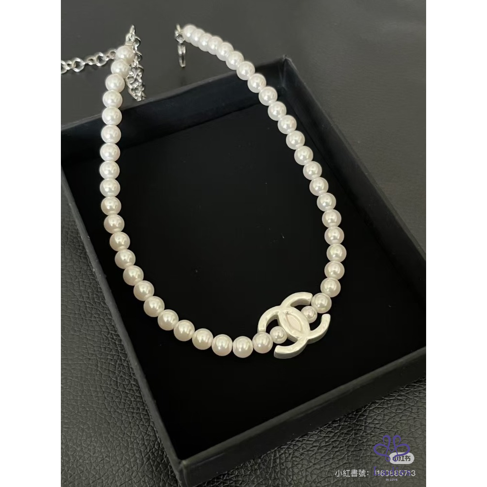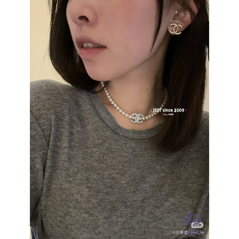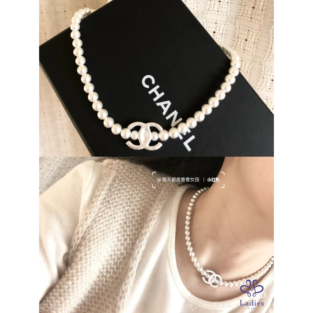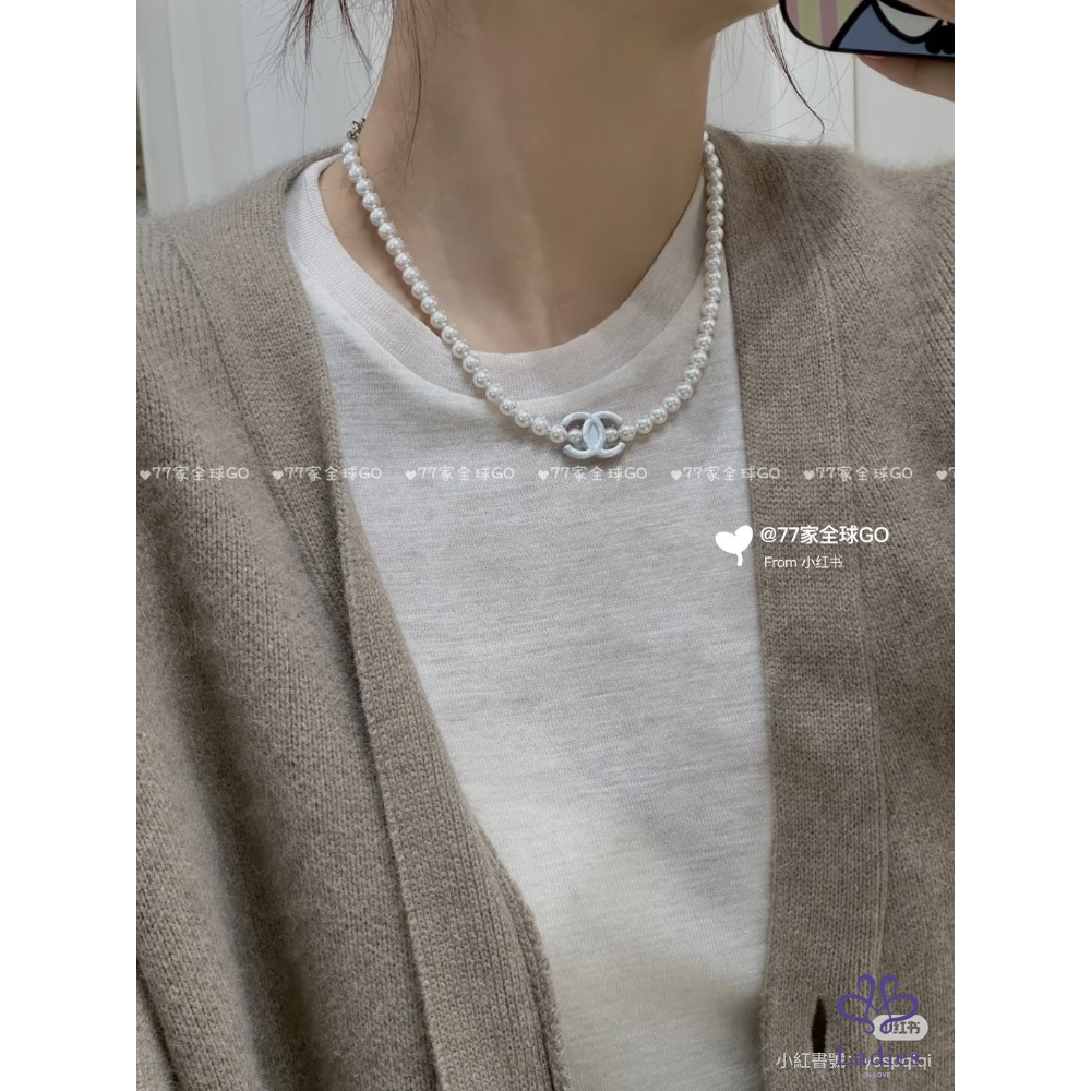 最新大爆款 Chanel 25C Choker 白色外雙C標誌 施華洛世奇珍珠項鏈