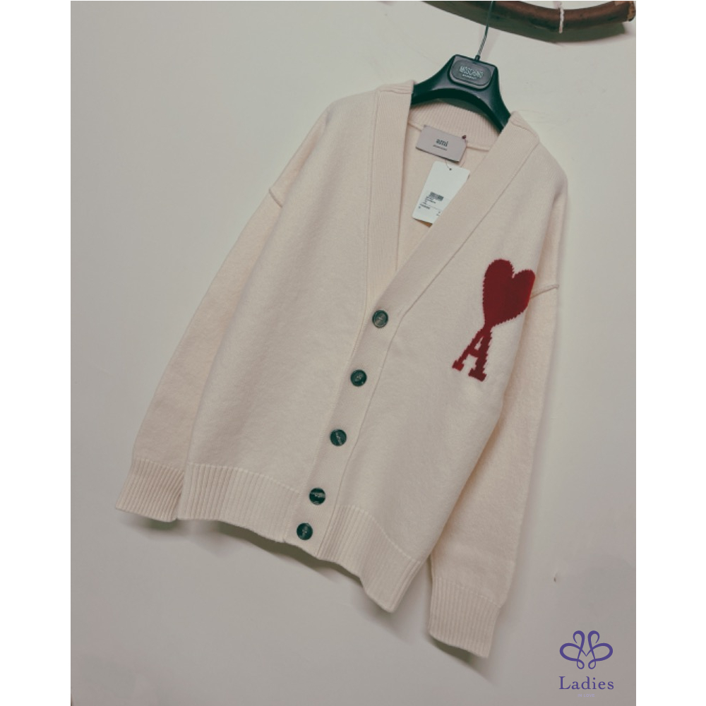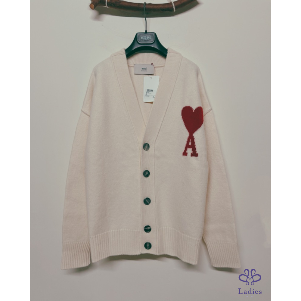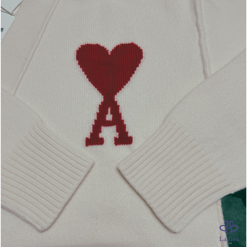 全新 AMI Paris 奶白色大愛心羊毛針織外套
